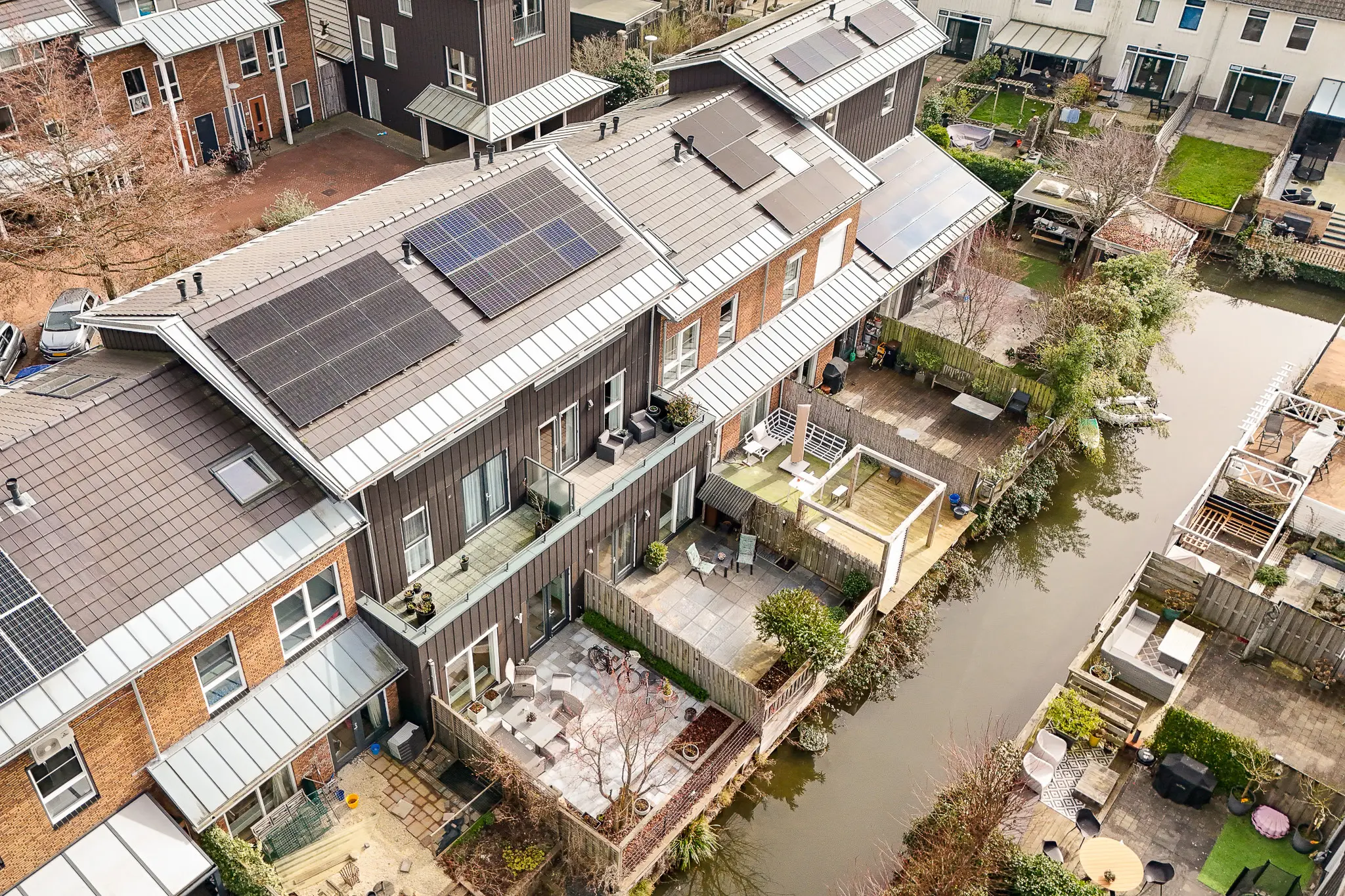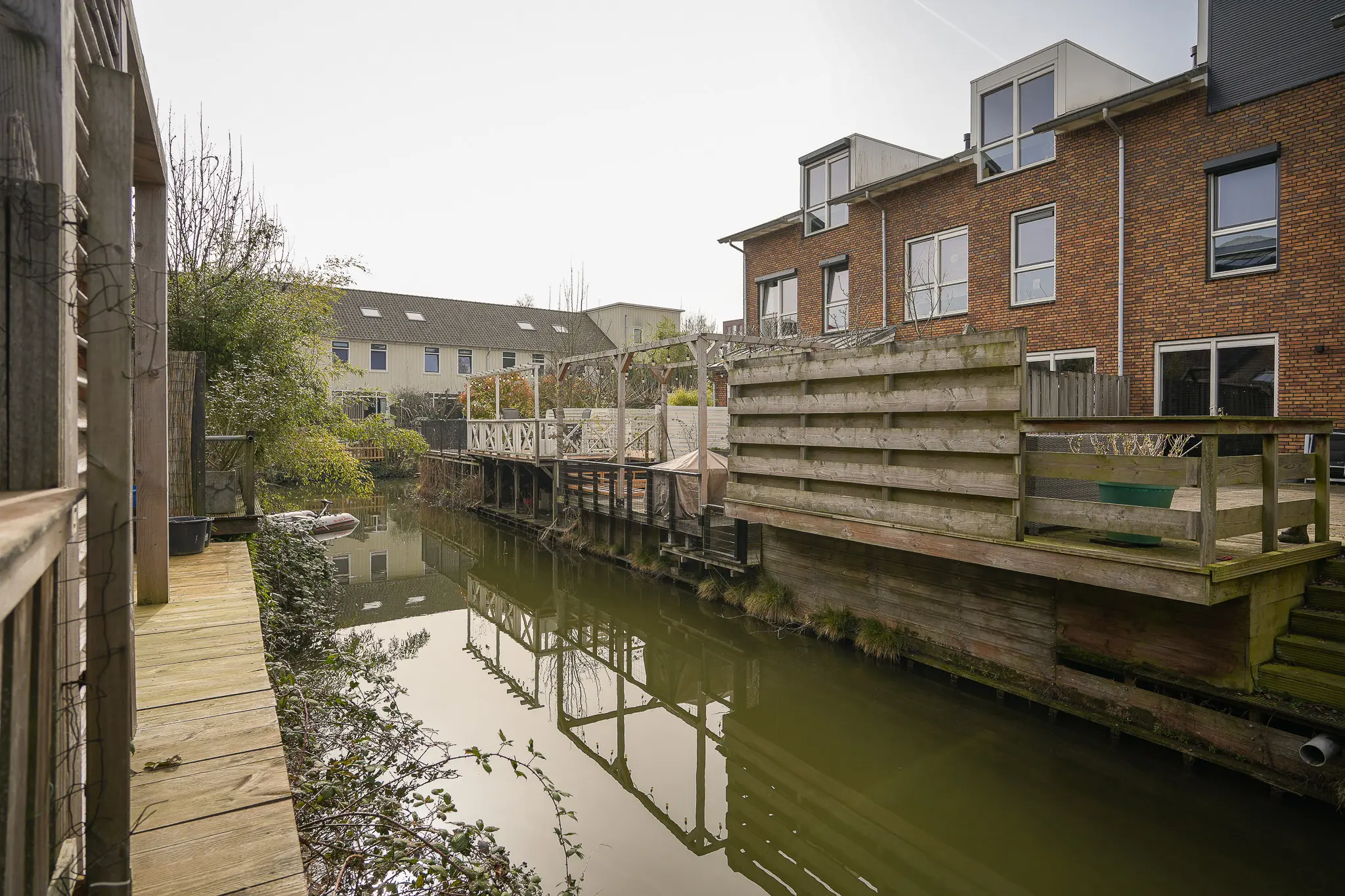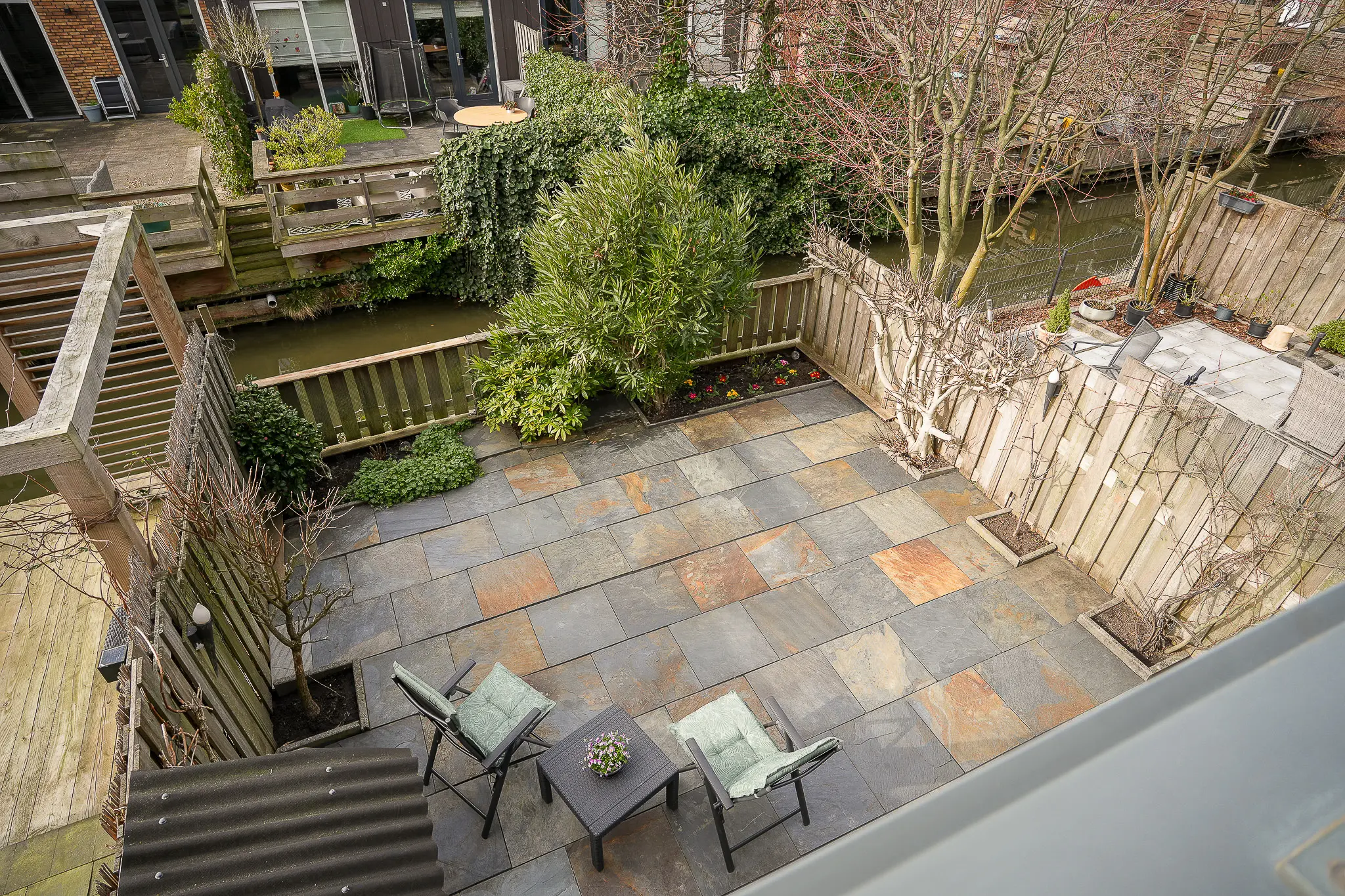 - Carport, balkon, tuin aan water in hofje.