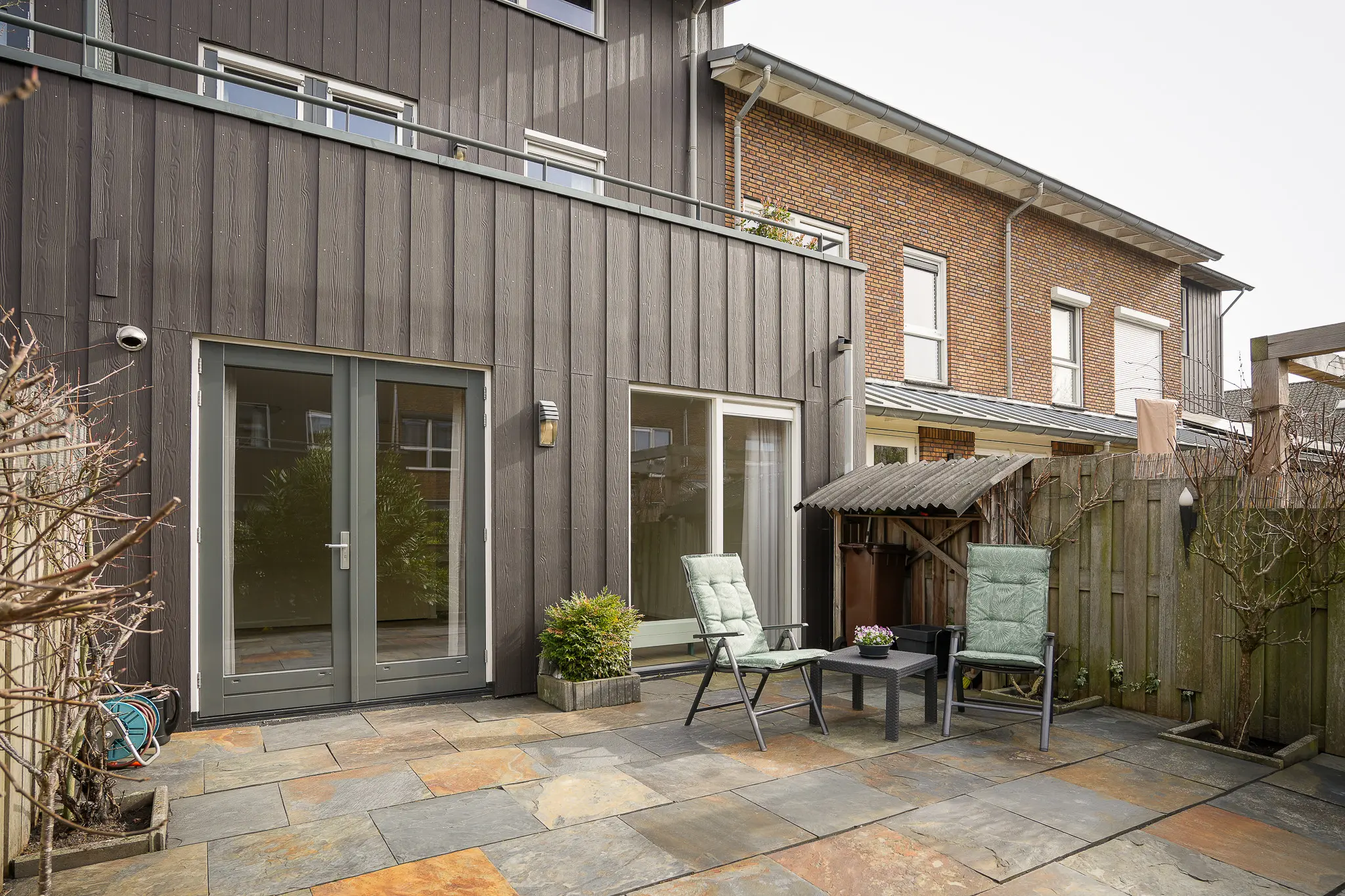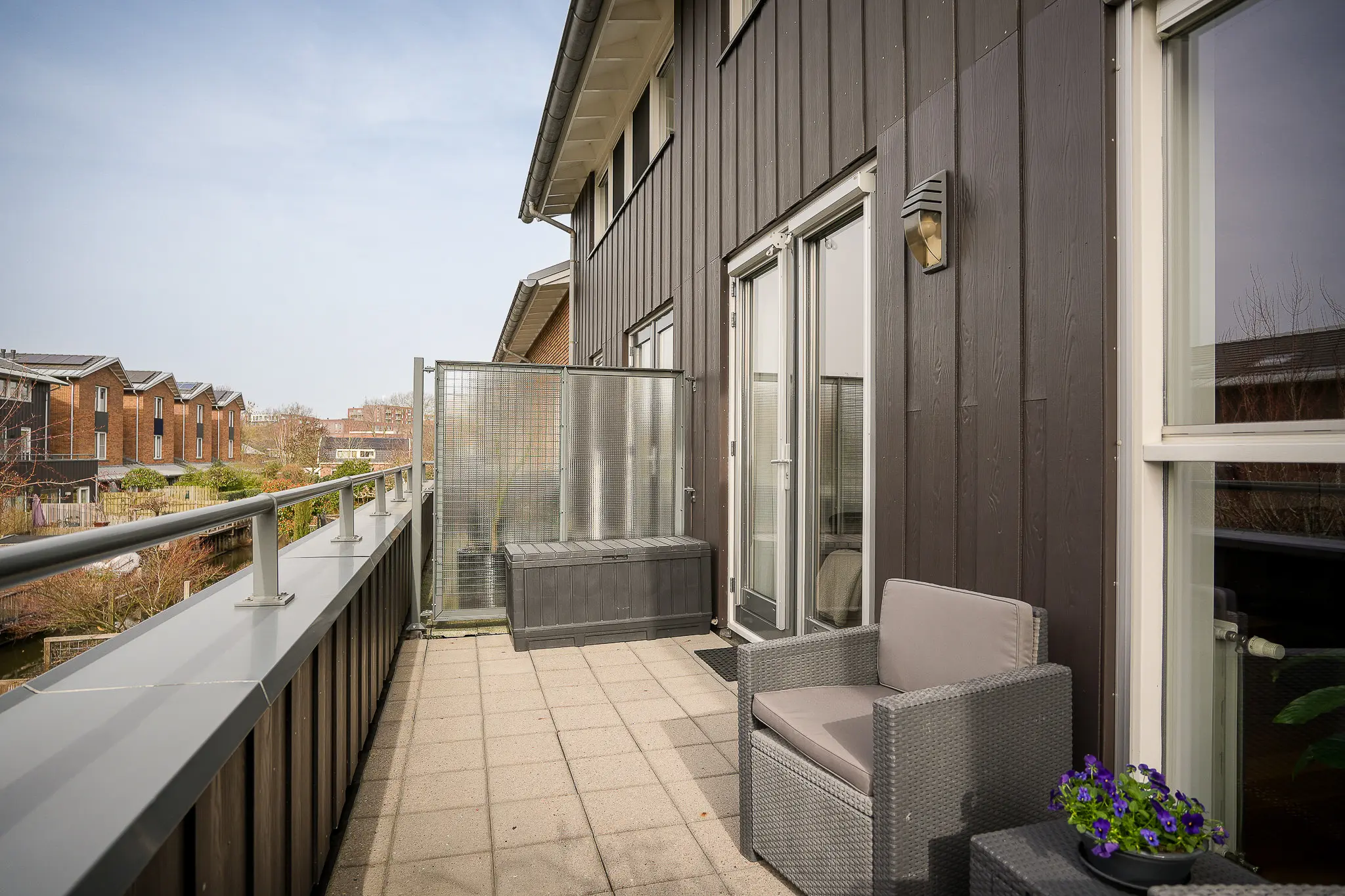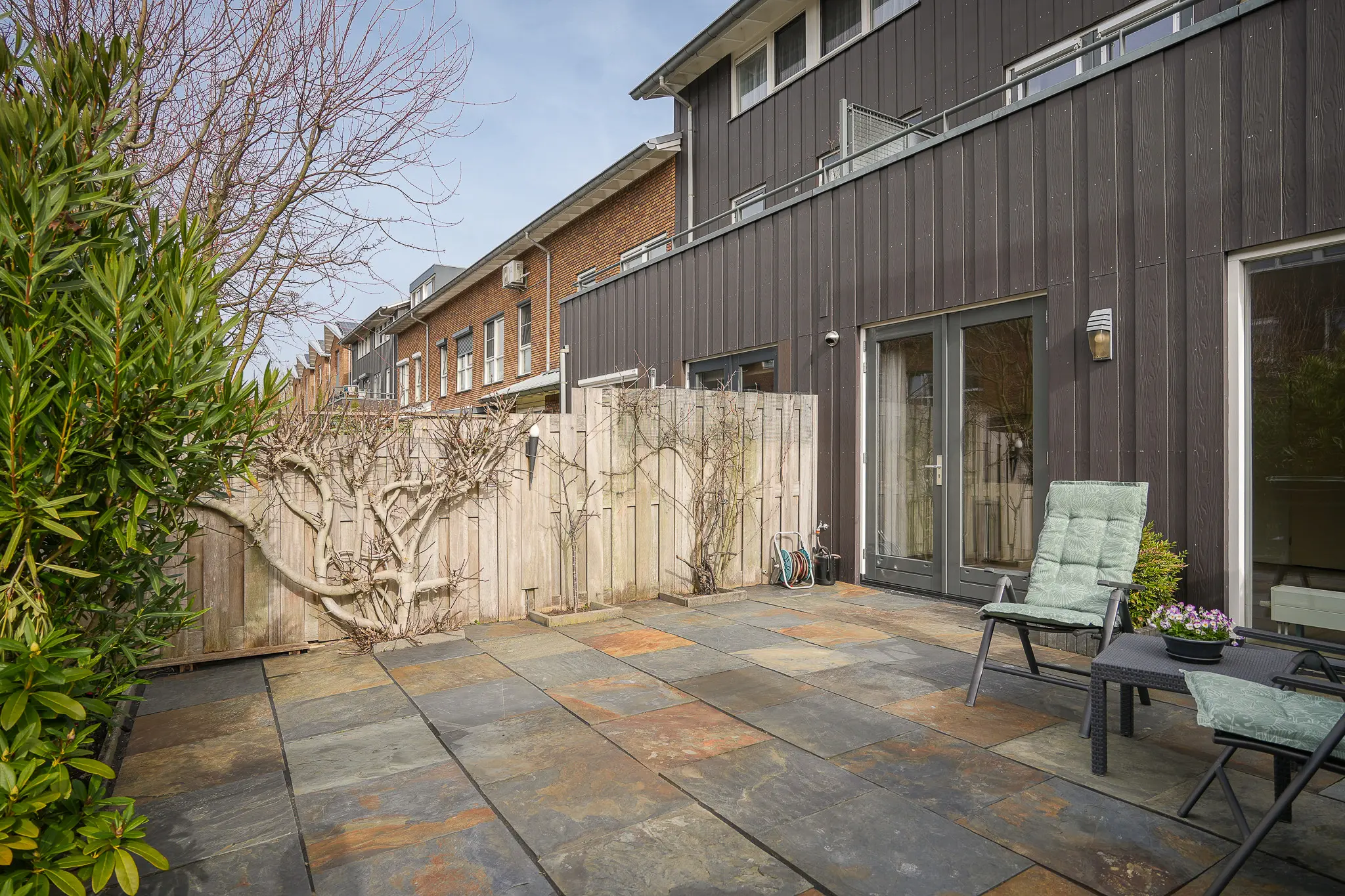 - Carport, balkon, tuin aan water in hofje.