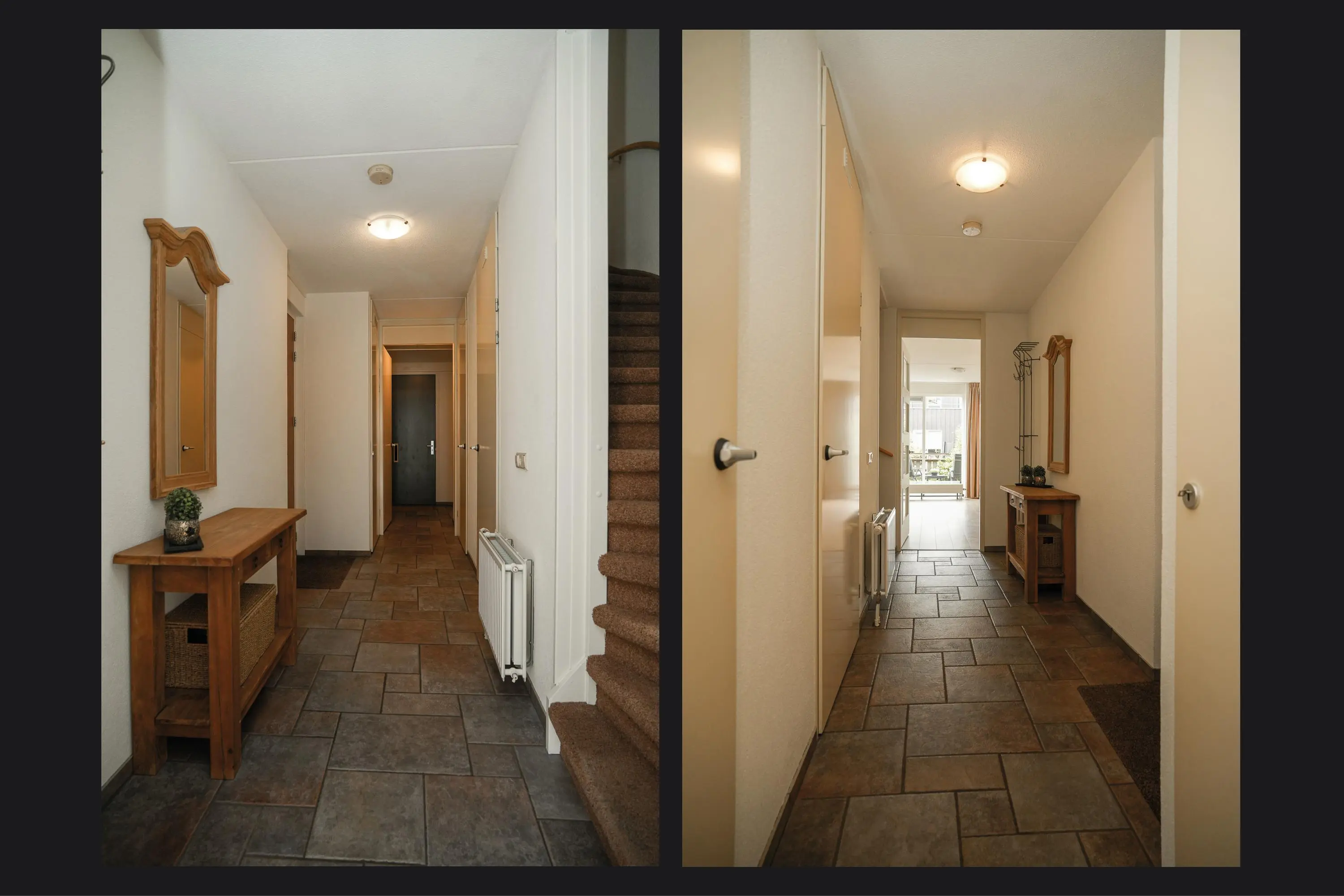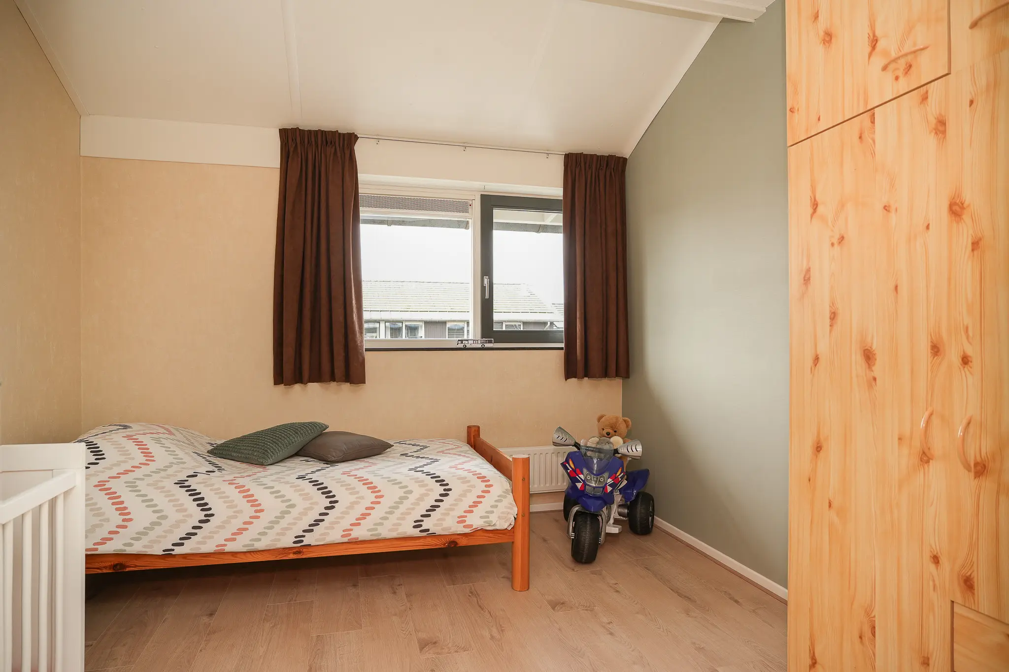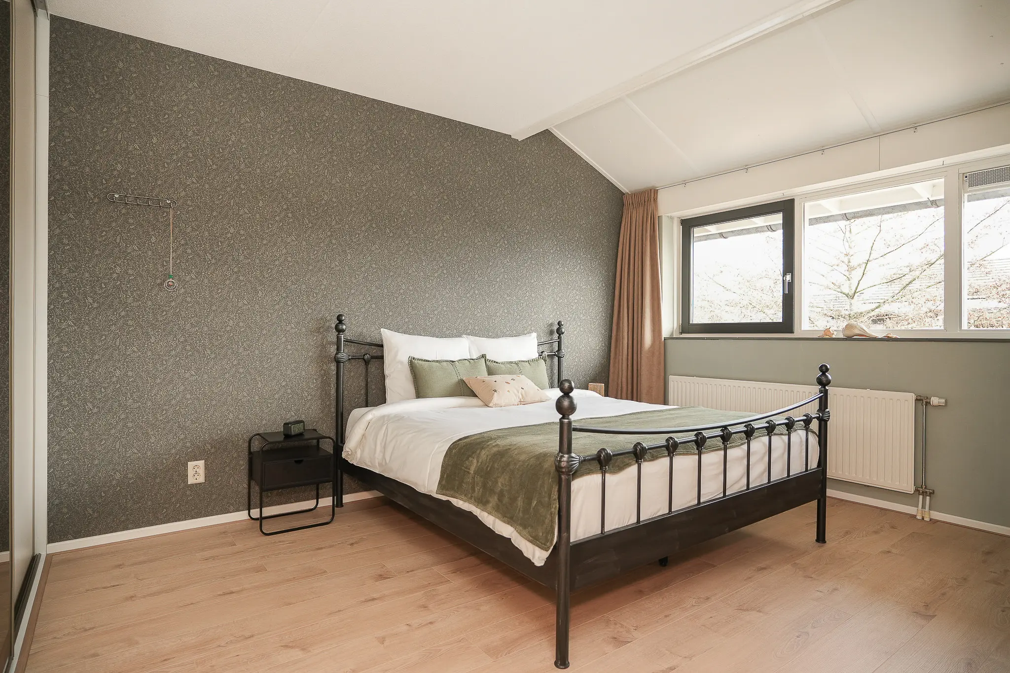 - Drie slaapkamers boven, één slaapkamer op de begane grond.