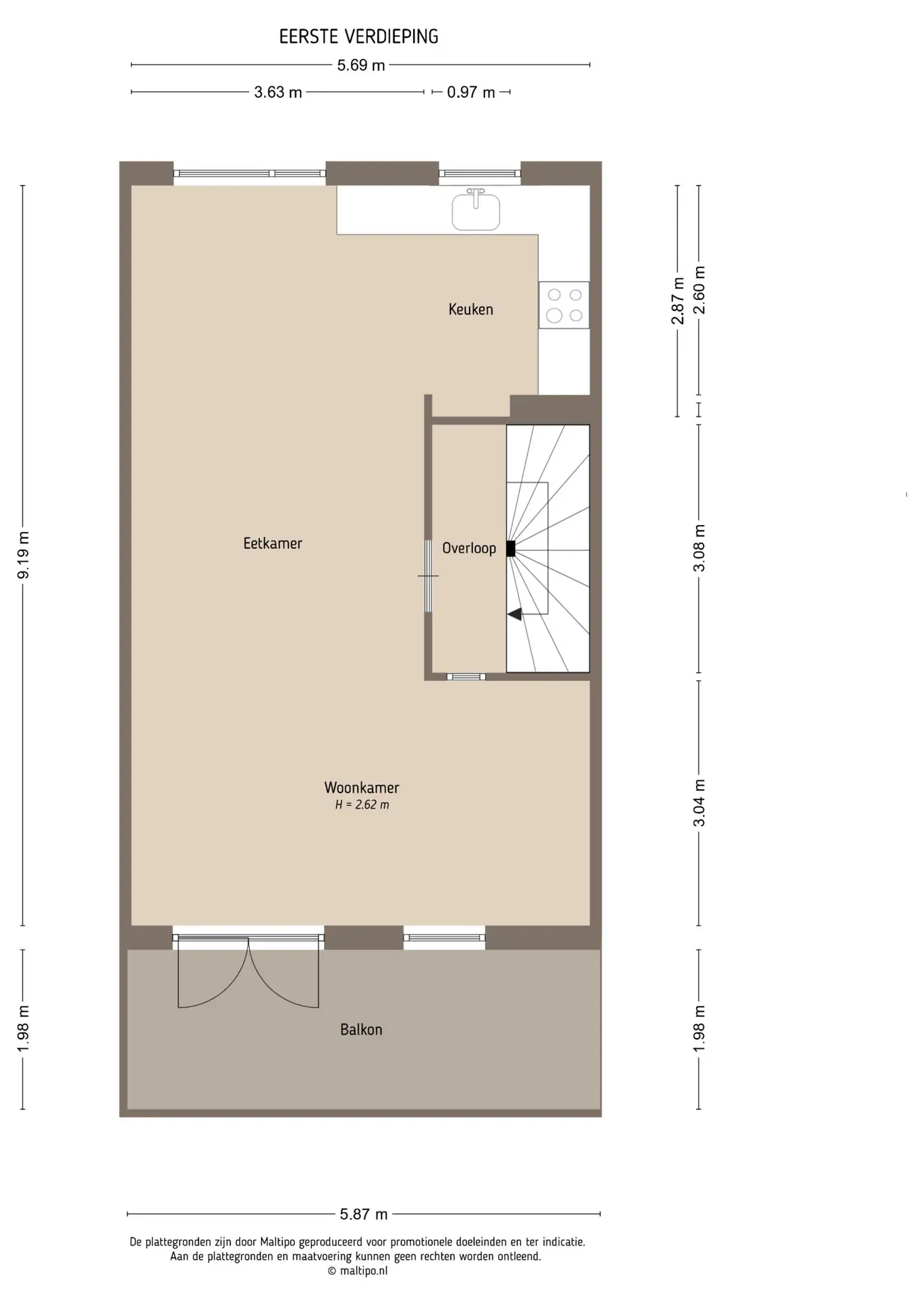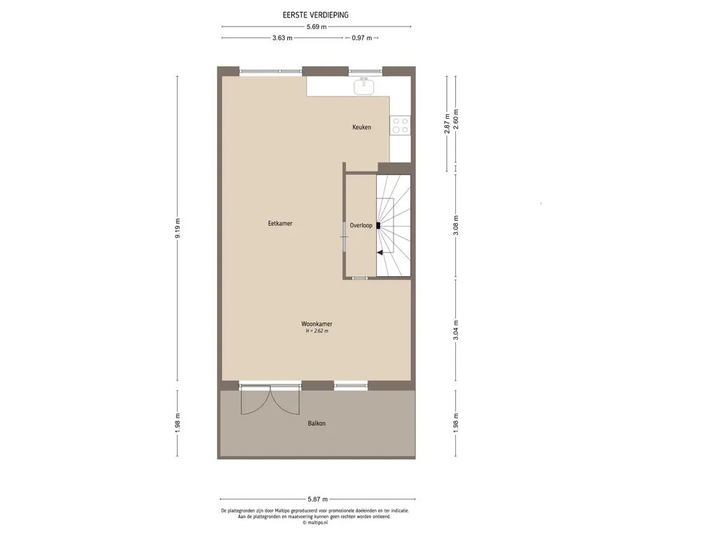 Eerste verdieping: hoofdwoonlaag met balkon