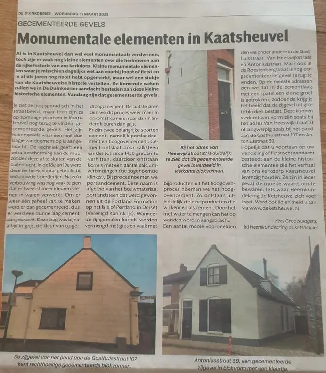 Deze vrijstaande woning kent zijn origine in de 19de eeuw getuige de beschikbare foto. Daarnaast is de woning vermeld in een artikel in de duinkoerier van heemkundekring De Ketsheuvel vanwege de karakteristieke gecementeerde zijgevels. Ondanks de karakteristieke en historische elementen rust er op woning GEEN beperkende monumentale / beschermende status. De berekeningswijze van het energielabel wordt wel ongunstiger beïnvloed o.a. door bouwjaar, zegt niets over feitelijk verbruik, die is niet afwijkend