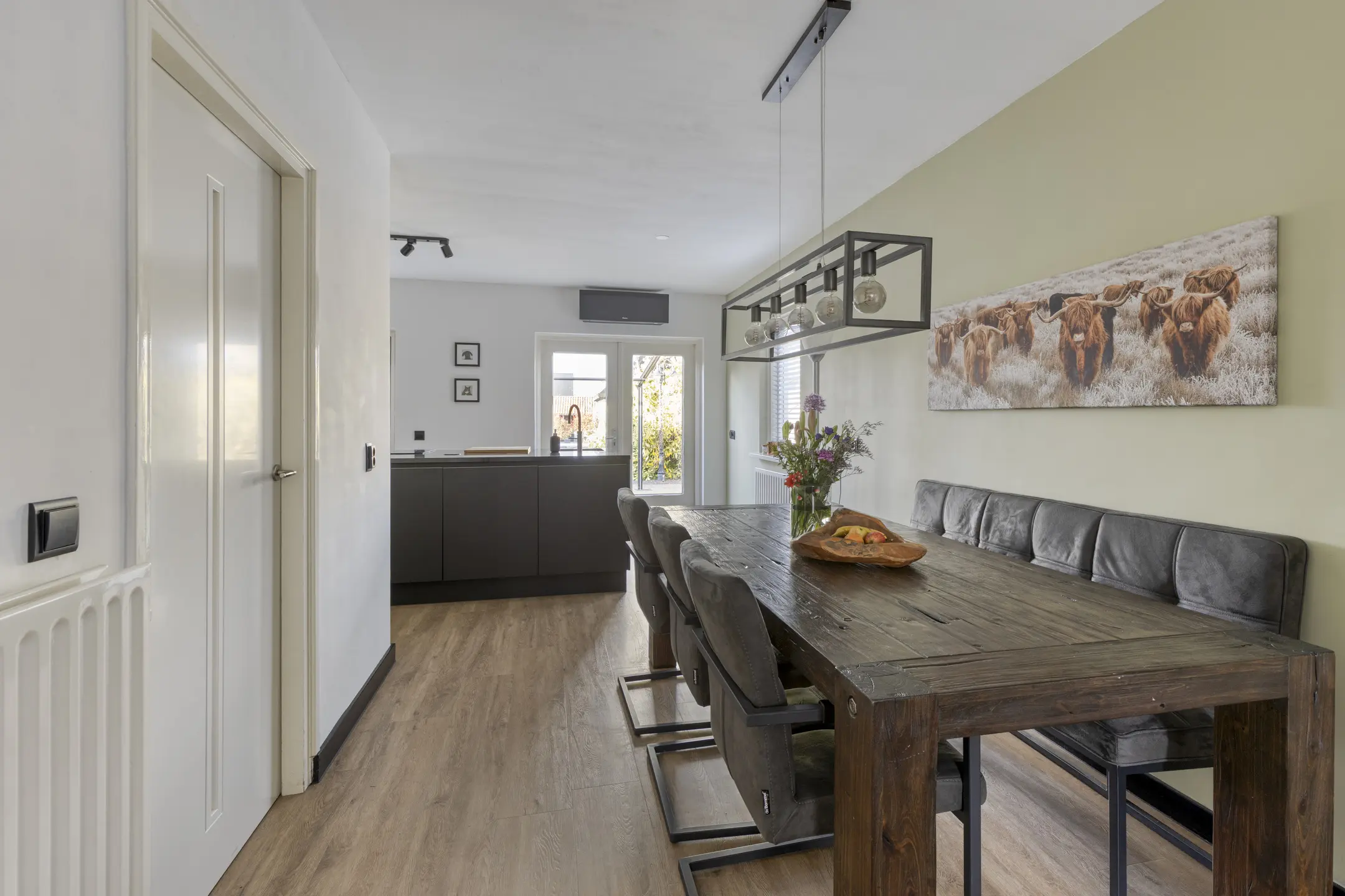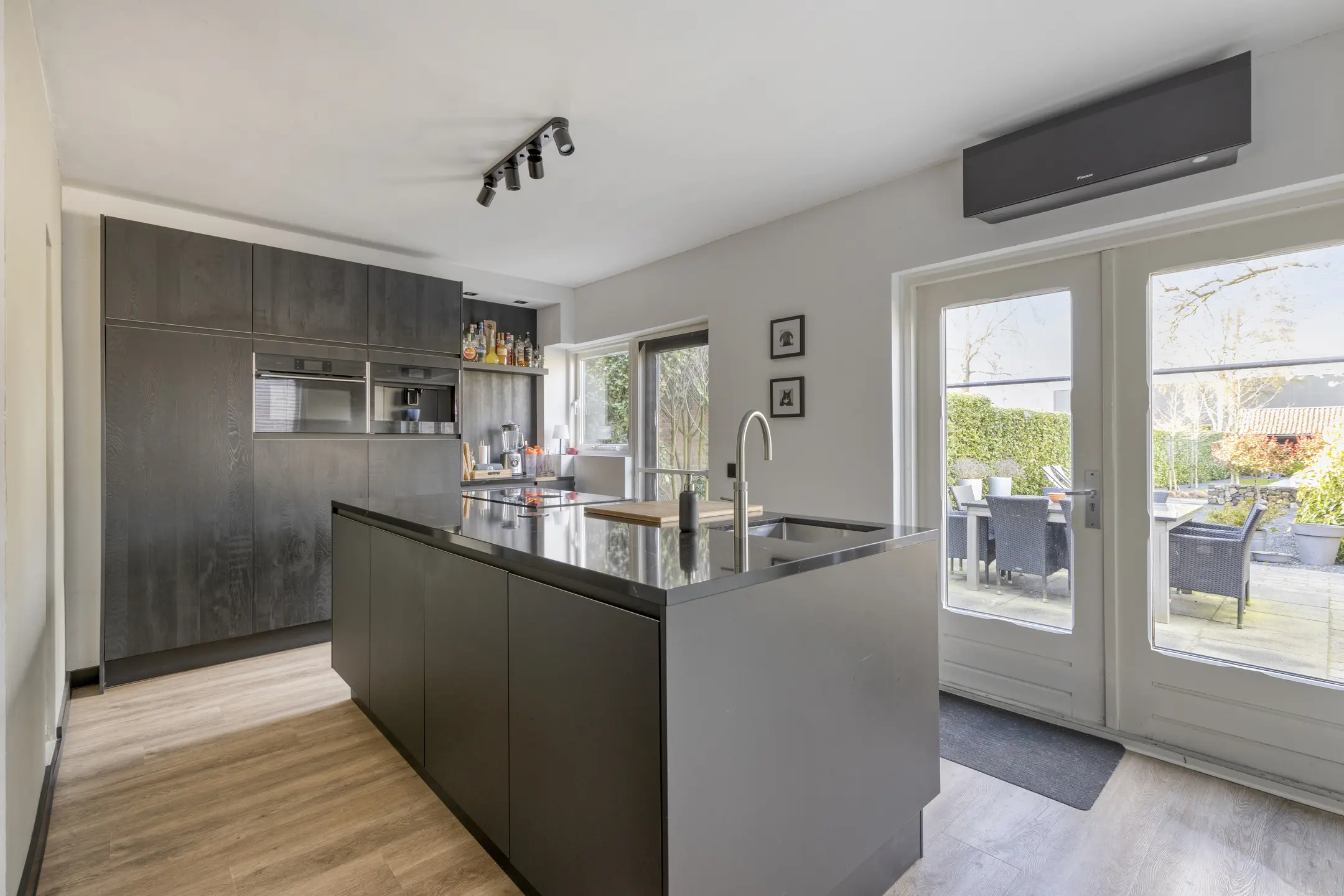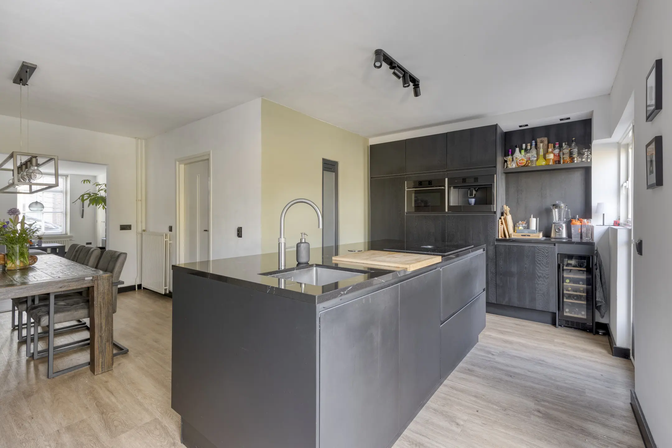 De keuken is in 2022 volledig vernieuwd en samengevoegd tot één open geheel. Dat geeft ruimte en zorgt ervoor dat koken en leven meer in elkaar overlopen. Alles wat je verwacht zit erin, van koffiemachine tot wijnkoelkast en van Bora kookplaat tot Quooker.