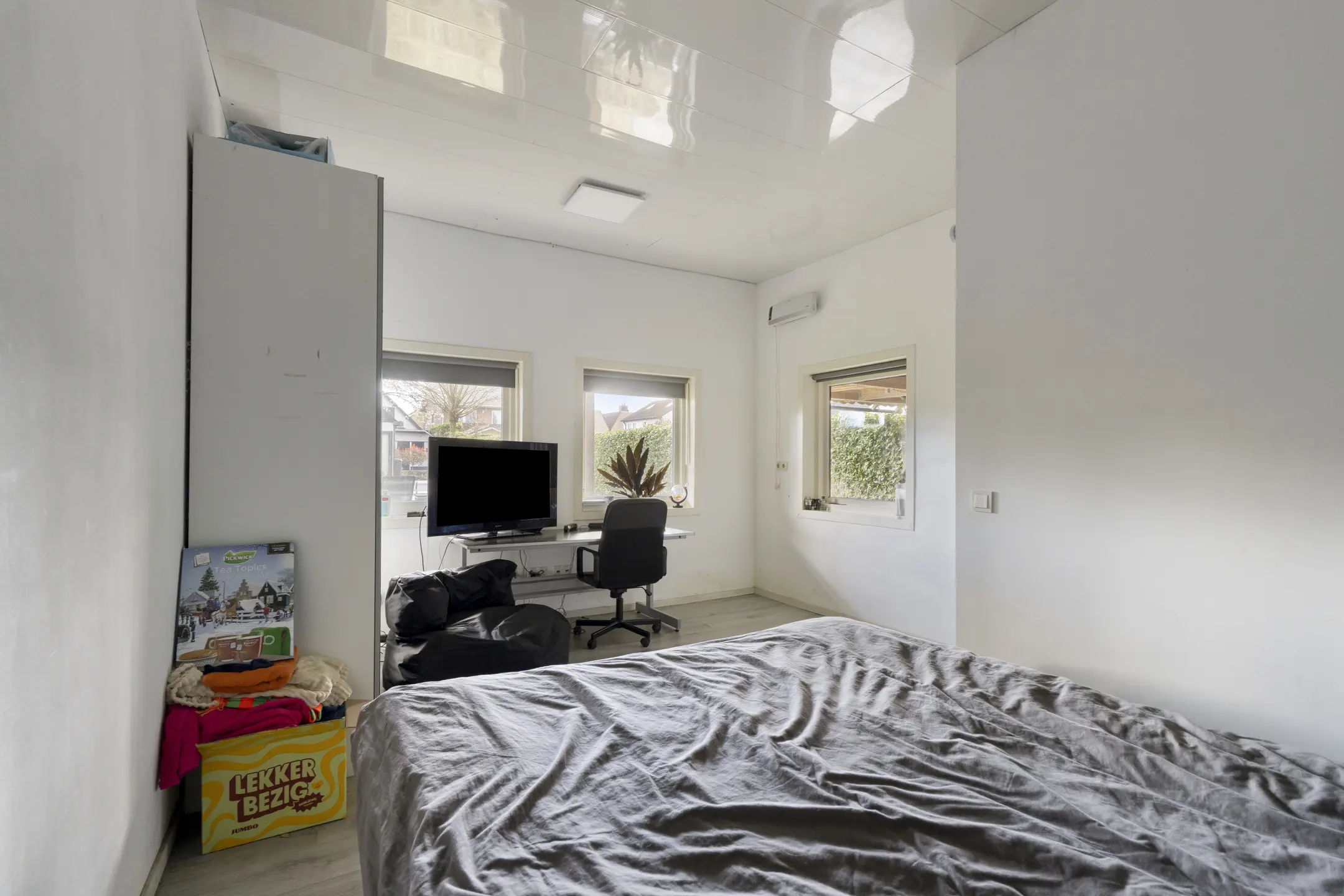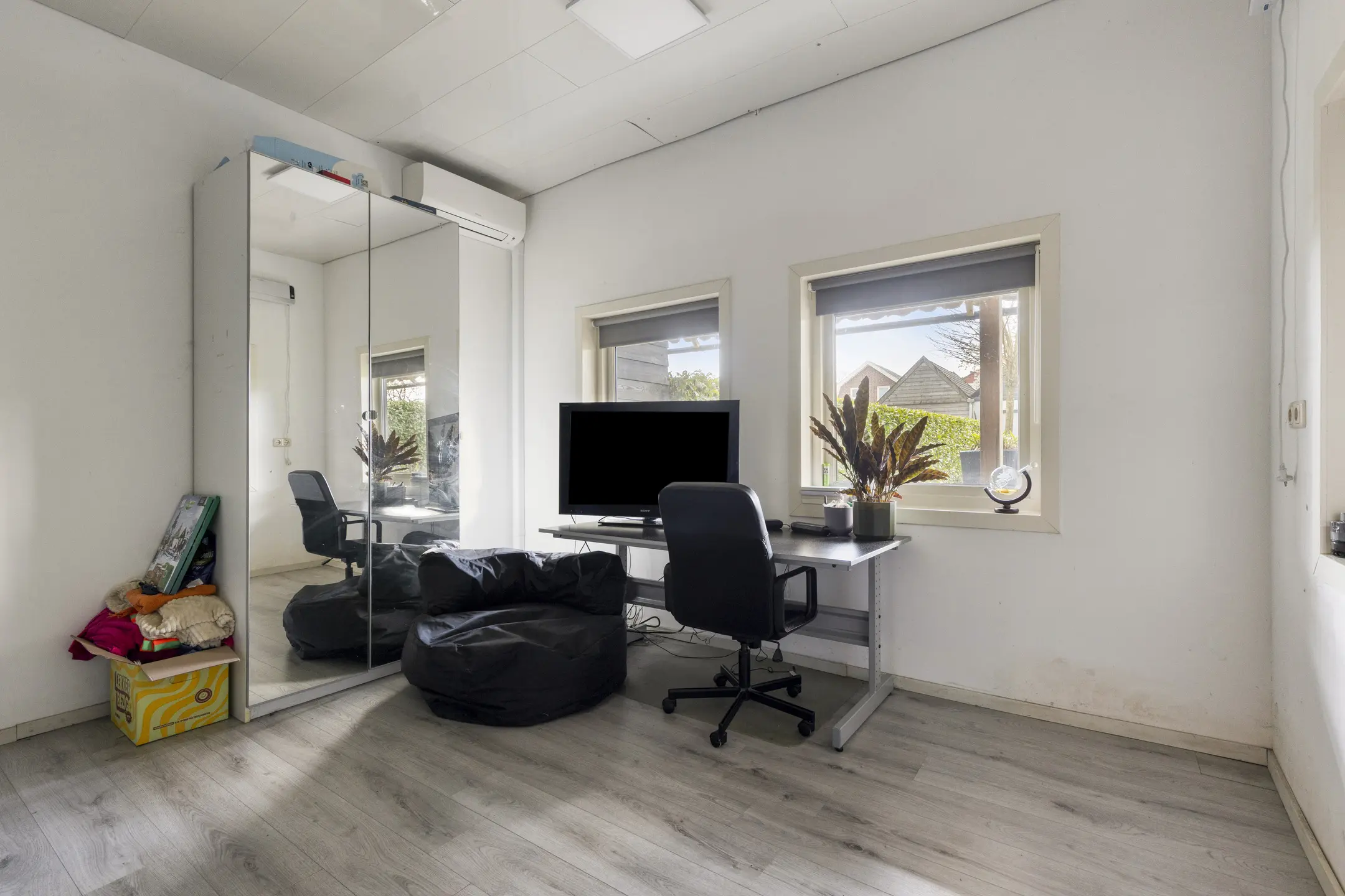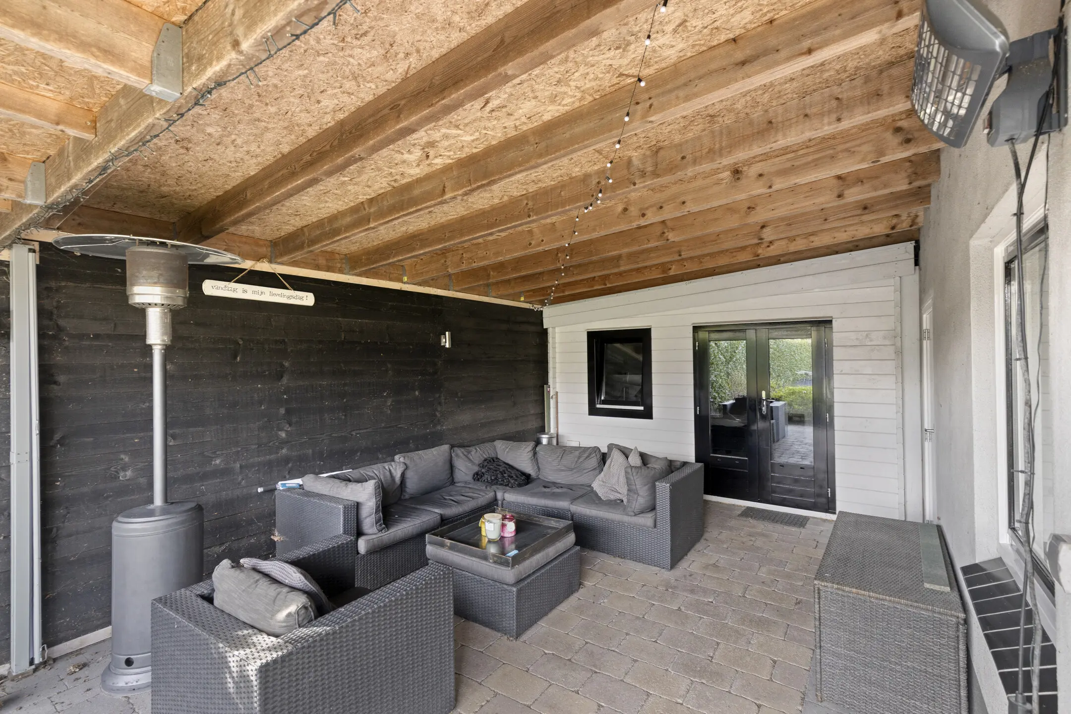 Wat deze woning daarnaast bijzonder maakt, is de extra ruimte buiten de woning zelf. De garage is niet alleen een garage, maar uitgebreid met een geïsoleerde ruimte, een eigen badkamer, toilet en airco. Dat maakt het geschikt voor werken aan huis, hobby of logeren.