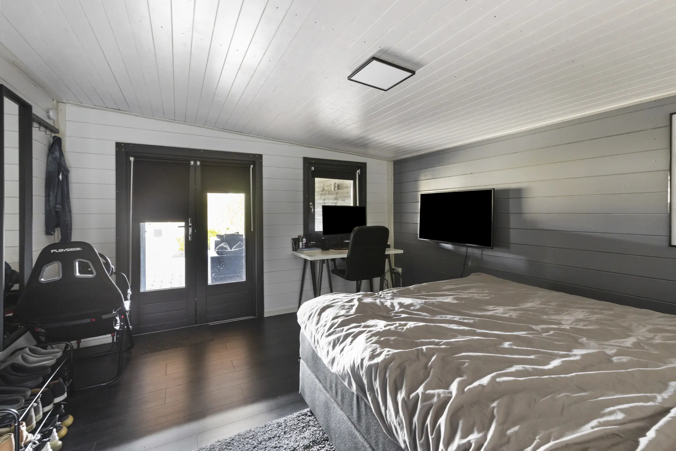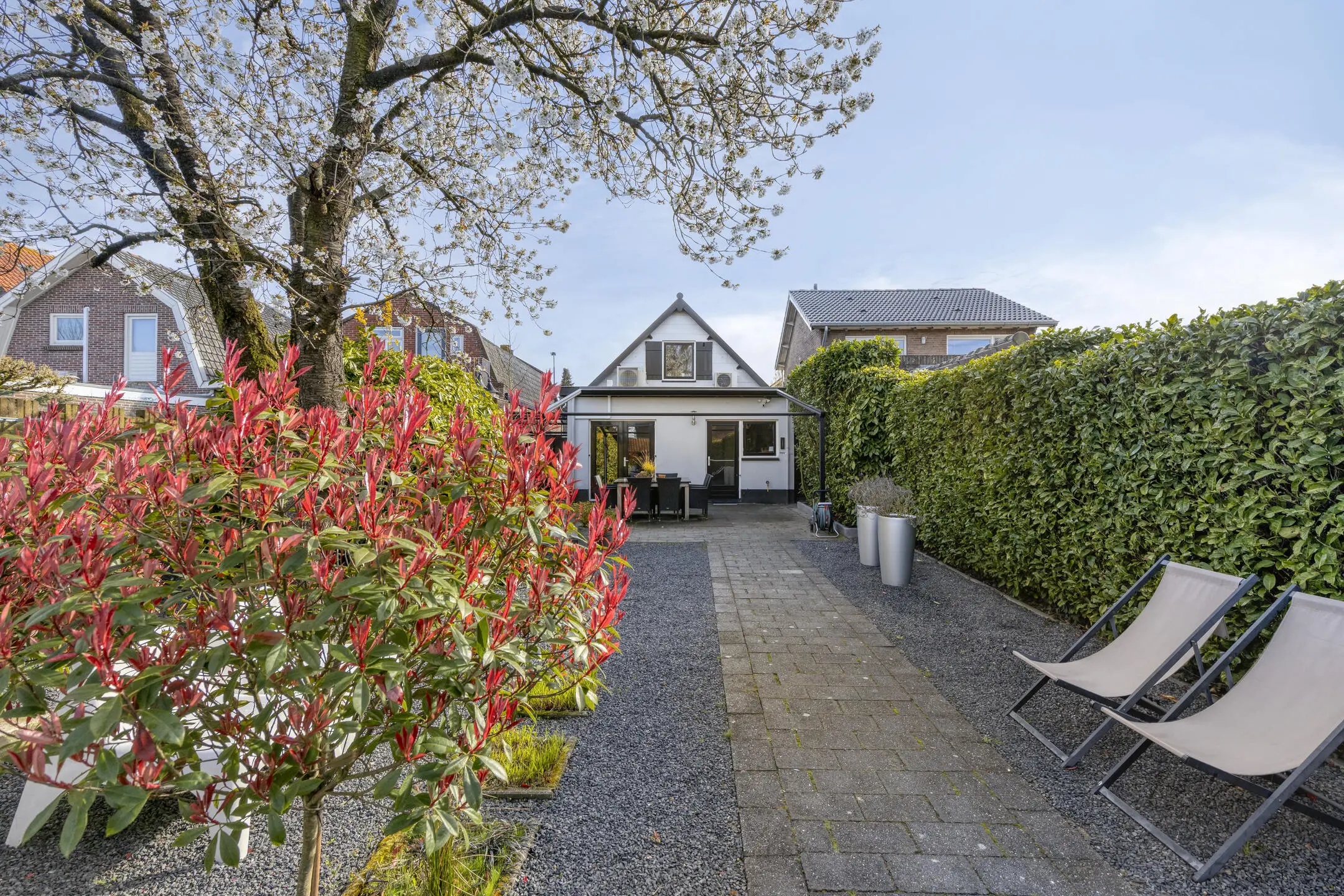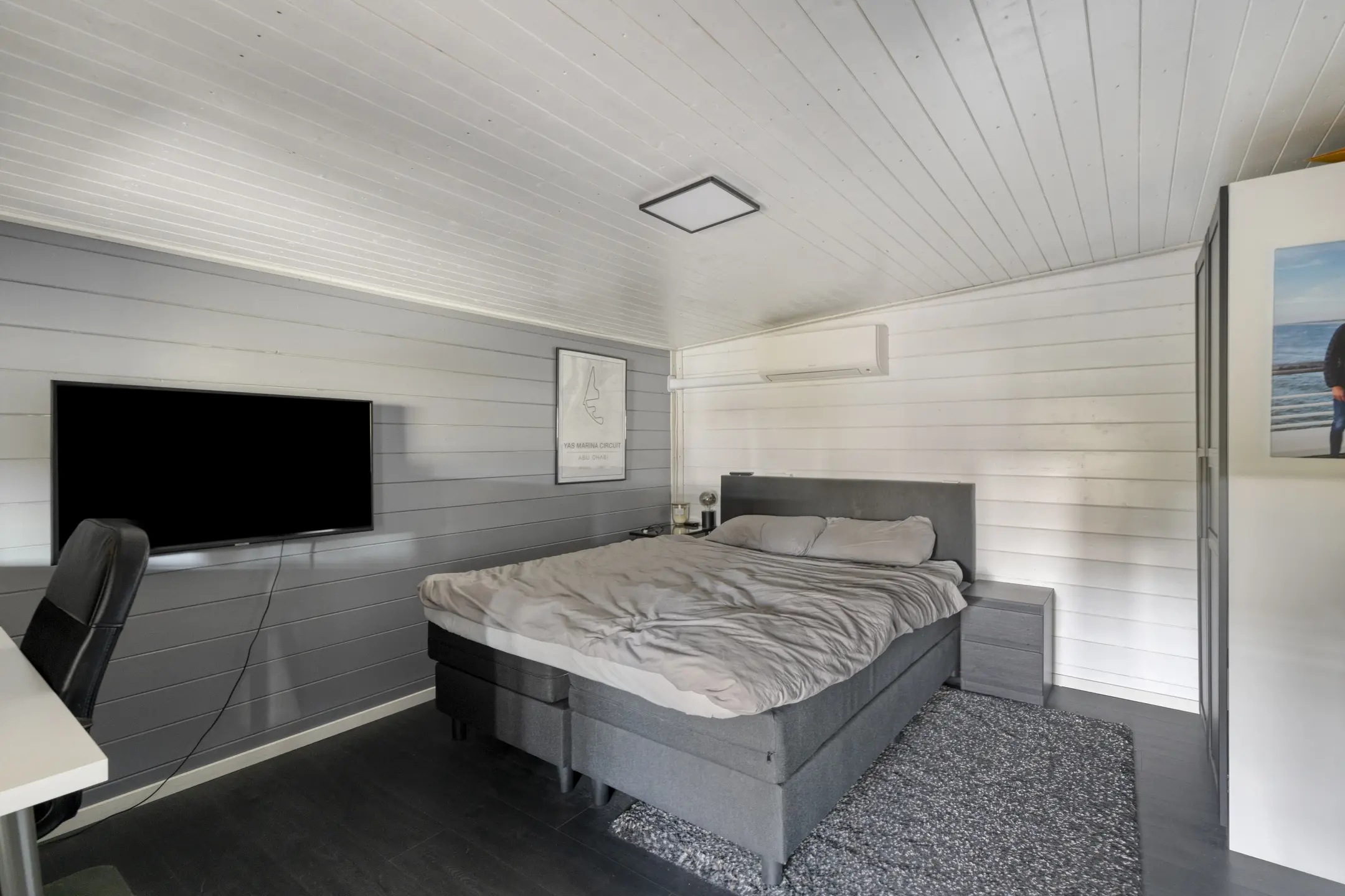 Wat deze woning daarnaast bijzonder maakt, is de extra ruimte buiten de woning zelf. De garage is niet alleen een garage, maar uitgebreid met een geïsoleerde ruimte, een eigen badkamer, toilet en airco. Dat maakt het geschikt voor werken aan huis, hobby of logeren.