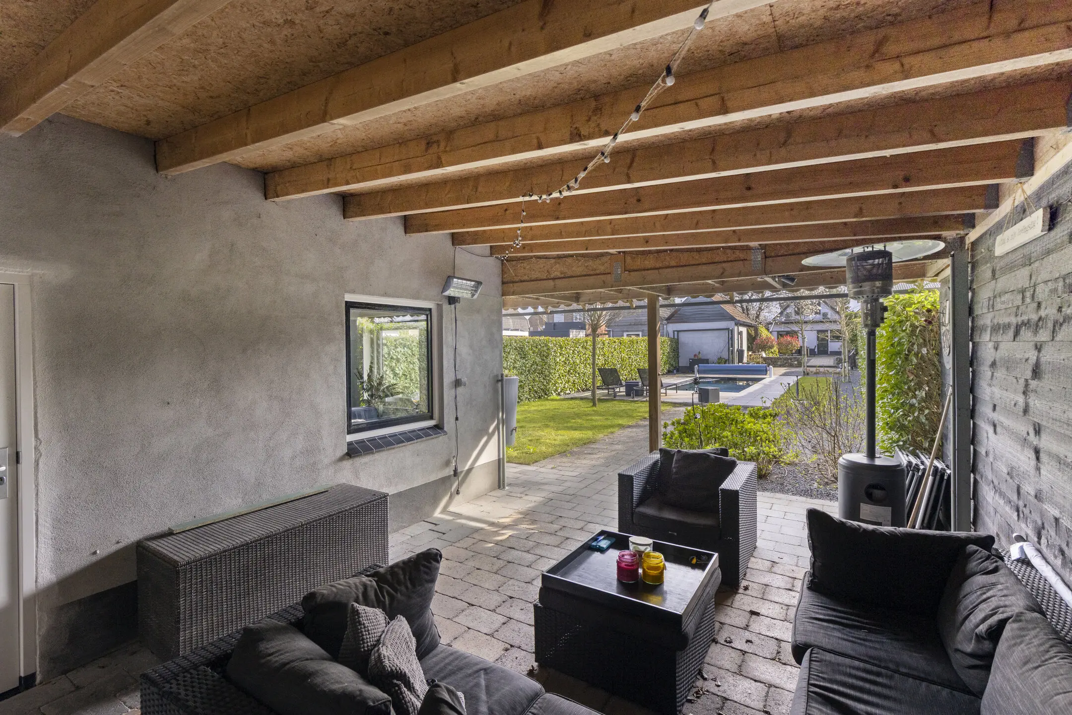 De tuin is ingericht om er echt gebruik van te maken. Het verwarmde zwembad met zonnedek, verlichting en warmtepomp zorgt ervoor dat je hier een groot deel van het jaar plezier van hebt. De bestrating en voorzieningen zijn in 2022 vernieuwd, inclusief stroom- en internetvoorzieningen in de tuin.