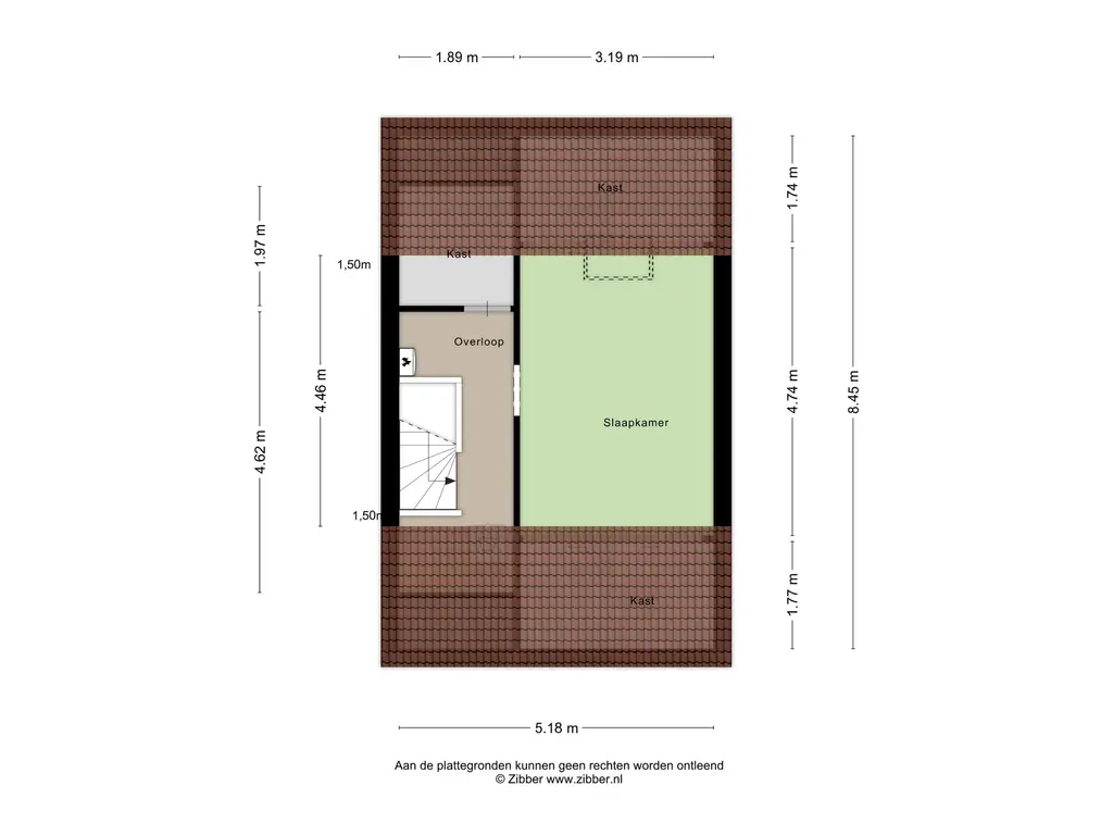 Via een vaste trap bereikt u de tweede verdieping. Hier vindt u een overloop met de cv-opstelling en toegang tot een derde slaapkamer. Dankzij de knieschotten is er veel praktische bergruimte onder de schuine dakvlakken aanwezig. Ook is er een extra bergkast bereikbaar vanaf de overloop.