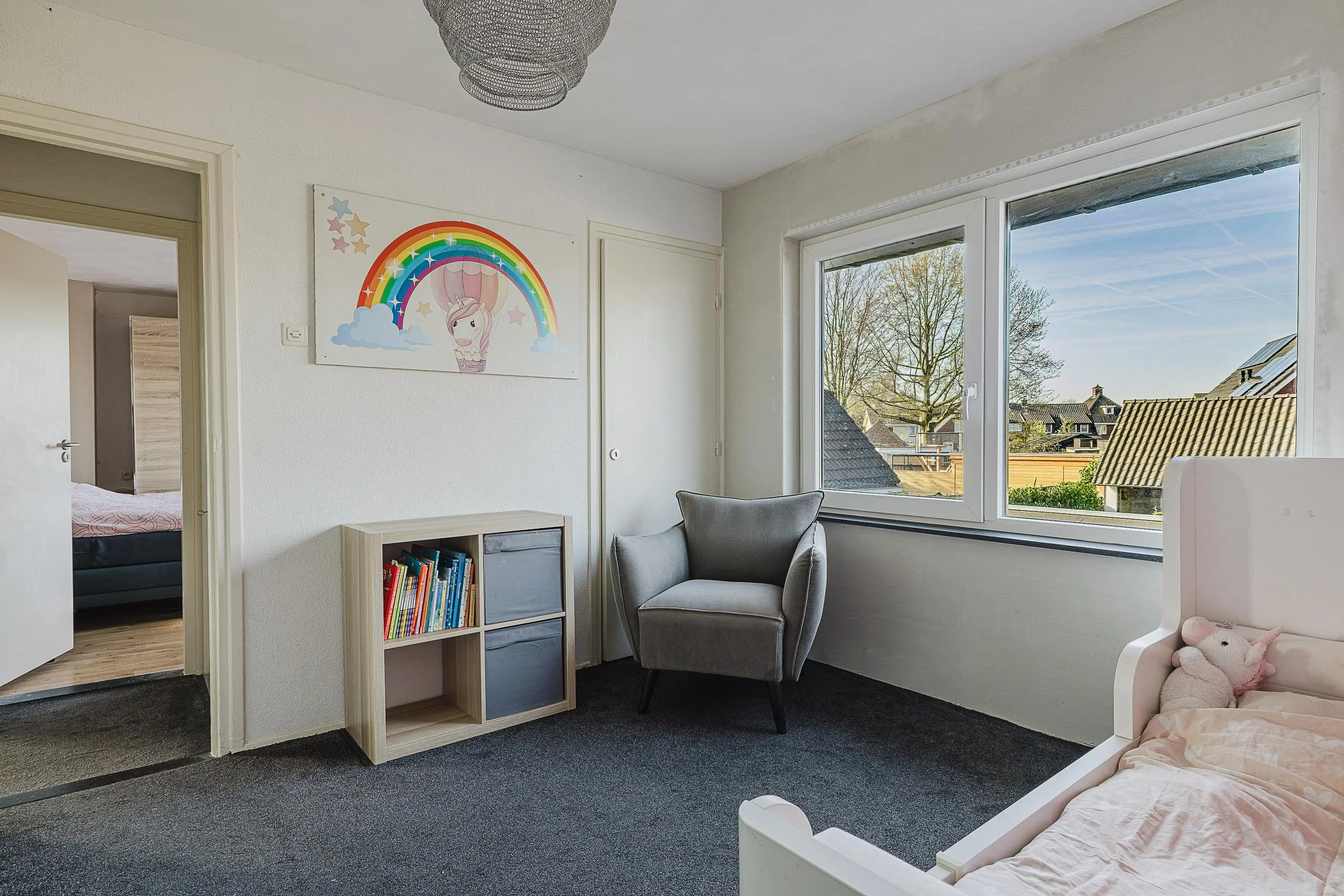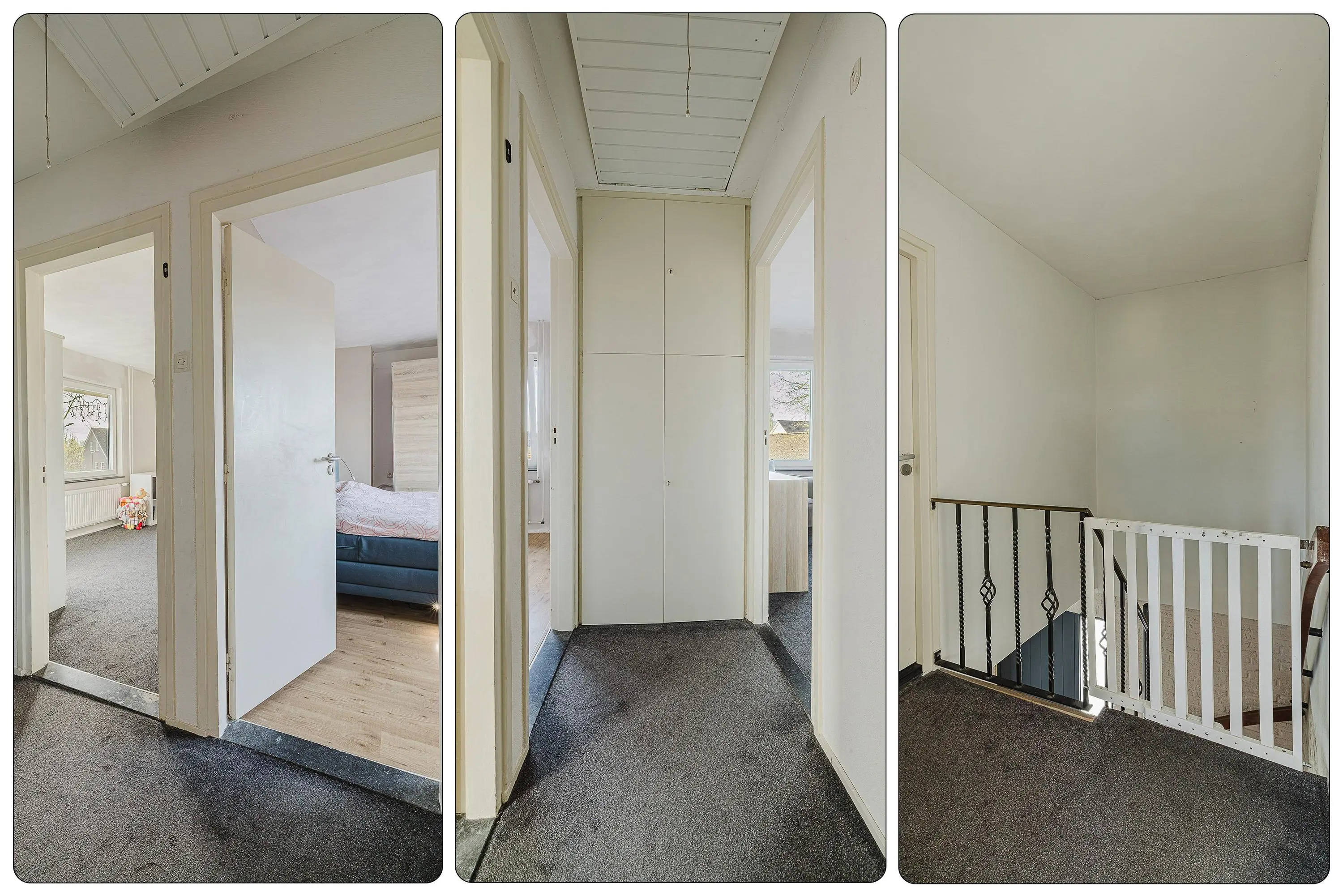 Op de eerste verdieping bevinden zich drie goed bemeten slaapkamers en een badkamer. De ruimtes zijn functioneel en bieden een prettige basis, met mogelijkheden om deze in de toekomst verder naar eigen smaak in te richten.