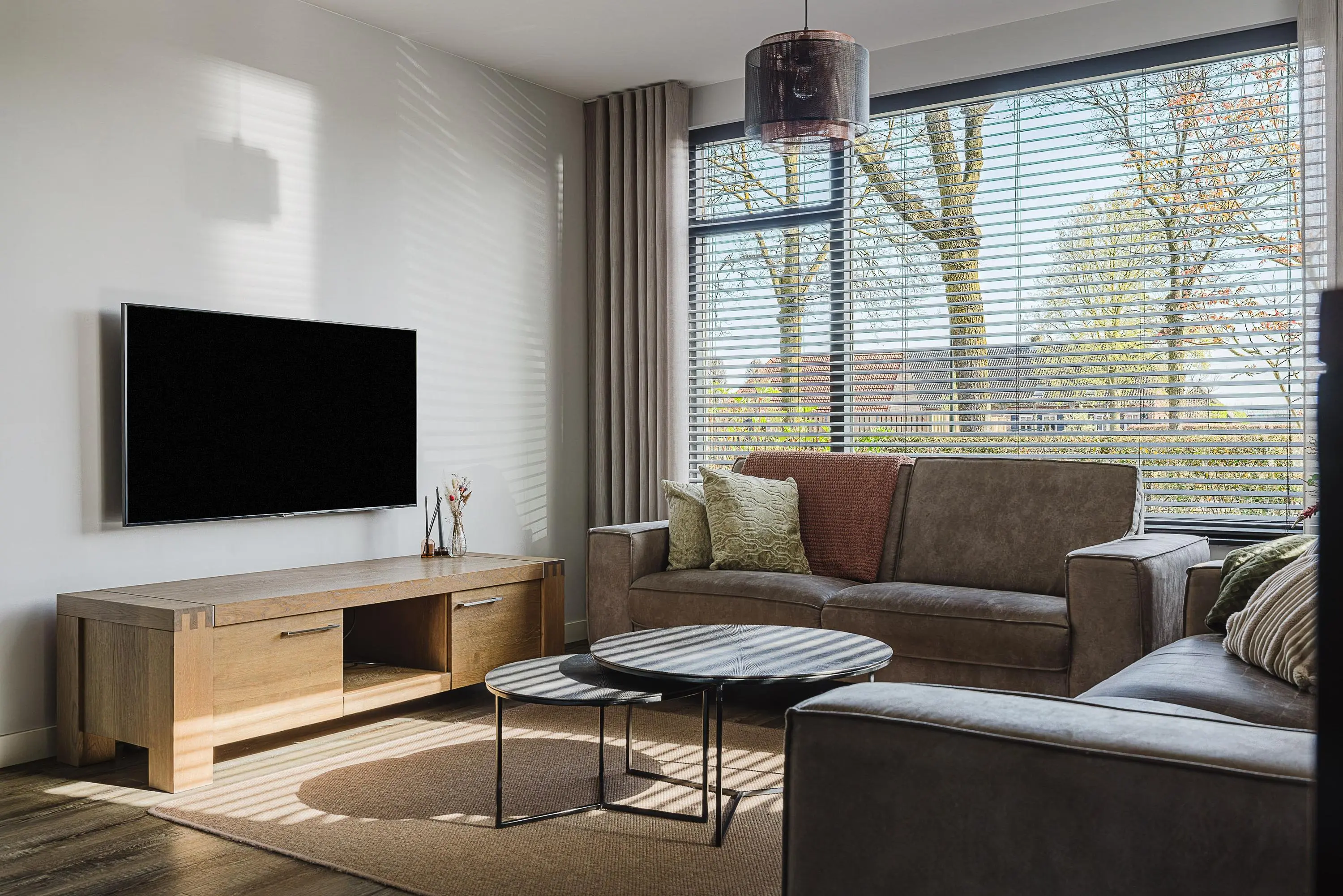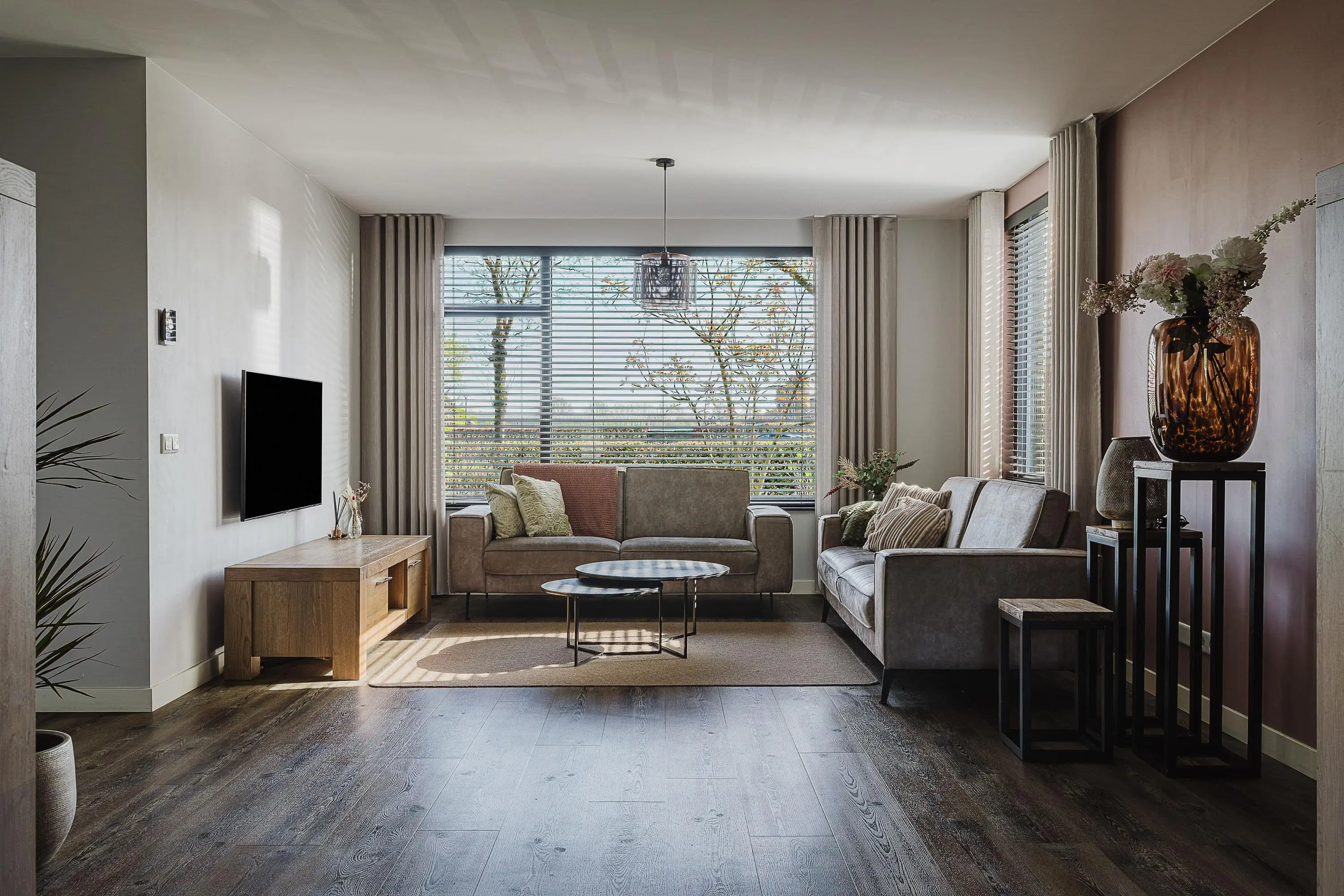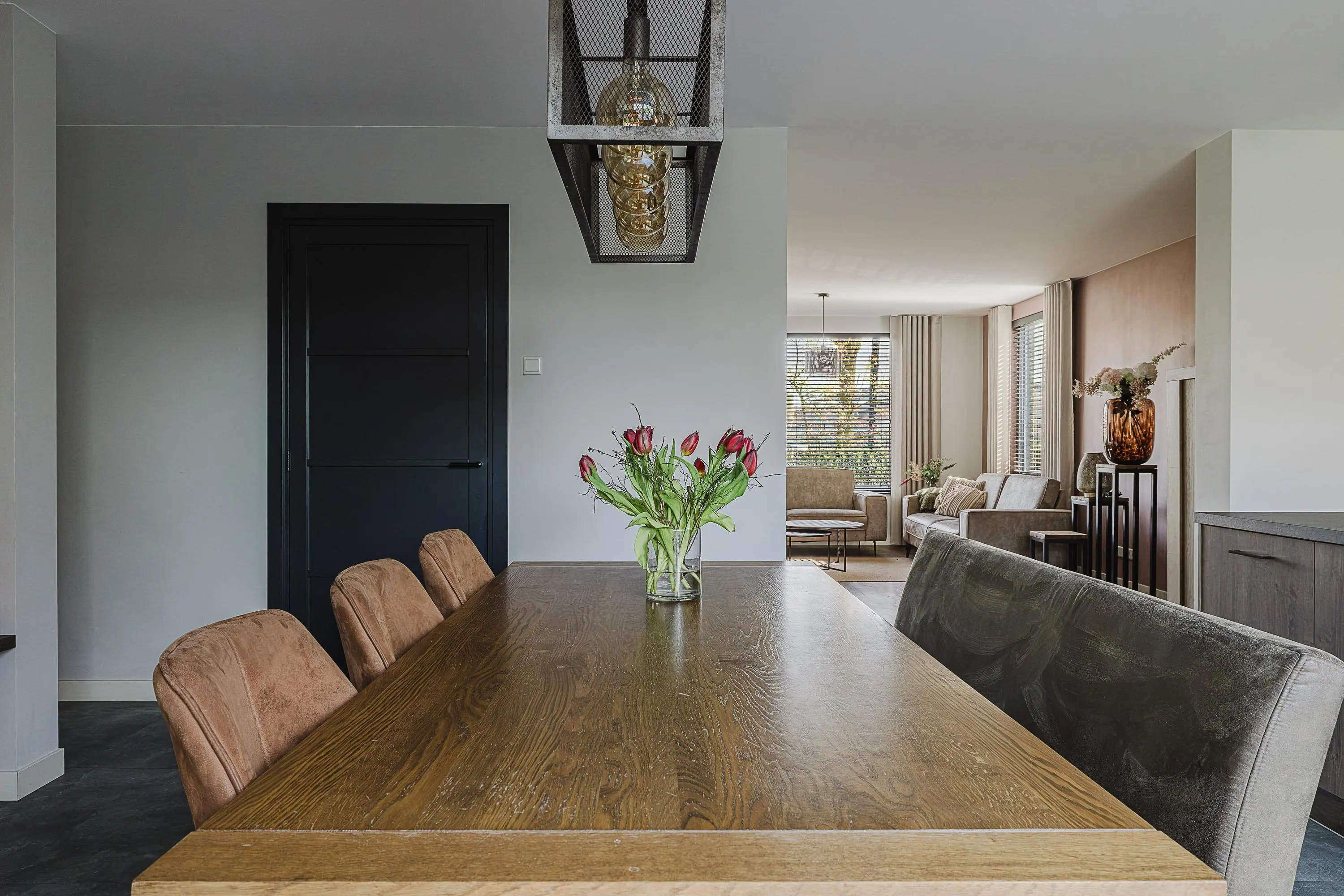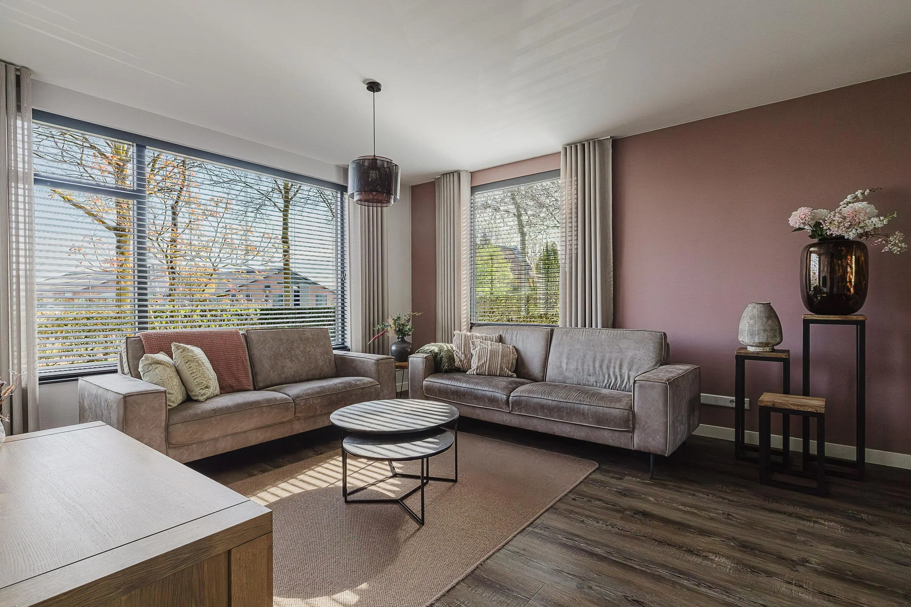 De woonkamer is ruim opgezet en sfeervol ingericht, met voldoende mogelijkheden voor het creëren van een comfortabele zithoek en een fijne leefruimte voor het hele gezin.