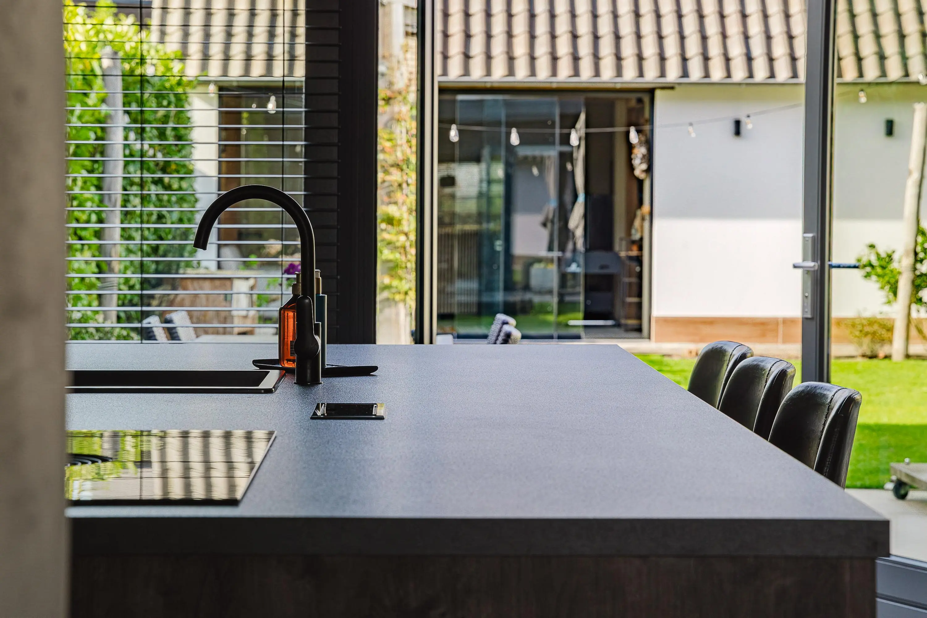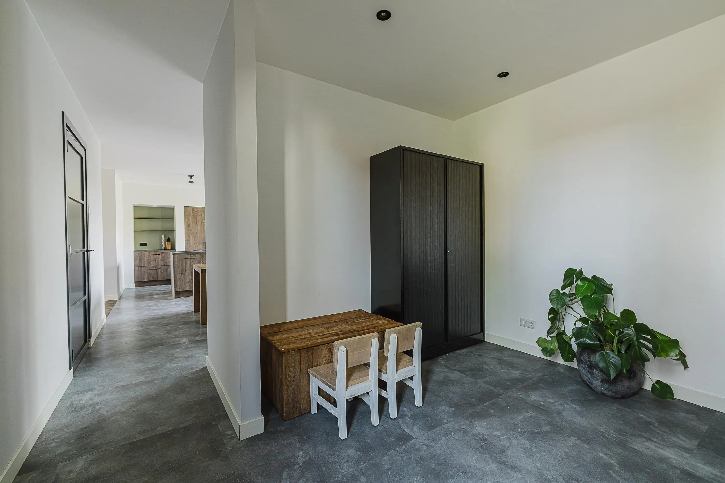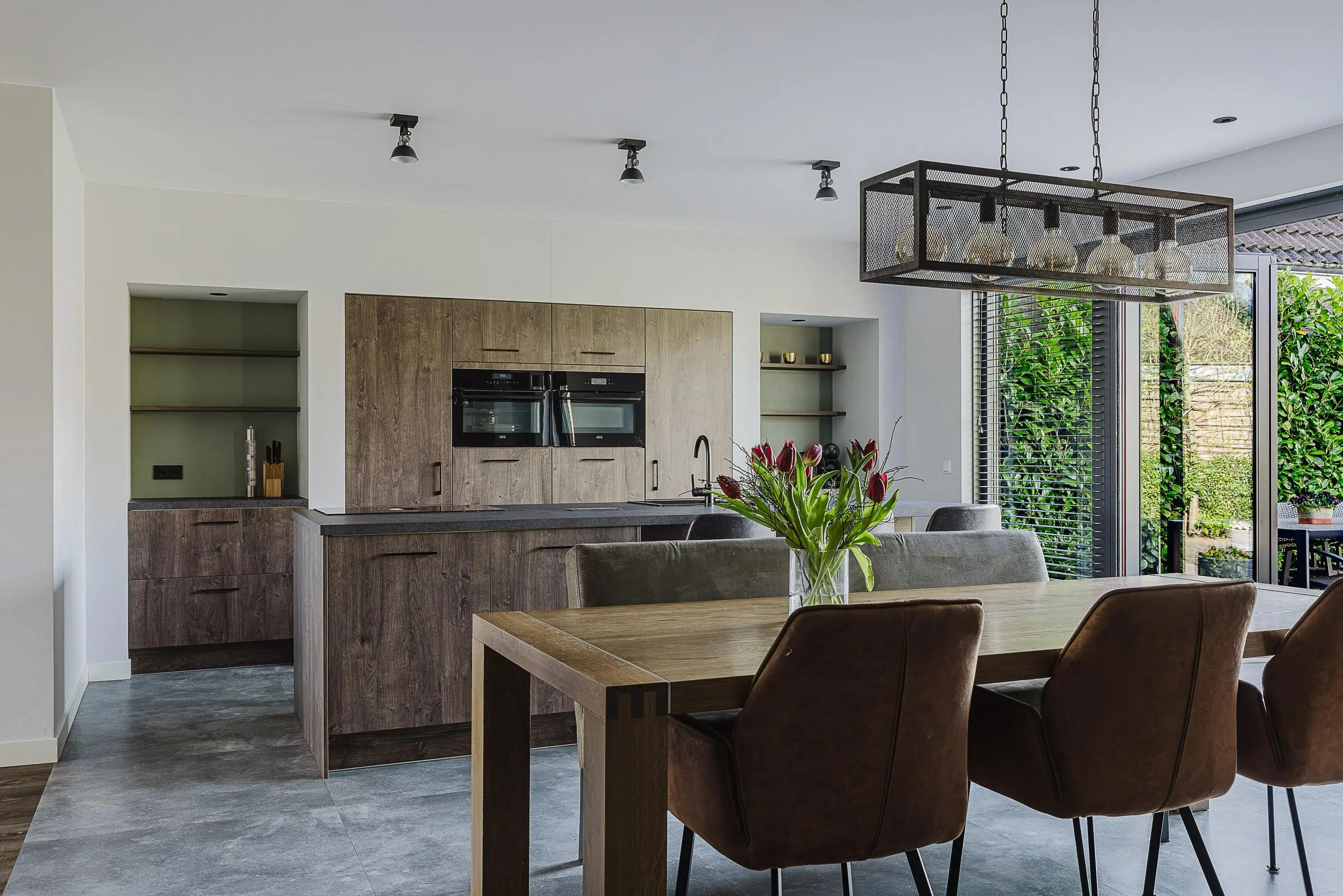 Bij binnenkomst valt direct de ruimte en het licht op. De royale leefkeuken vormt het kloppend hart van de woning en biedt met 50 m² een indrukwekkende plek waar koken, leven en samenkomen centraal staan. De grote raampartijen en openslaande deuren zorgen voor een prettige lichtinval en een directe verbinding met de tuin.