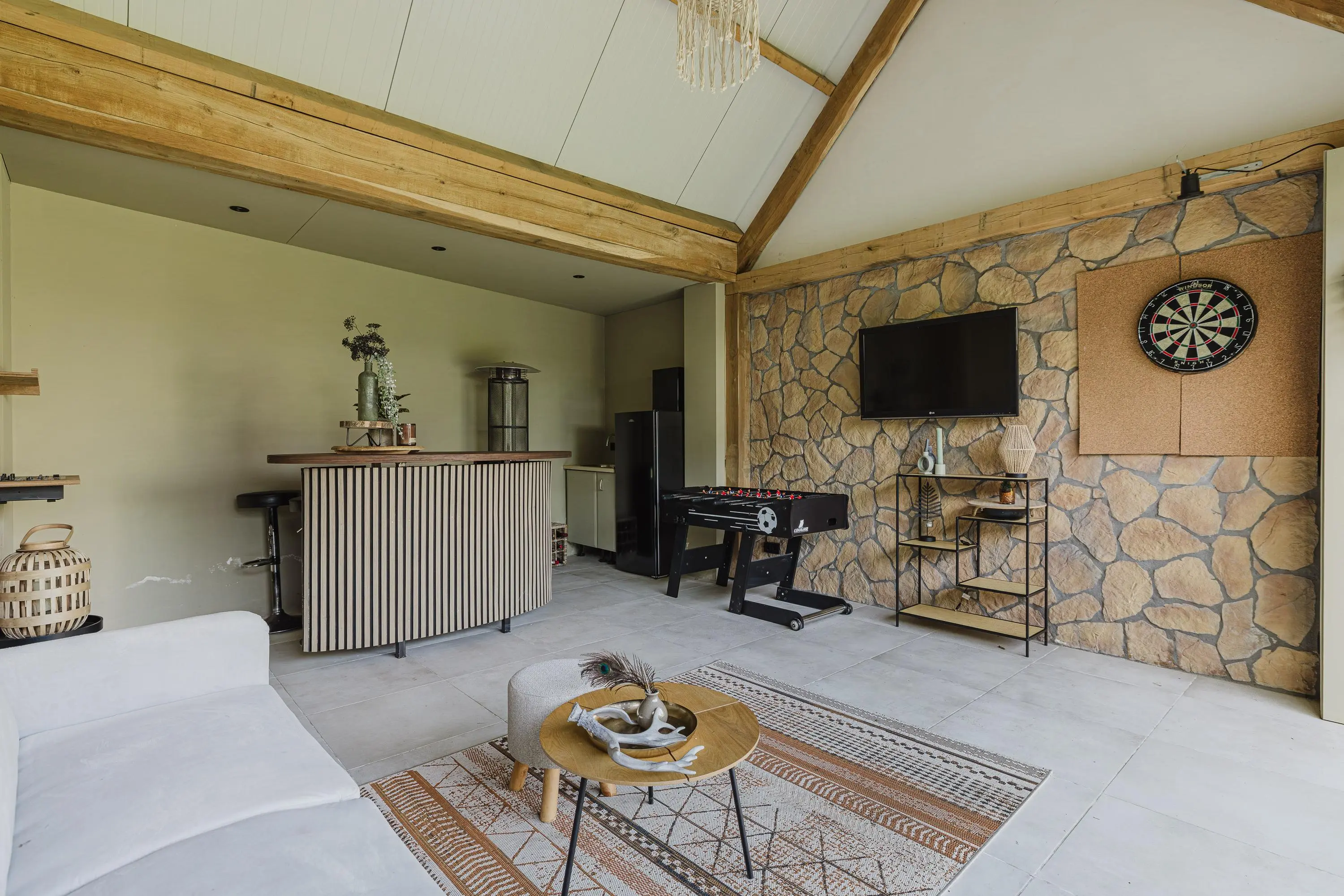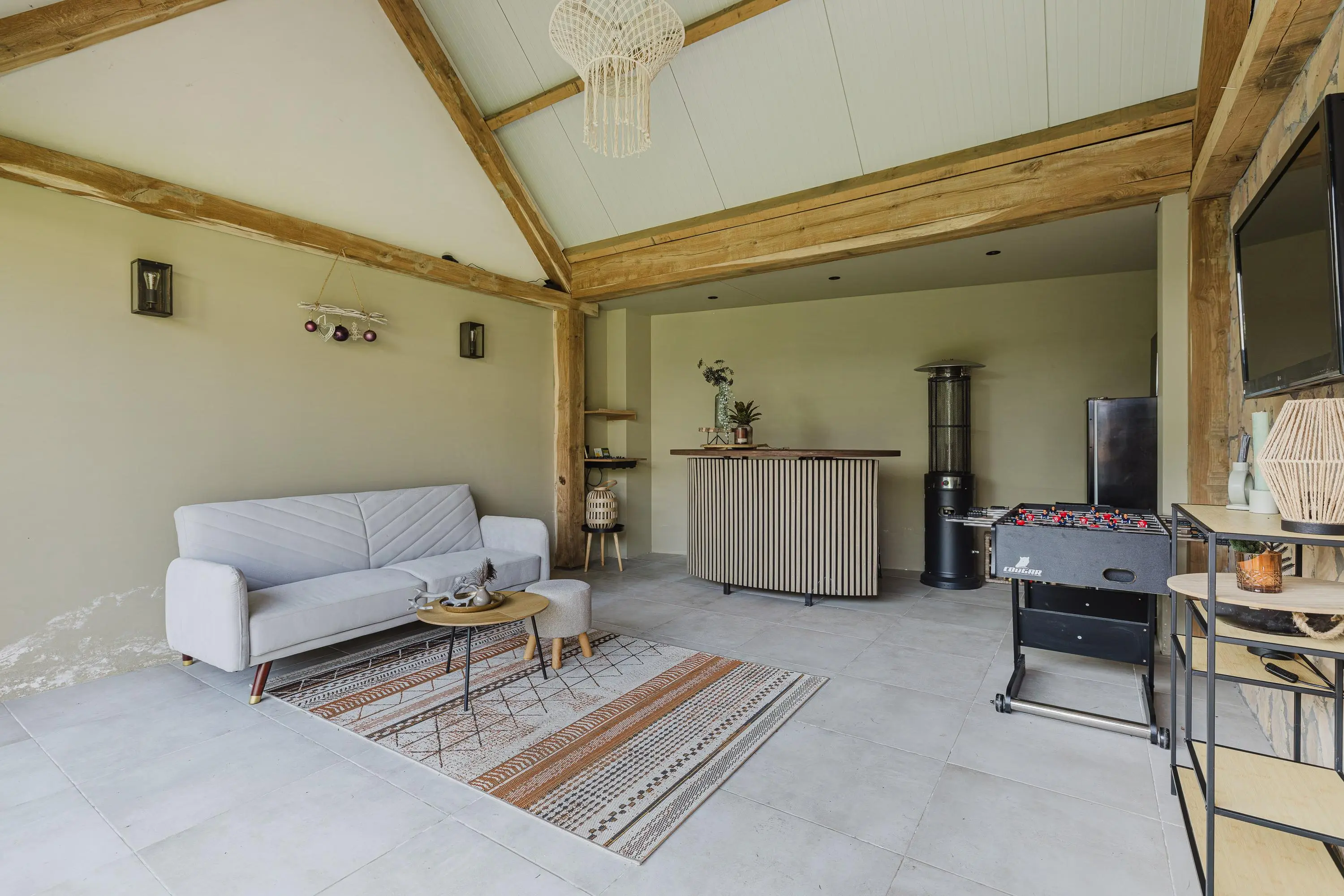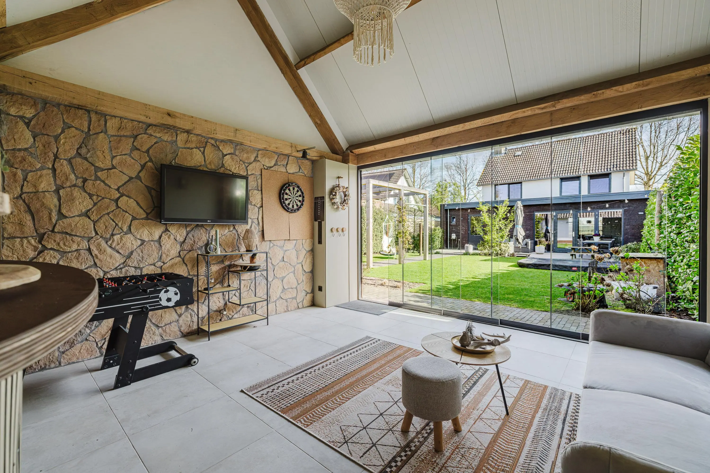 Een absolute meerwaarde is de vrijstaande tuinkamer achter in de tuin. Deze fraaie ruimte met glazen pui is ideaal als lounge, hobbyruimte of thuiswerkplek en maakt het mogelijk om vrijwel het hele jaar door te genieten van het buitenleven. De aanwezige extra bergruimte en vliering zorgen bovendien voor praktische opslagmogelijkheden.
