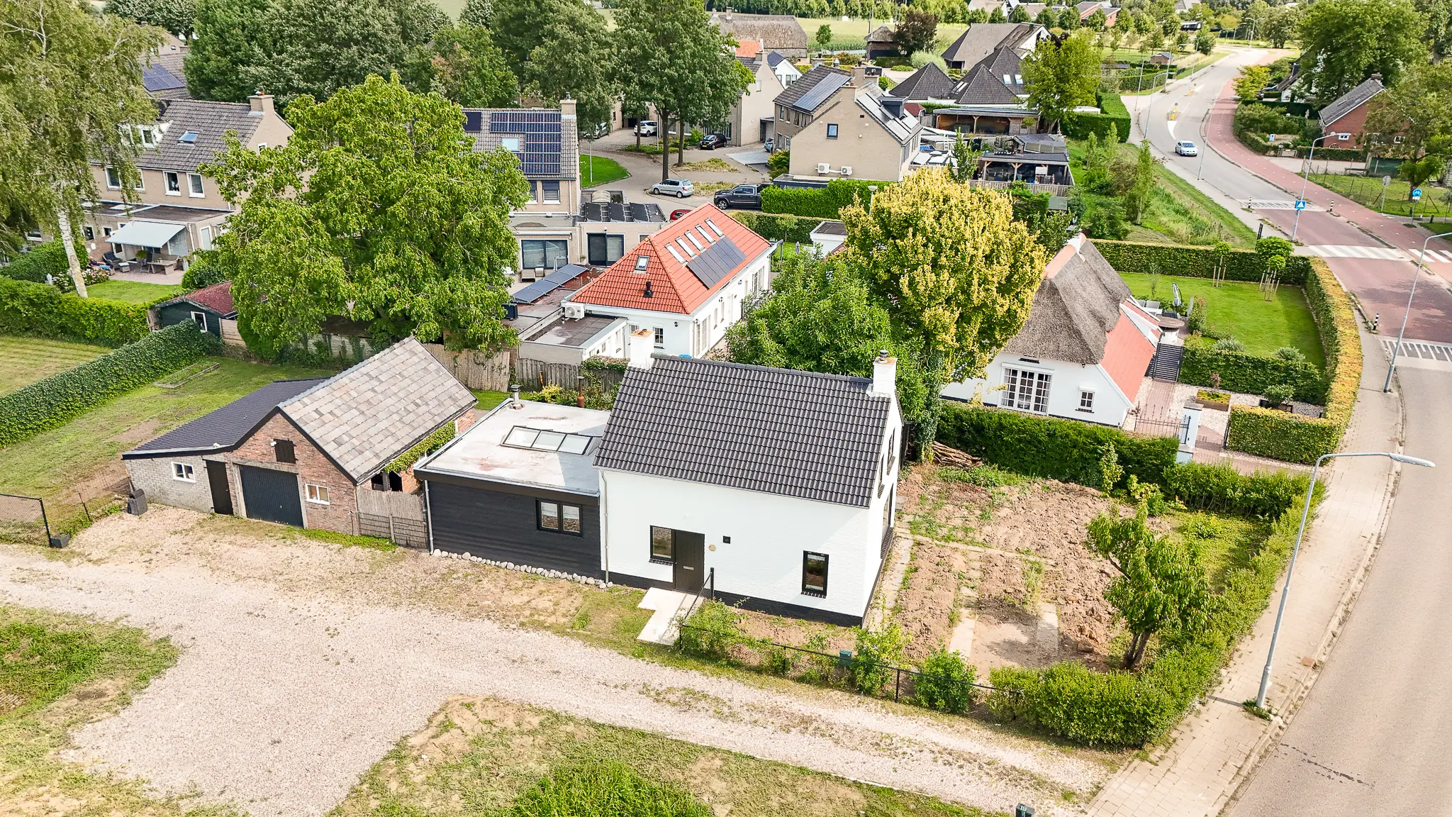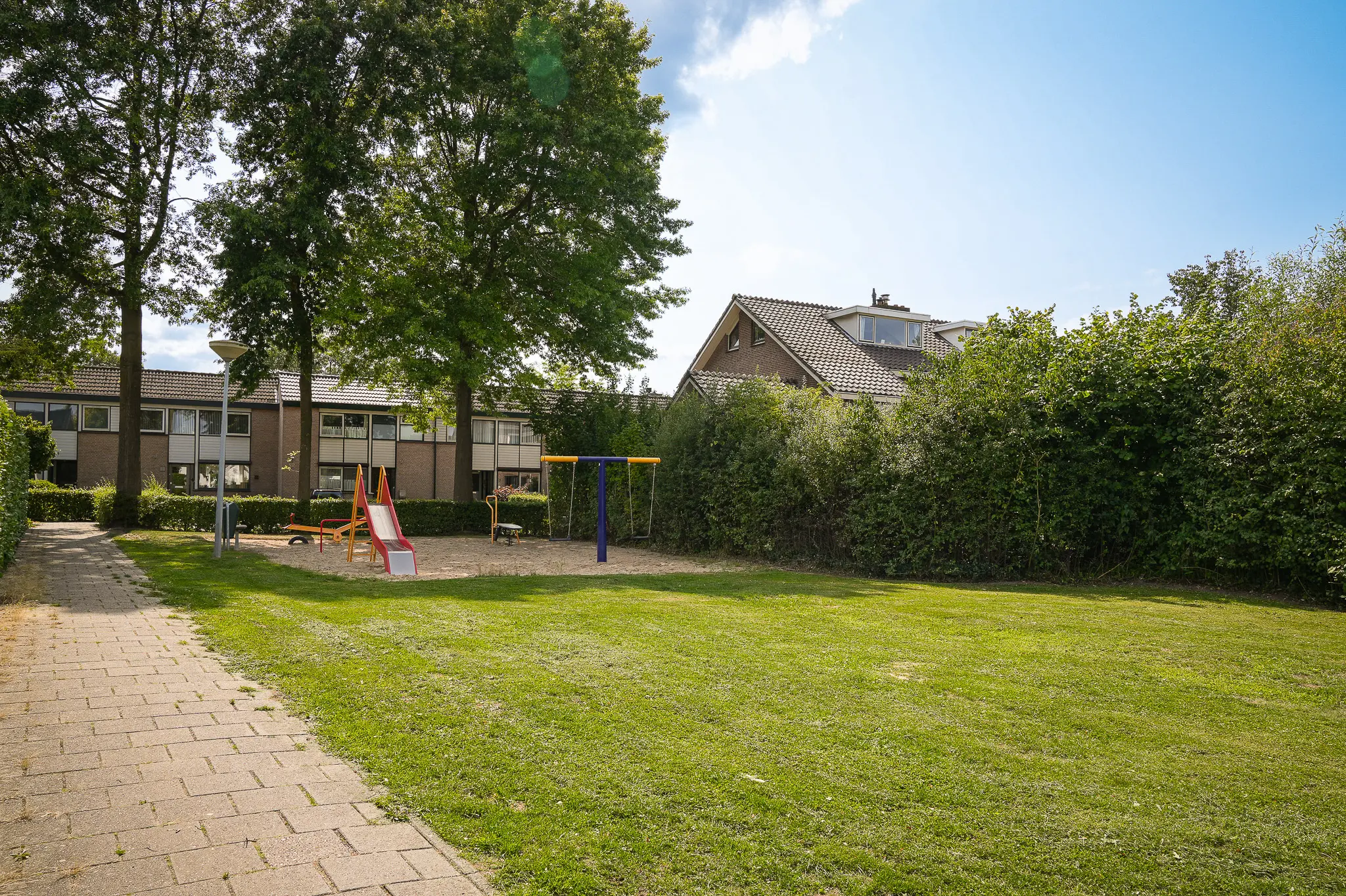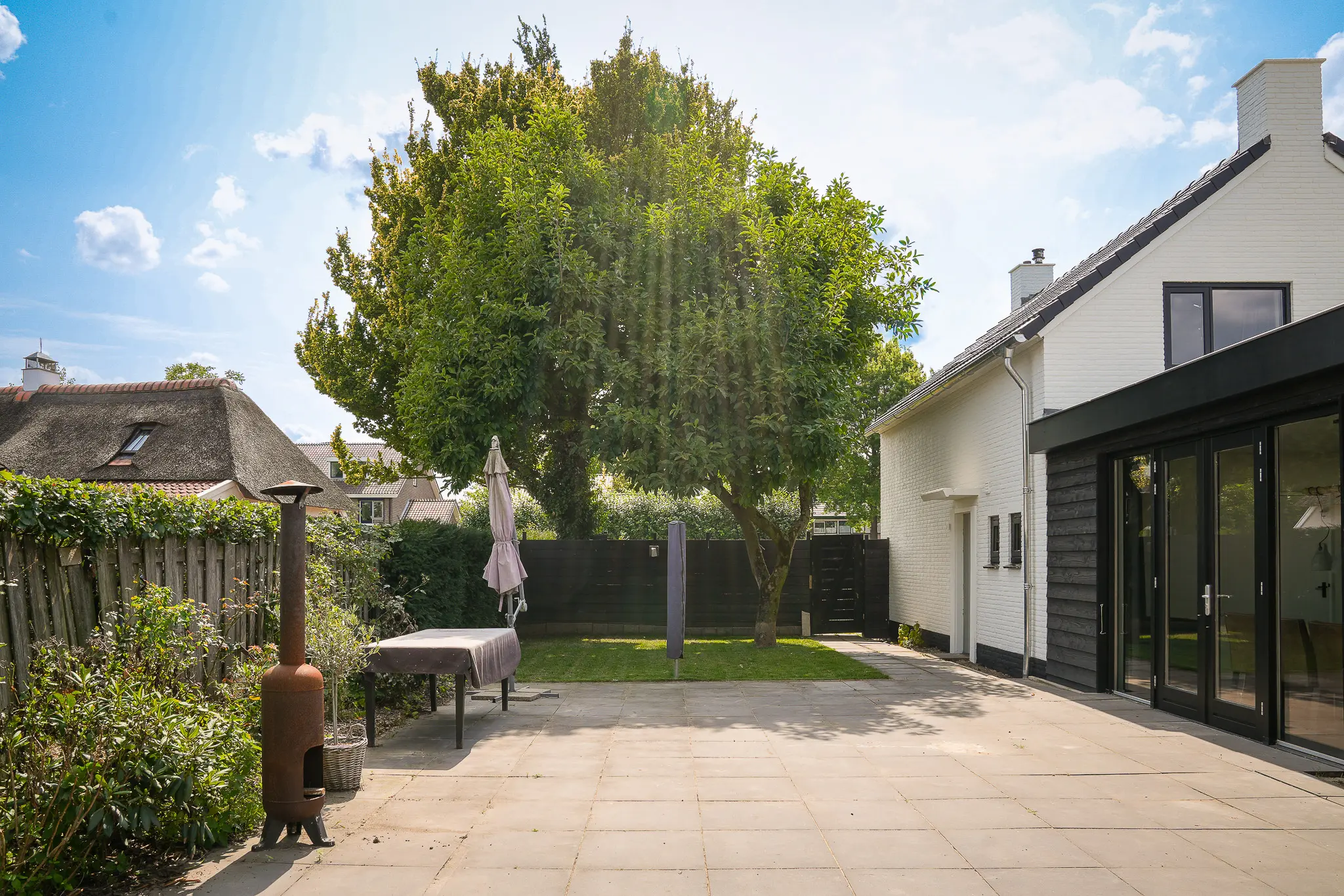 Buiten gaat de ruimtebeleving verder. Het perceel van bijna 1.000 m² is omzoomd door volwassen beplanting en biedt veel privacy. Meerdere terrassen nodigen uit tot buiten dineren, ontspannen in de zon of een boek lezen in de schaduw. Achterin staat de recent vernieuwde schuur, perfect voor opslag of een hobbyruimte. De brede oprit langs het huis biedt plek voor meerdere auto’s op eigen terrein.