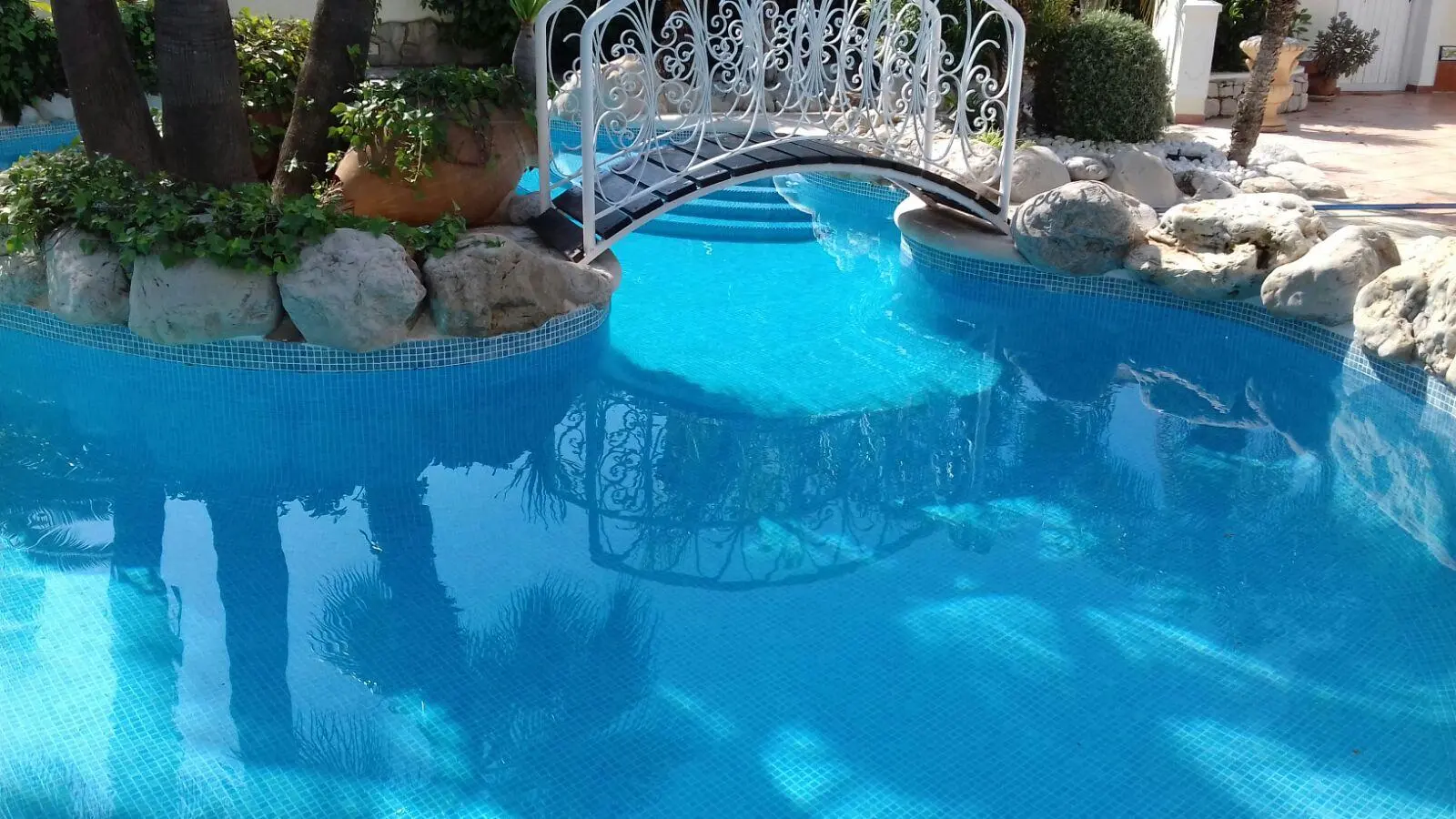 Bij aankomst wordt u verwelkomd door een elektrische poort die toegang geeft tot een ruime oprit met parkeergelegenheid voor twee auto’s. Direct valt het oog op het indrukwekkende buitenleven: een royaal zonneterras met een luxe buitenkeuken, comfortabele loungehoek en als absoluut pronkstuk een spectaculair zwembad met een eigen eiland omringd door palmbomen. Dit paradijselijke tafereel wordt ’s avonds prachtig verlicht, wat zorgt voor een magische sfeer die deze villa tot een waar juweel maakt.