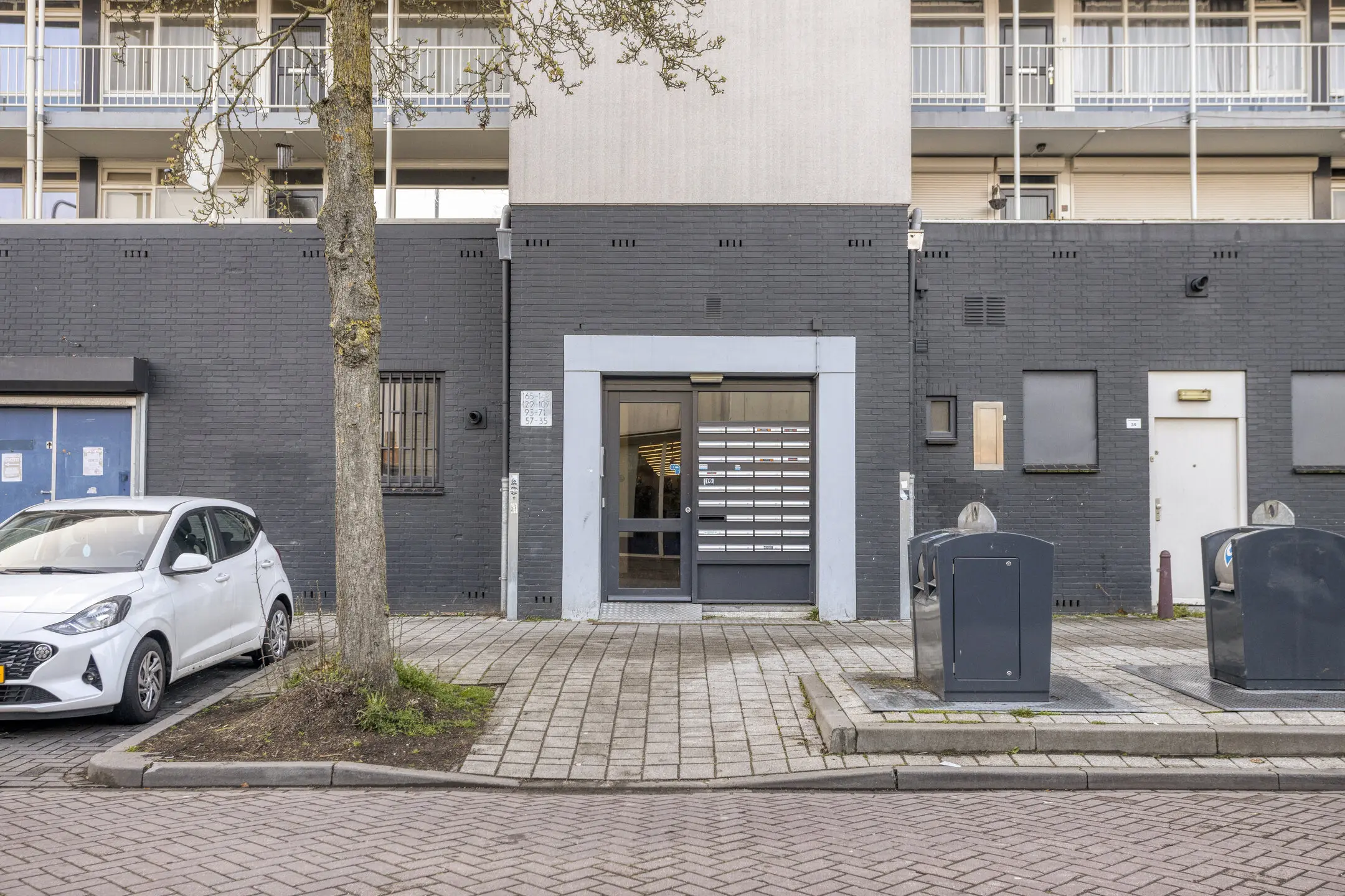 Via de centrale entree van het complex kom je binnen in de hal waar zich ook de brievenbussen en het bellentableau bevinden. Vanuit hier heb je toegang tot het trappenhuis dat leidt naar de verdieping waar het appartement gelegen is. In het gebouw bevindt zich tevens de inpandige berging die bij het appartement hoort. Deze berging biedt ruimte voor het stallen van bijvoorbeeld een fiets of het opbergen van extra spullen.