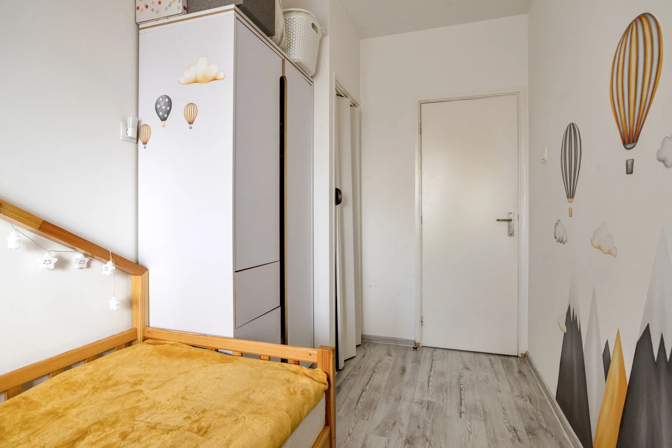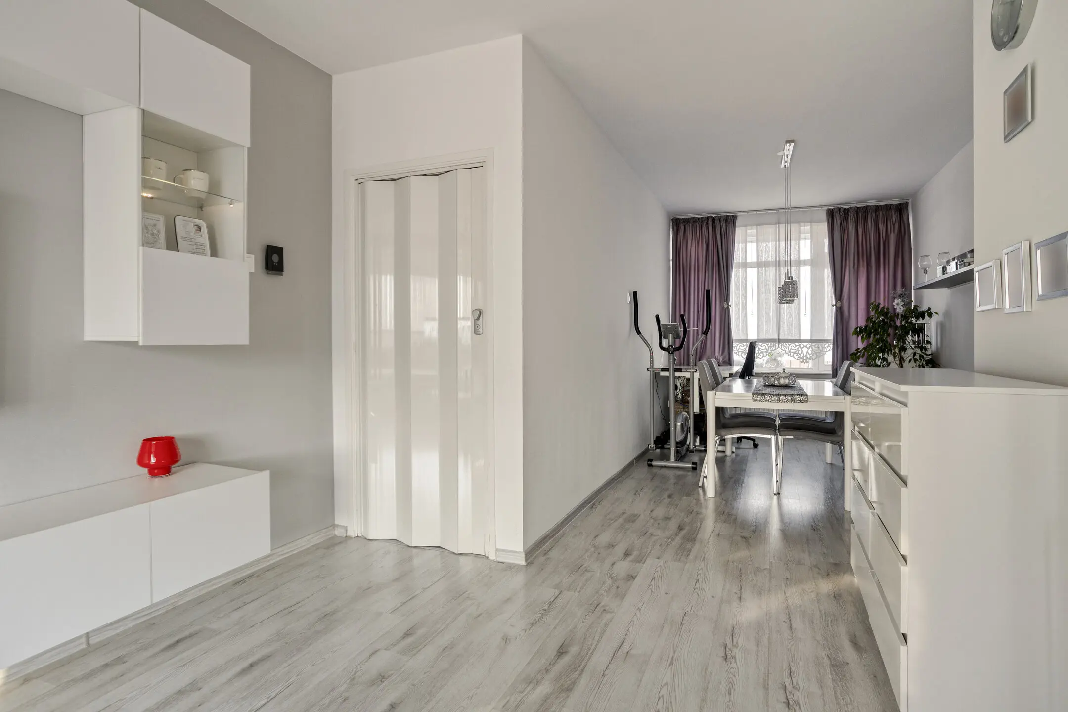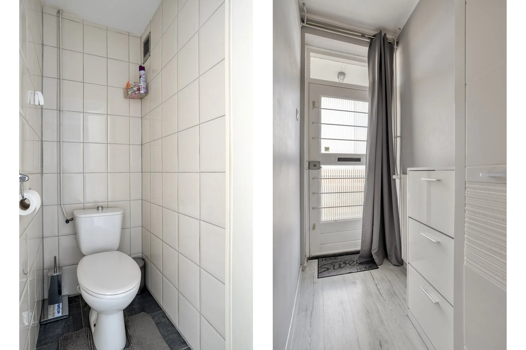 Bij binnenkomst in het appartement kom je in de gang. Vanuit deze gang heb je toegang tot vrijwel alle ruimtes van de woning: de woonkamer, de keuken, de twee slaapkamers, de badkamer en het separate toilet. In de gang bevinden zich daarnaast twee praktische inbouwkasten, wat zorgt voor extra opbergruimte (incl. meterkast).