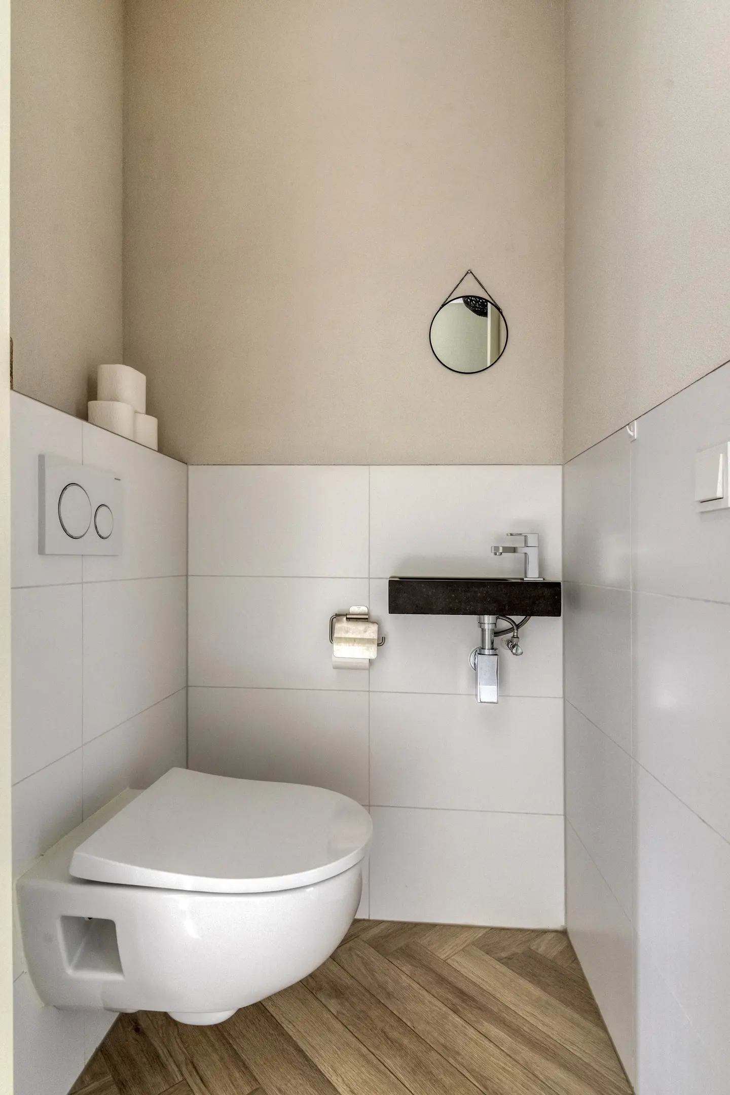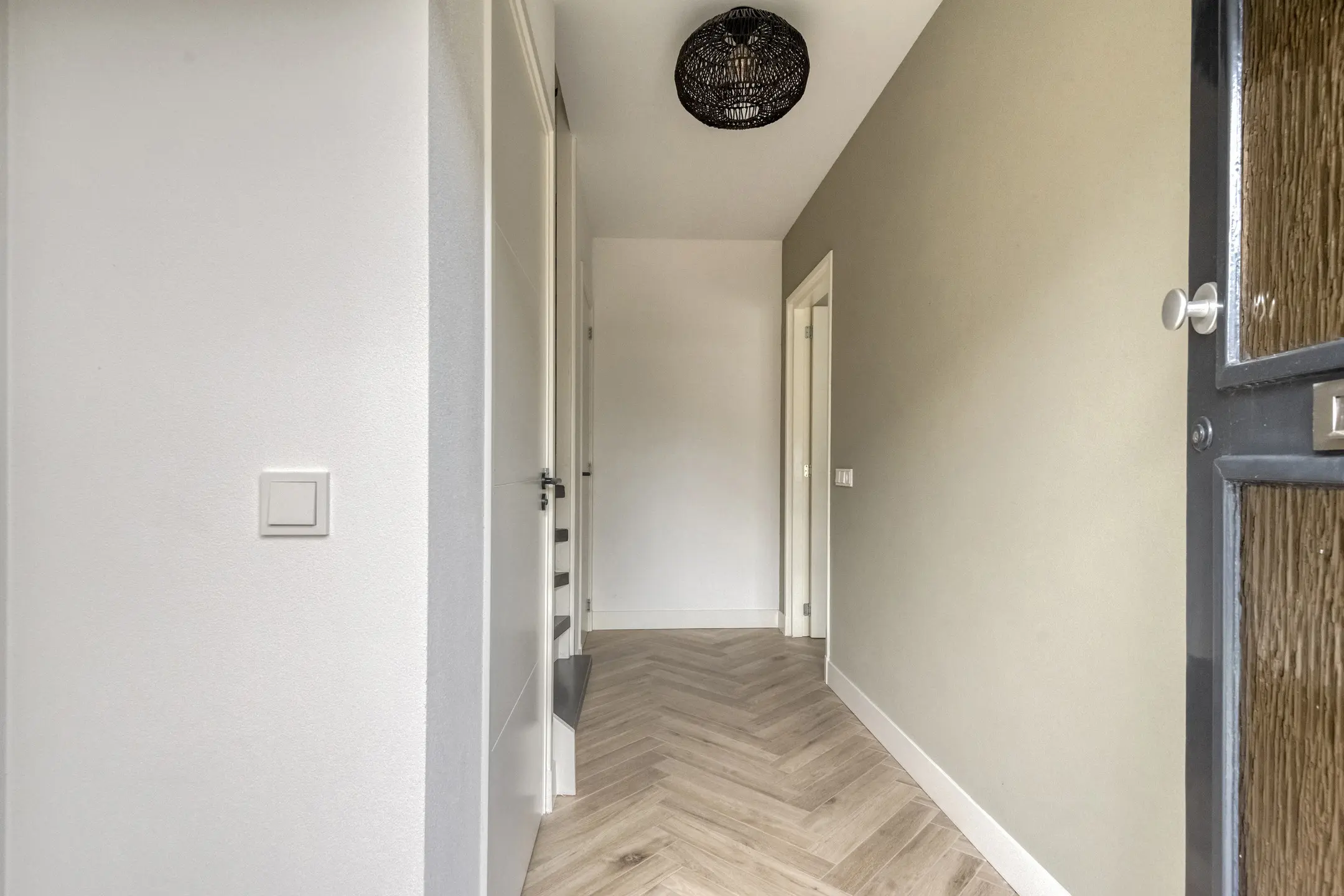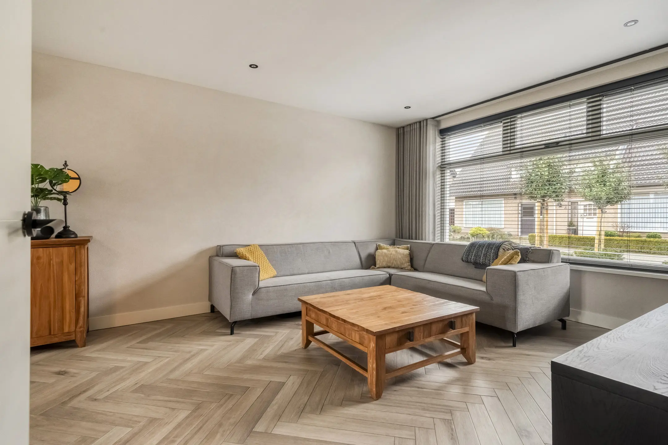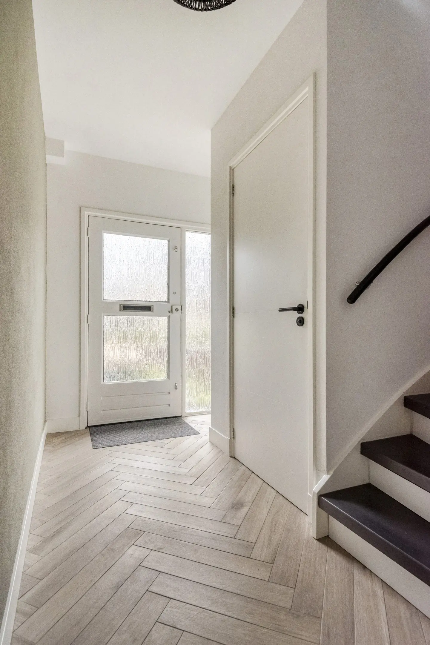 Bij binnenkomst via de hoofdentree aan de voorzijde kom je in de hal met toiletruimte. Vanuit hier loop je door naar de leefruimte: een lichte woonkamer met grote raampartijen en een prettige, open verbinding met het eetgedeelte en de keuken.