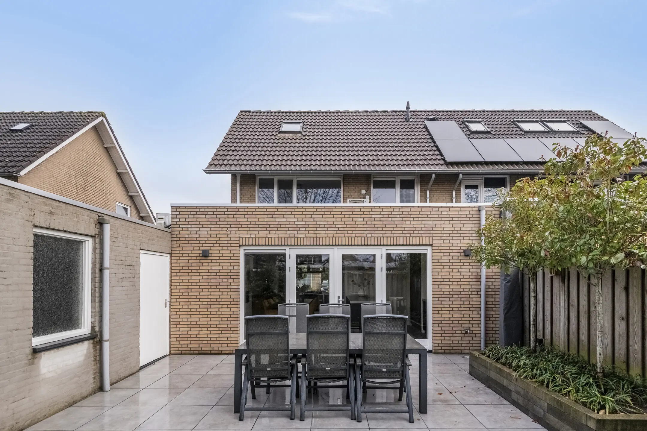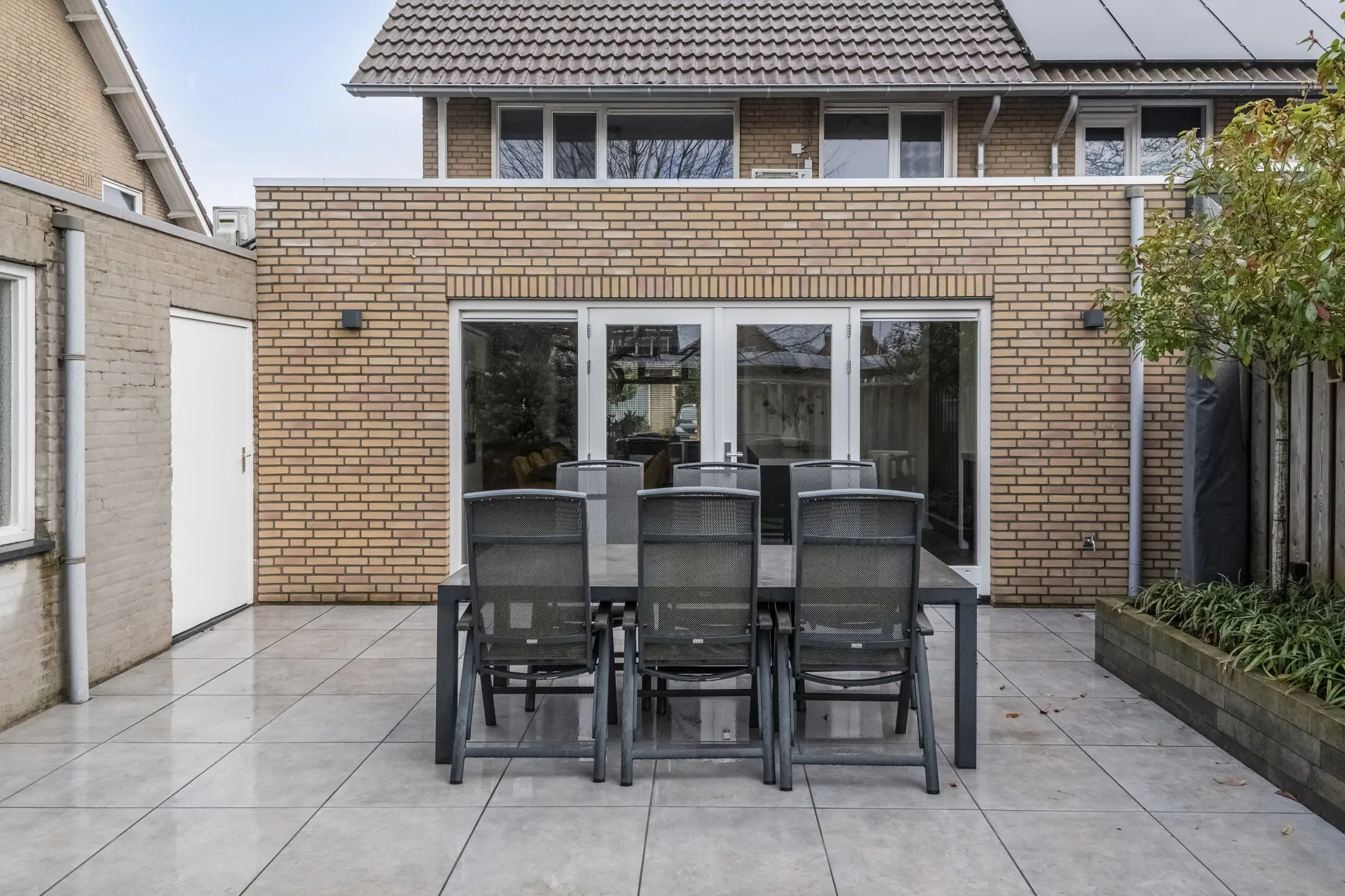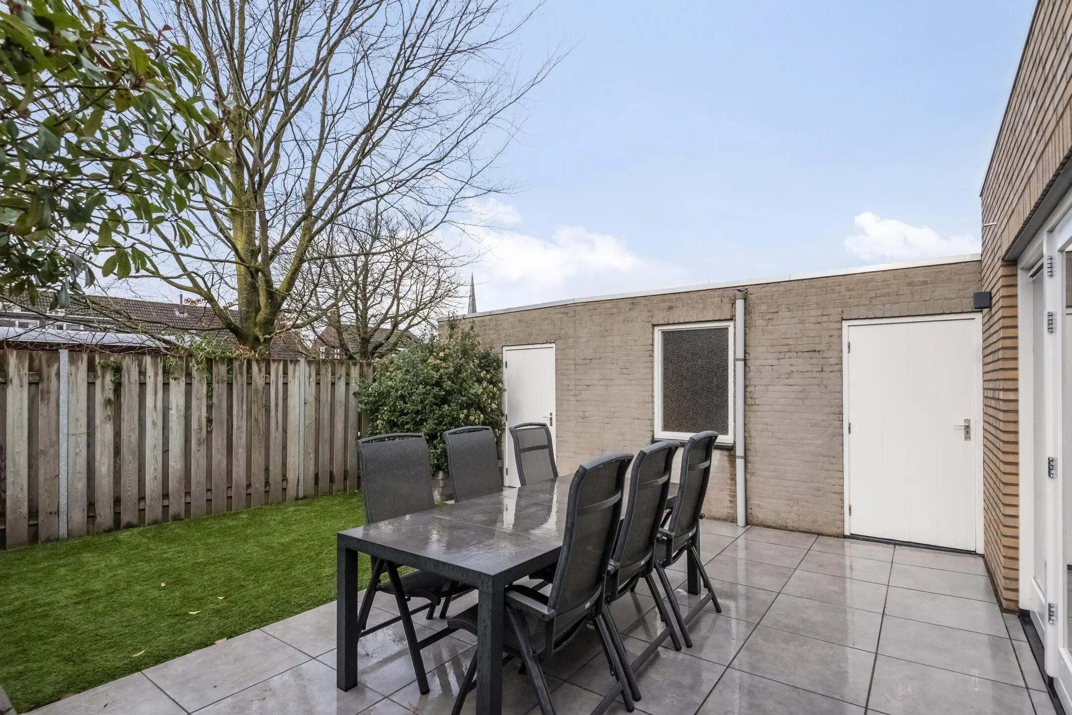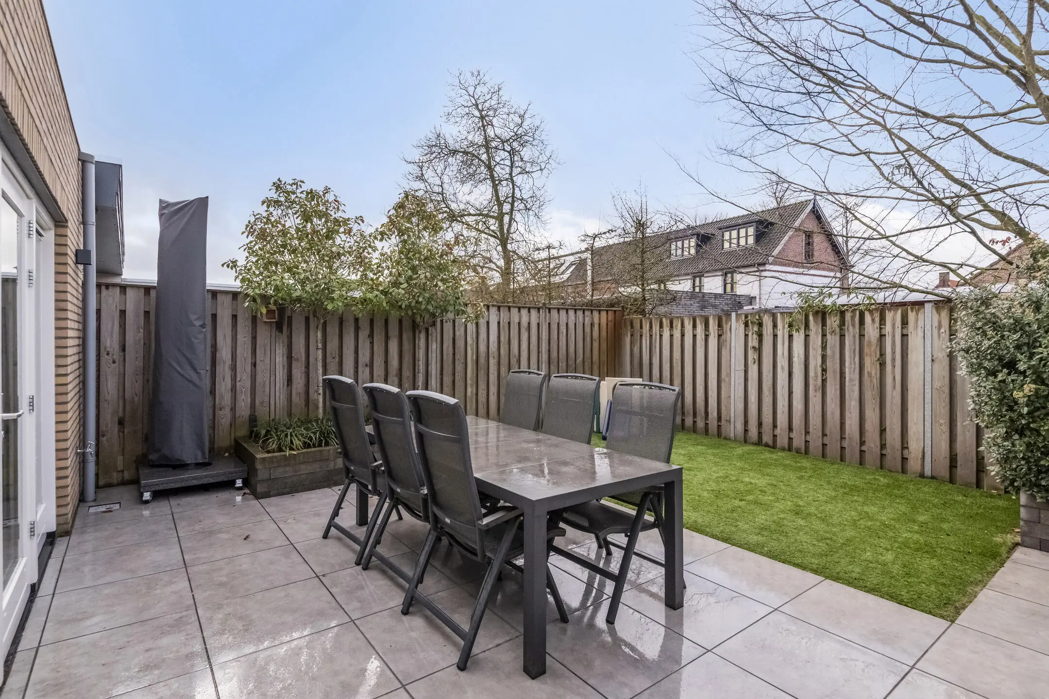 De achtertuin is onderhoudsvriendelijk aangelegd en biedt ruimte voor een fijne lounge- of eethoek. Dankzij de verbinding met de leefruimte is dit een natuurlijke verlenging van het wonen binnen. Aan de voorzijde beschikt de woning over een verzorgde voortuin en parkeergelegenheid op eigen terrein.