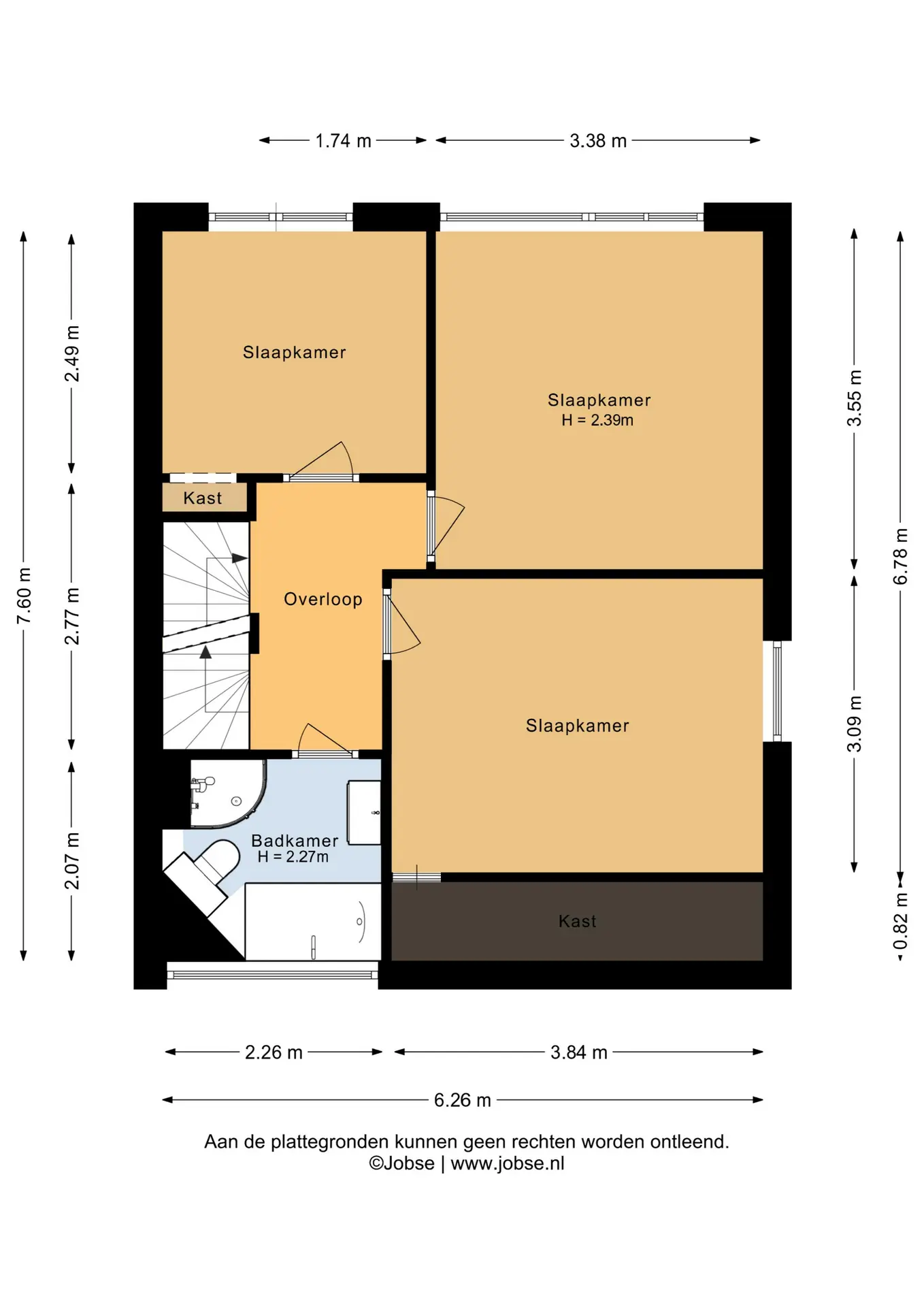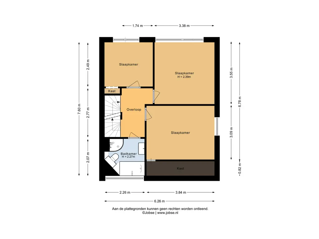 Eerste verdieping – drie slaapkamers en complete badkamer