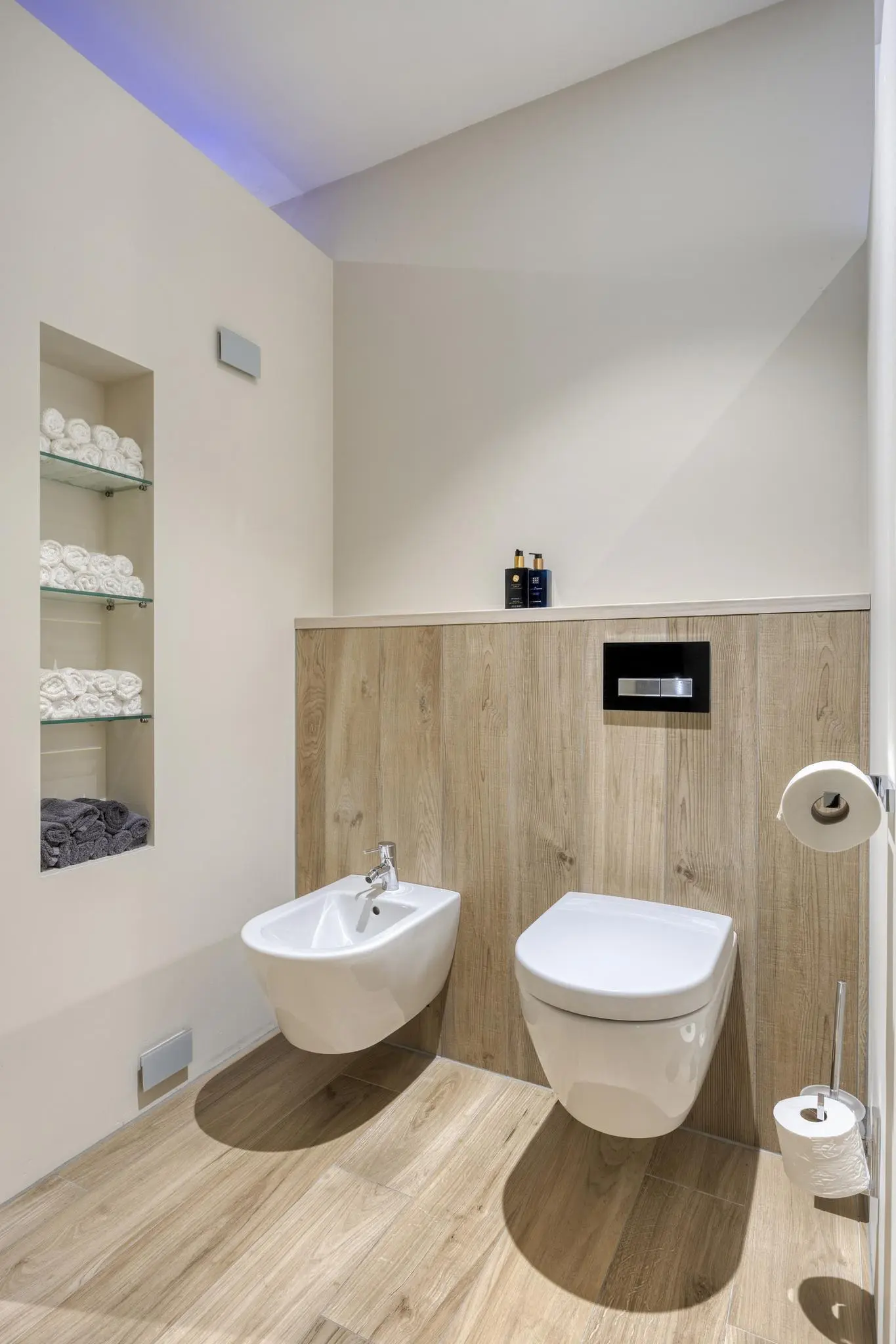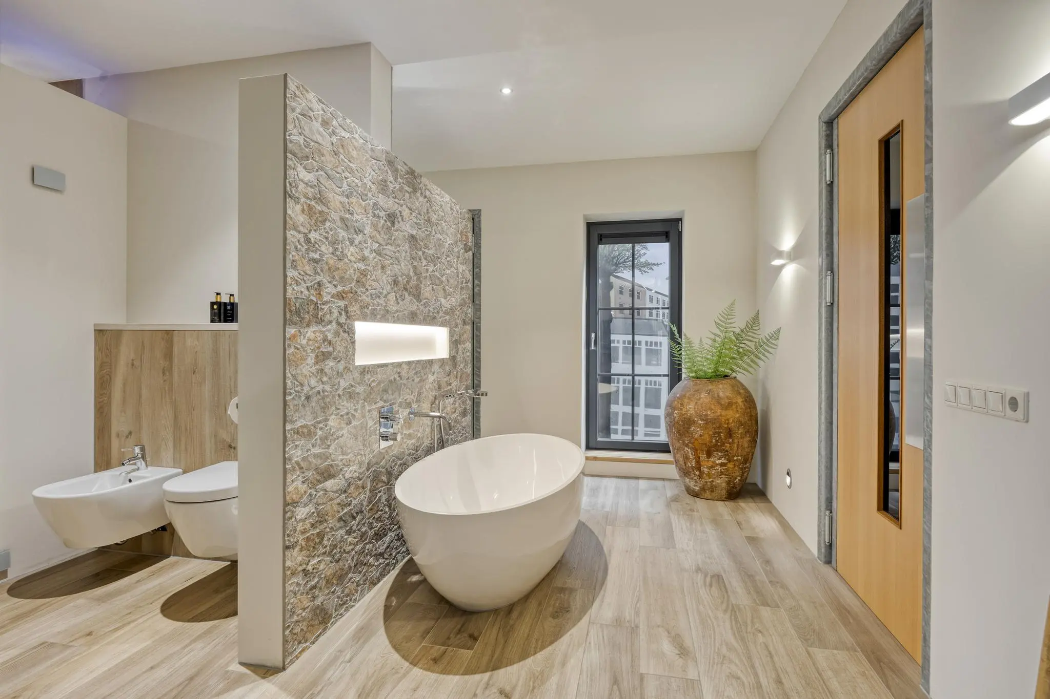 • XXL badkamer: Vrijstaand bad, inloopdouche met Sun shower, bidet en toilet – een echte wellness ervaring.