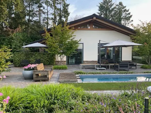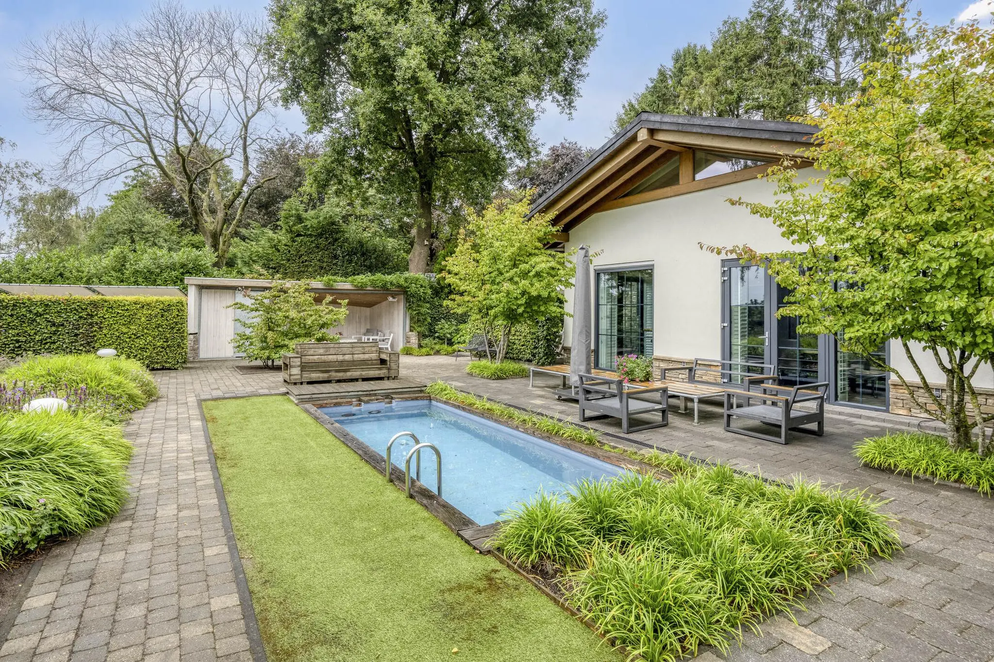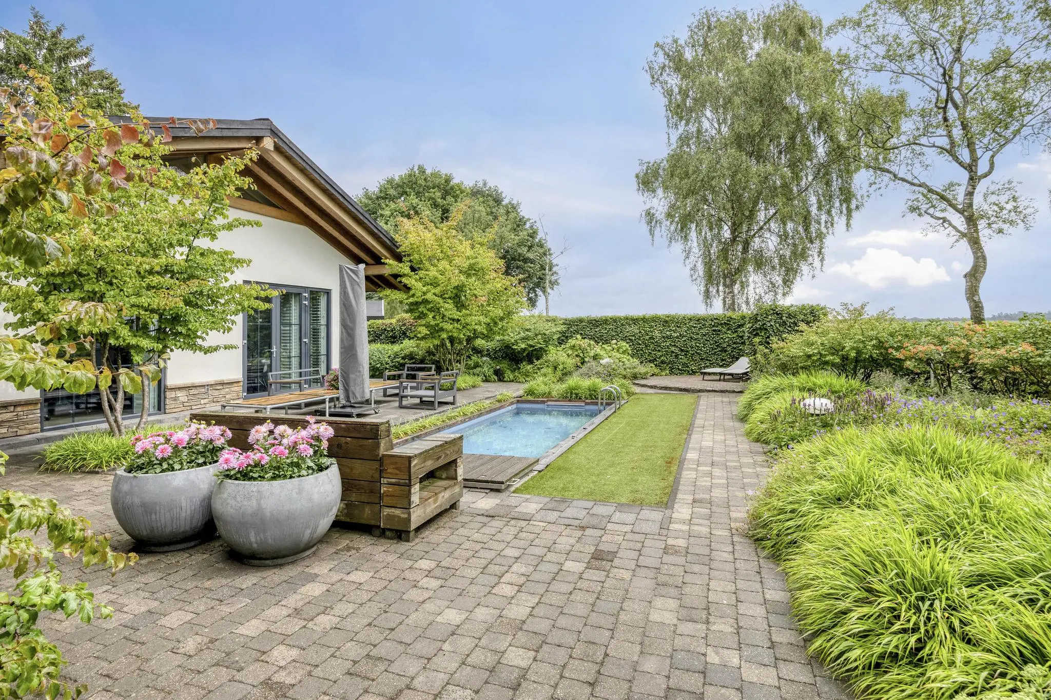 • Ruim perceel met zwemvijver: Luxe buitenleven met een prachtig ontworpen overkapping en berging.