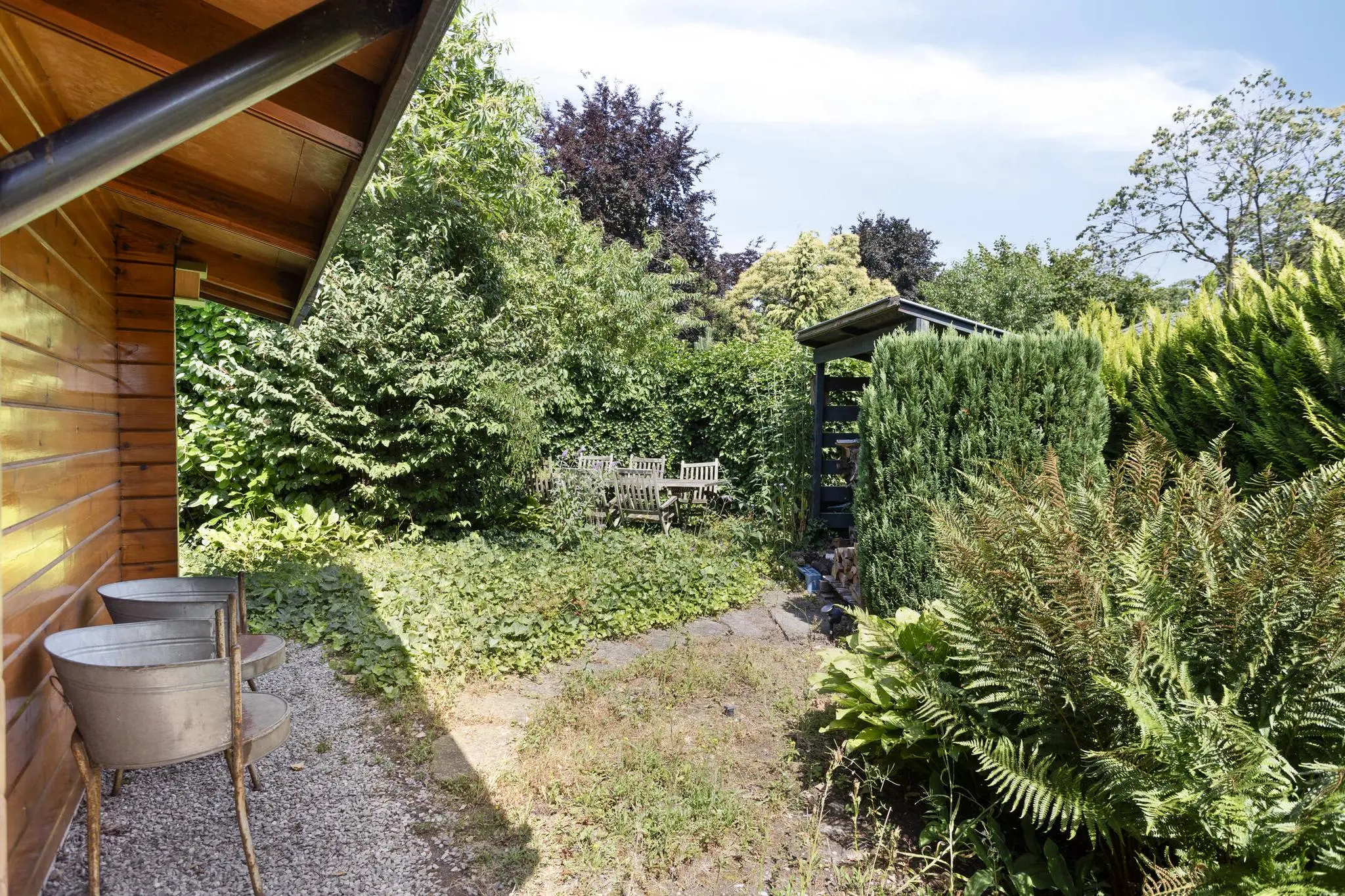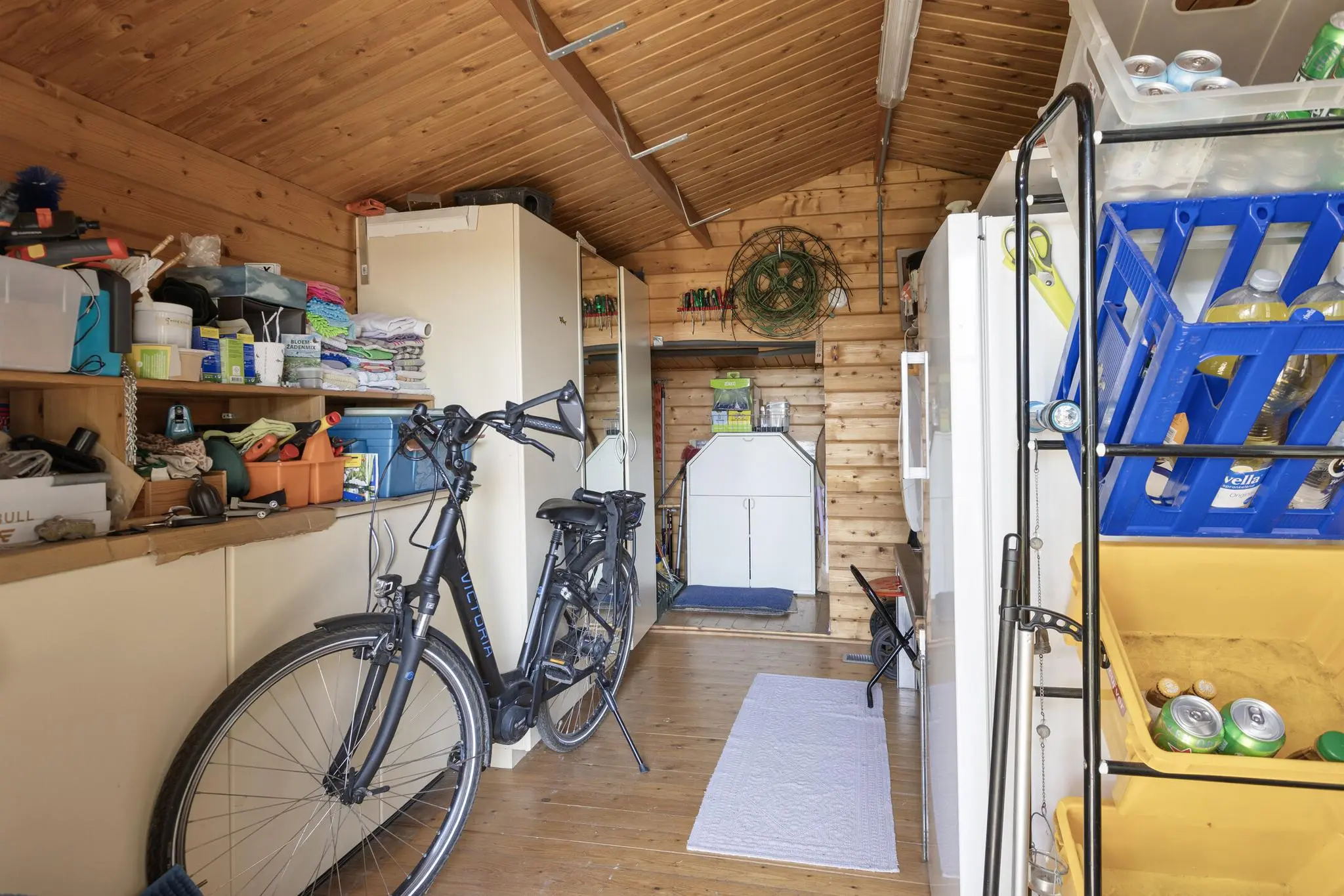 • Handige houten schuur – ideaal voor fietsen, gereedschap of hobby’s