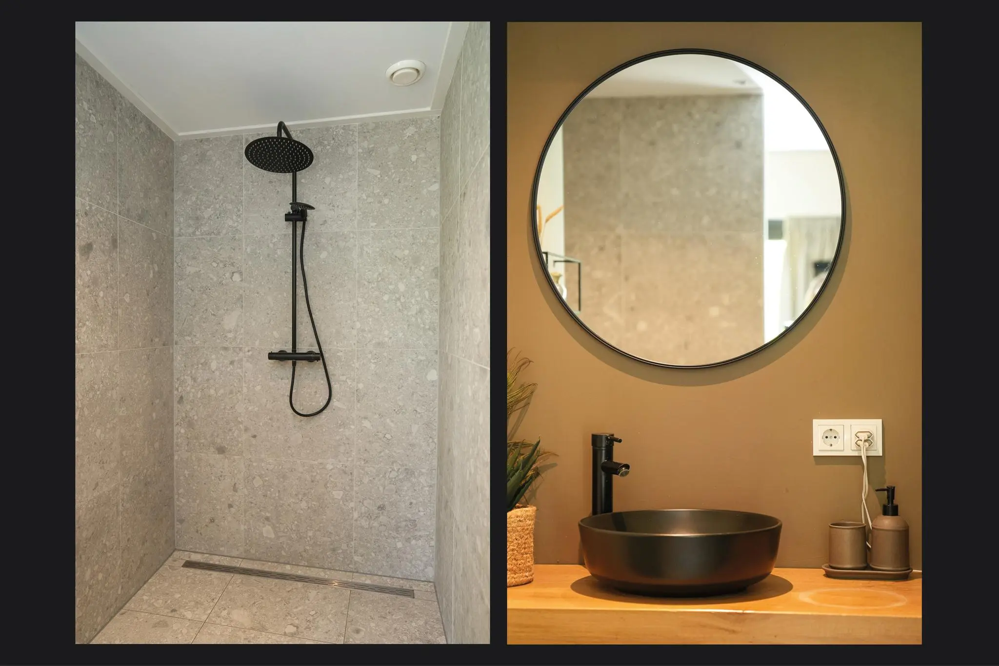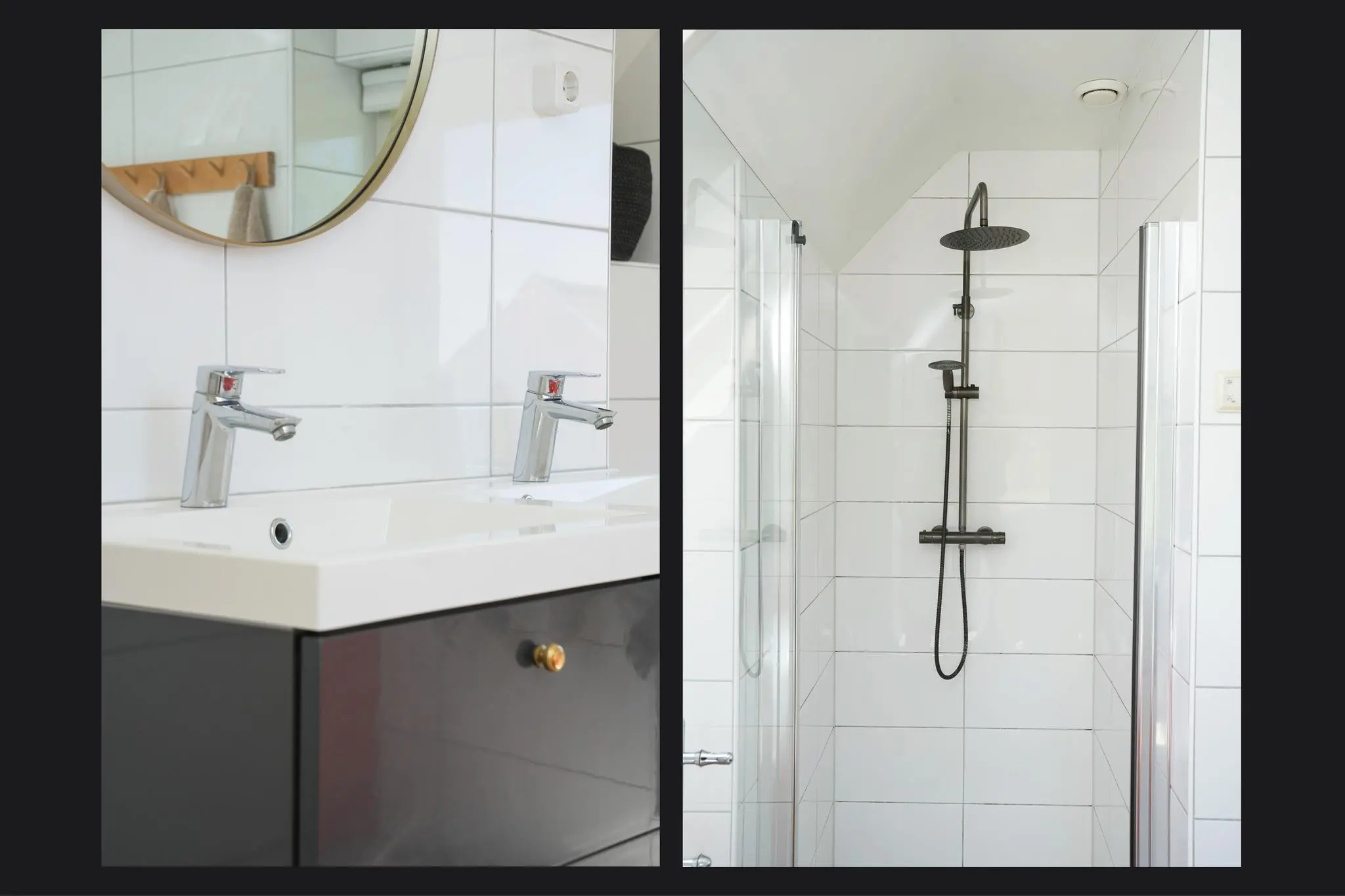 De vier slaapkamers en twee badkamers in de hoofdwoning bieden volop ruimte voor het hele gezin. De luxe badkamers zijn voorzien van een duobad, ruime regendouche en dubbele wastafel – perfect om even helemaal tot rust te komen.