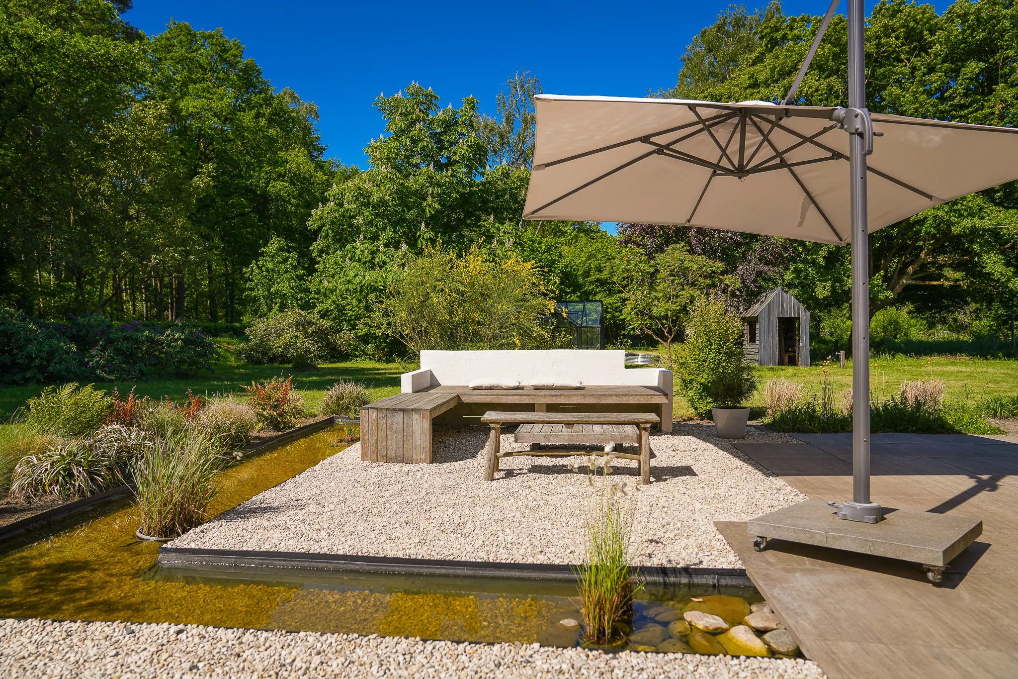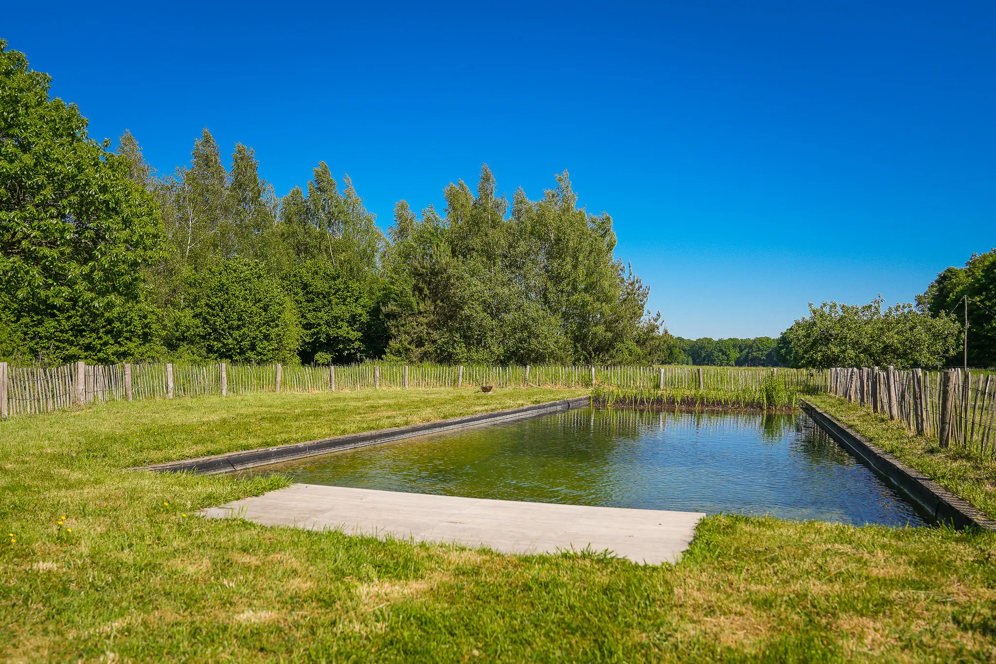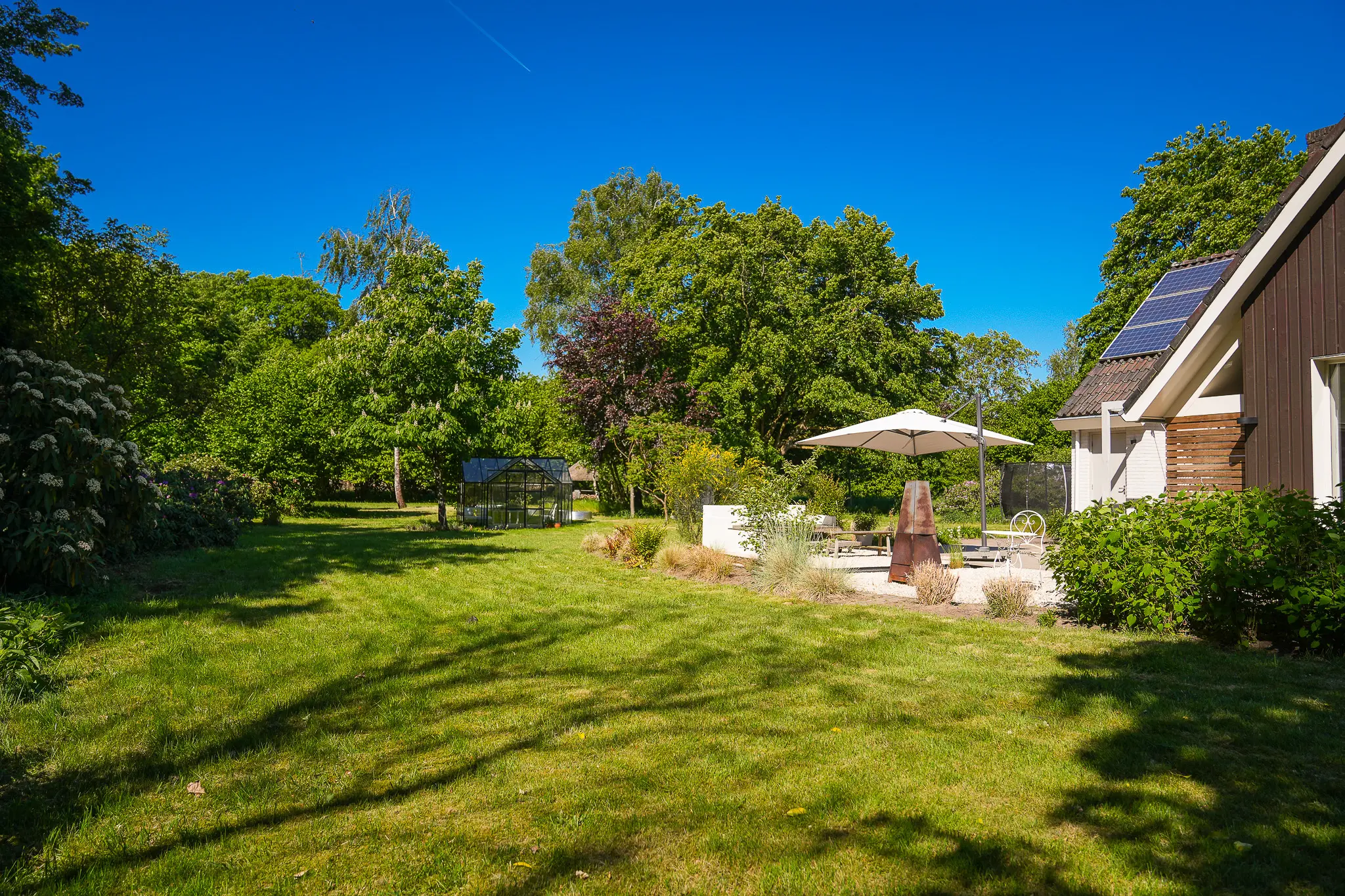 De tuin is een waar landgoed: een natuurlijke zwemvijver met zelfreinigend systeem, volwassen bomen, een kas voor je eigen moestuin en volop ruimte voor kinderen om te spelen. Of je nu wilt ontspannen op de veranda, een duik neemt in het zwembad, of samenkomt met vrienden en familie op het terras – hier beleef je het buitenleven in optima forma.