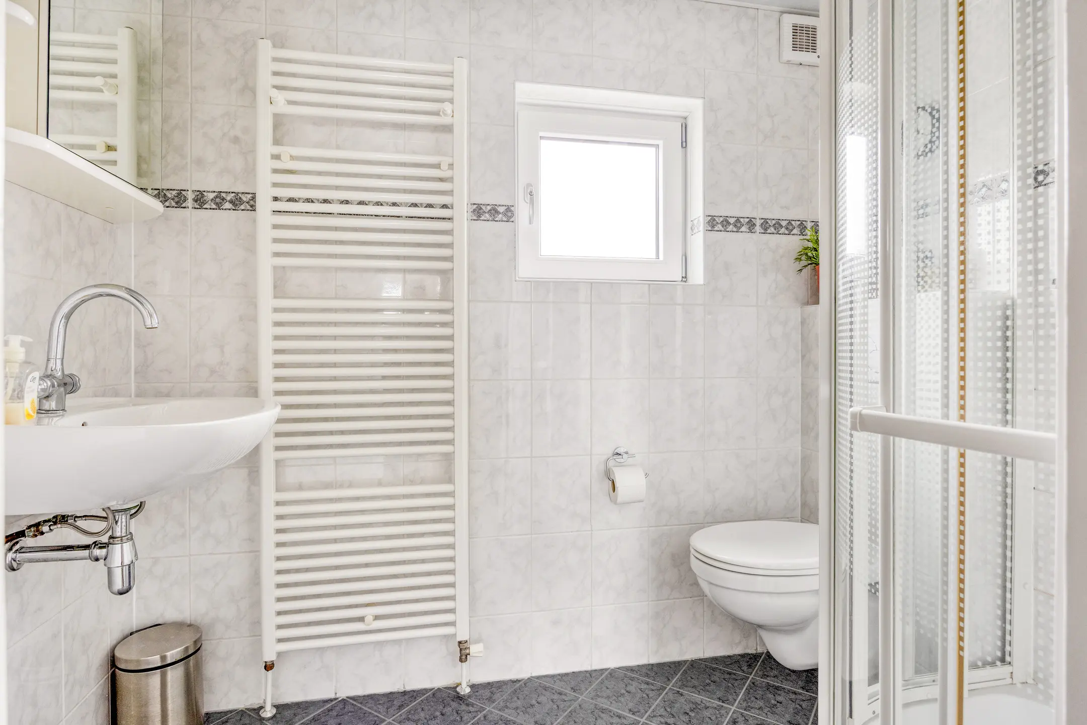 • Badkamer met toilet en douche op de eerste verdieping – praktisch in het dagelijks gebruik voor gezin en logees.