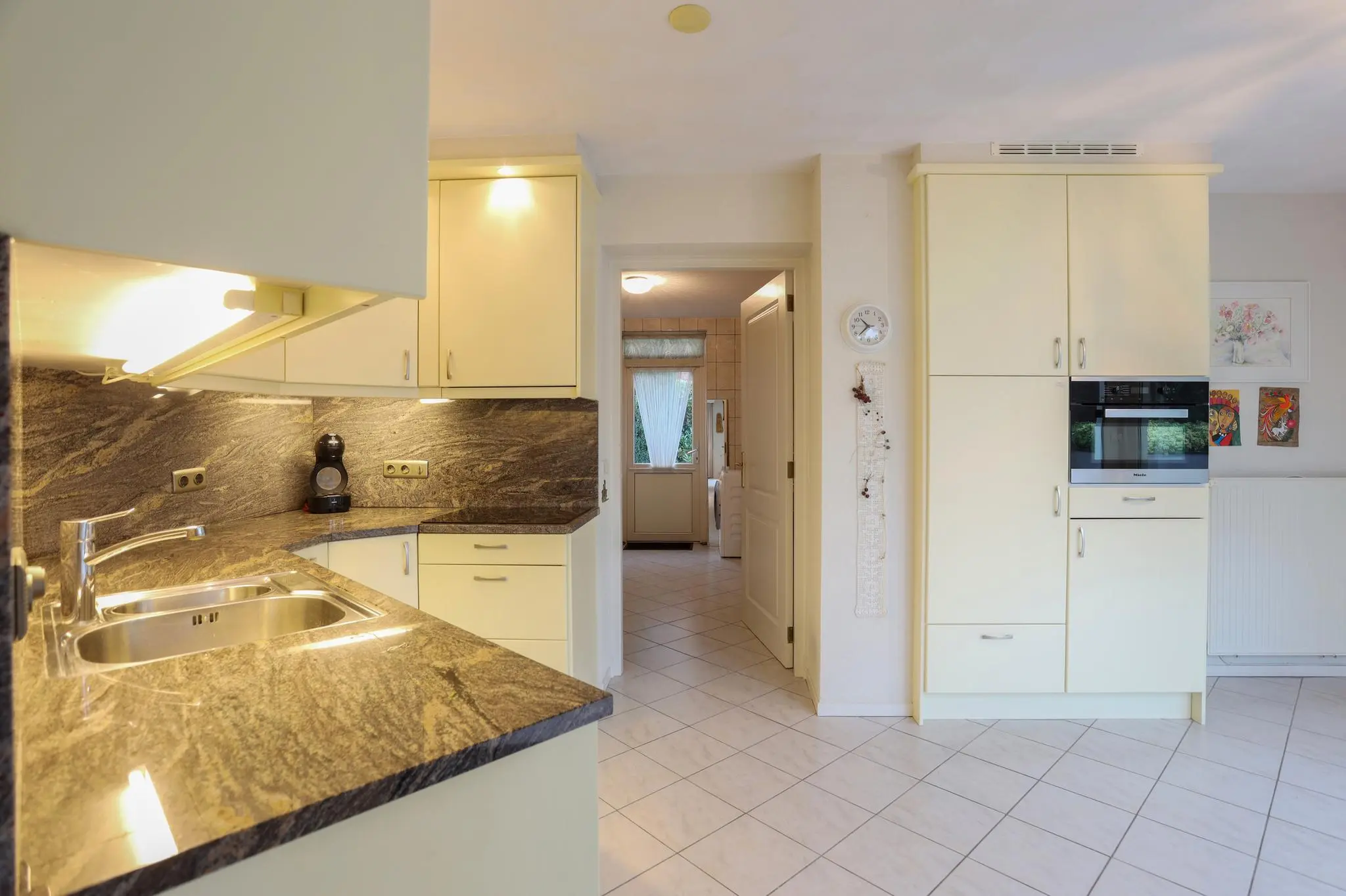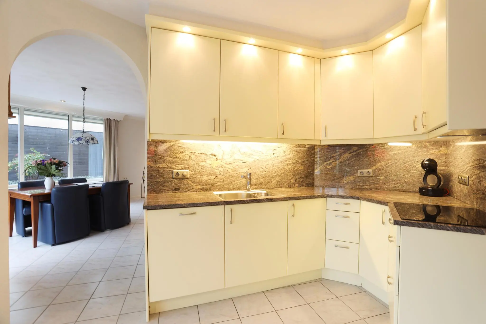 De open keuken is niet alleen een lust voor het oog, maar ook een paradijs voor kookliefhebbers. Met hoogwaardige apparatuur en een strak design is het de perfecte plek om culinaire meesterwerken te creëren.