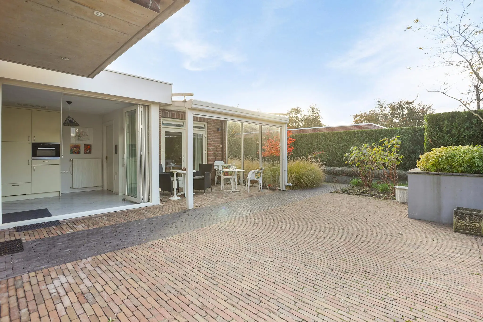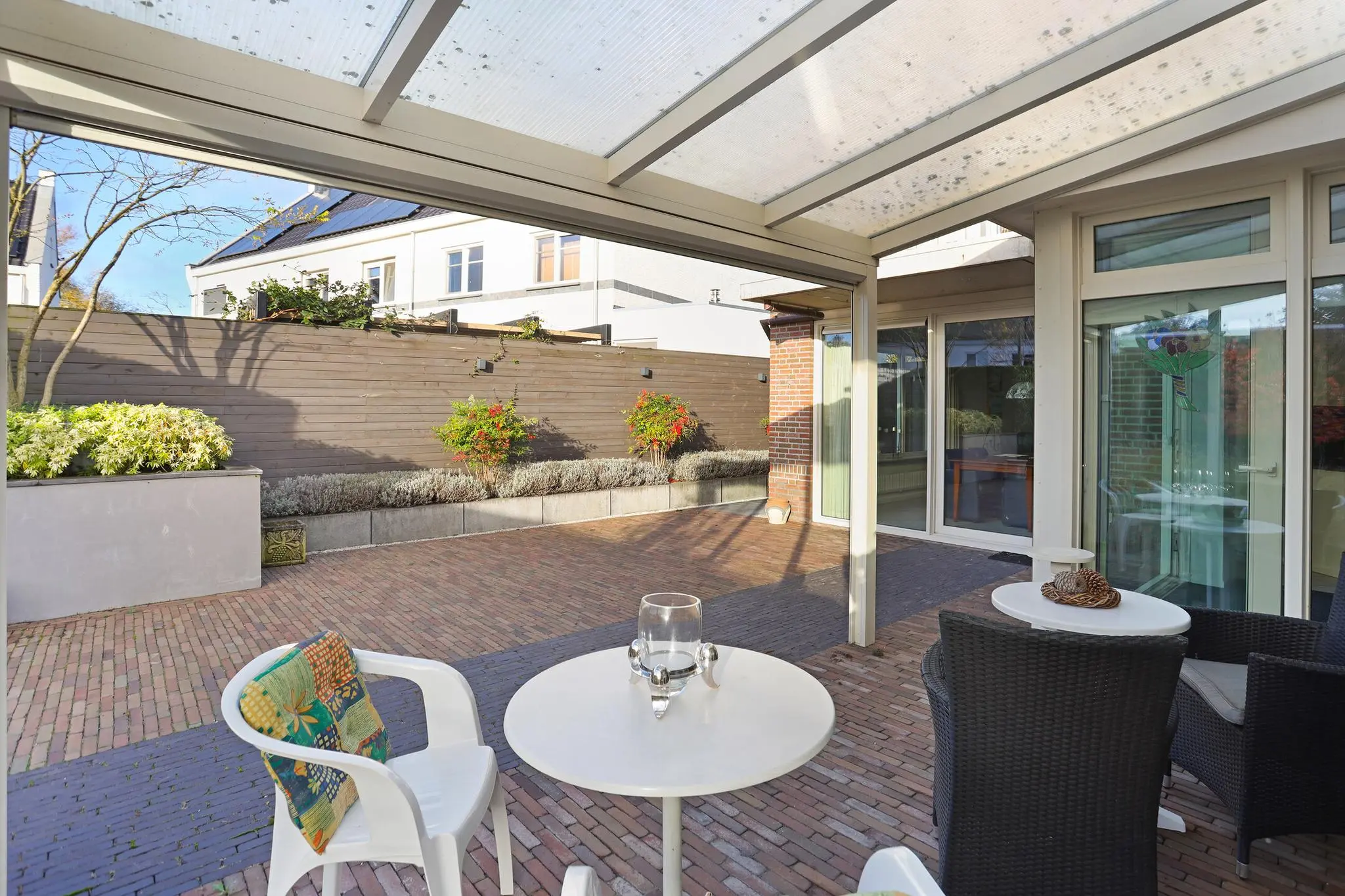 Geniet van de groene oase rondom het huis. De tuin biedt privacy en is voorzien van een sfeervolle overkapping waar je heerlijk buiten kunt zitten, of het nu zomer of winter is.