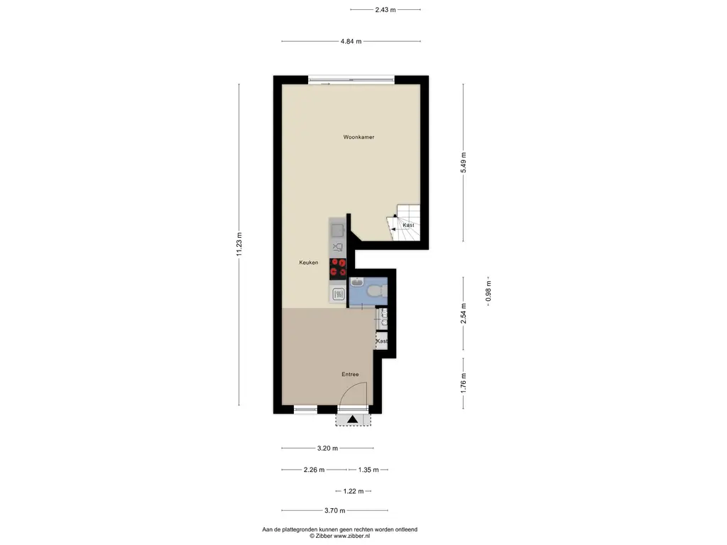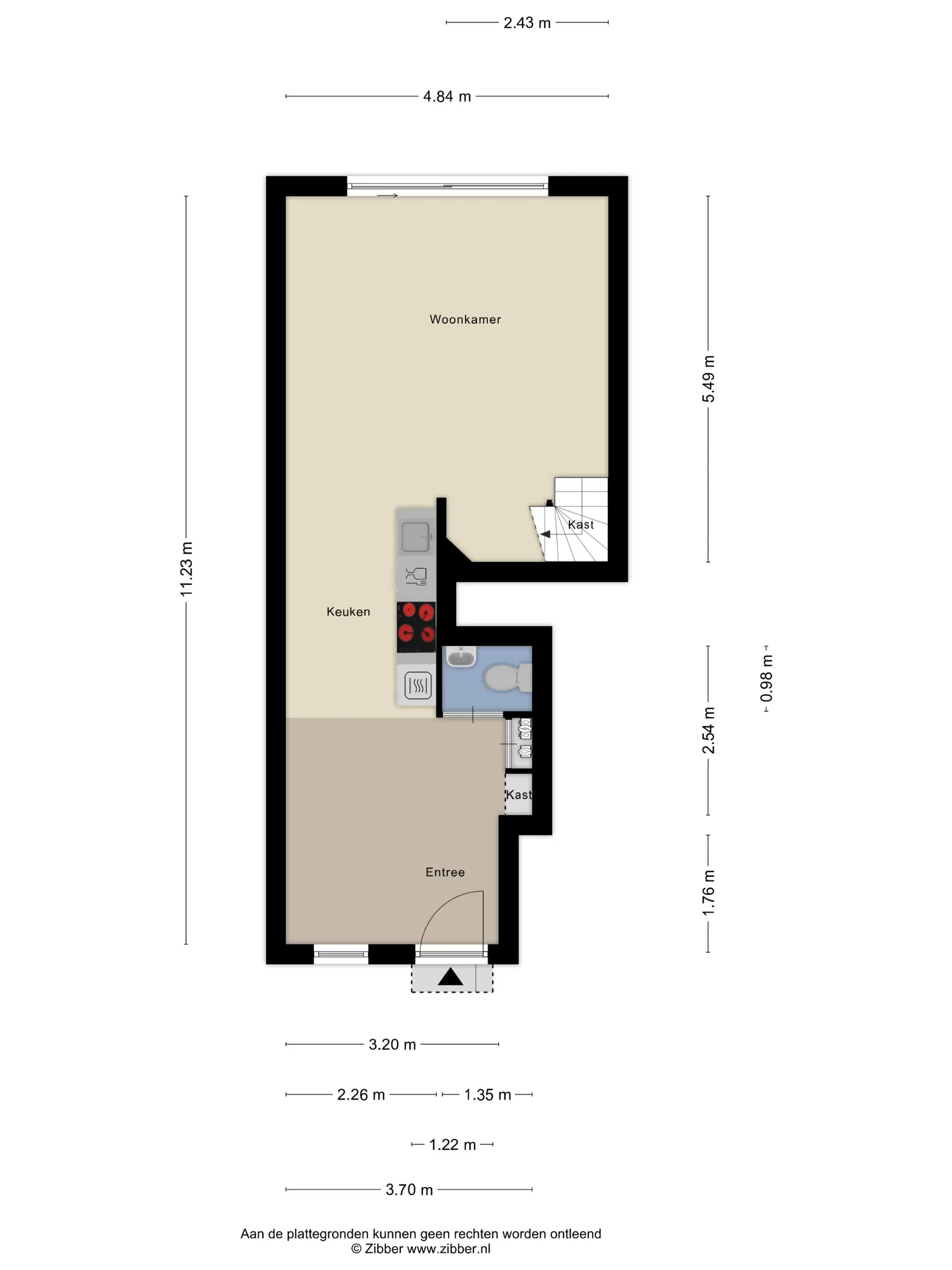 De entree bevindt zich aan de zijkant van de woning. Je komt binnen in de eetkamer met een moderne open keuken, voorzien van complete inbouwapparatuur: koel-vriescombinatie, inductiekookplaat, afzuigkap, vaatwasser en combimagnetron. De lichte woonkamer heeft een grote schuifpui en een extra zijraam, waardoor er veel daglicht binnenvalt.