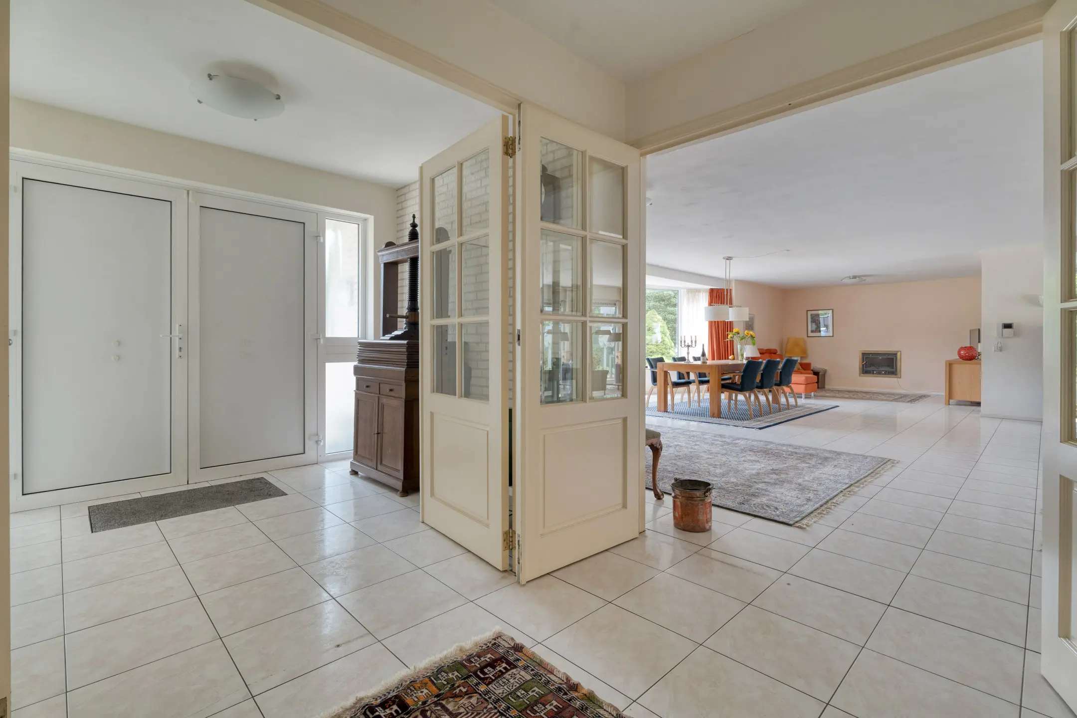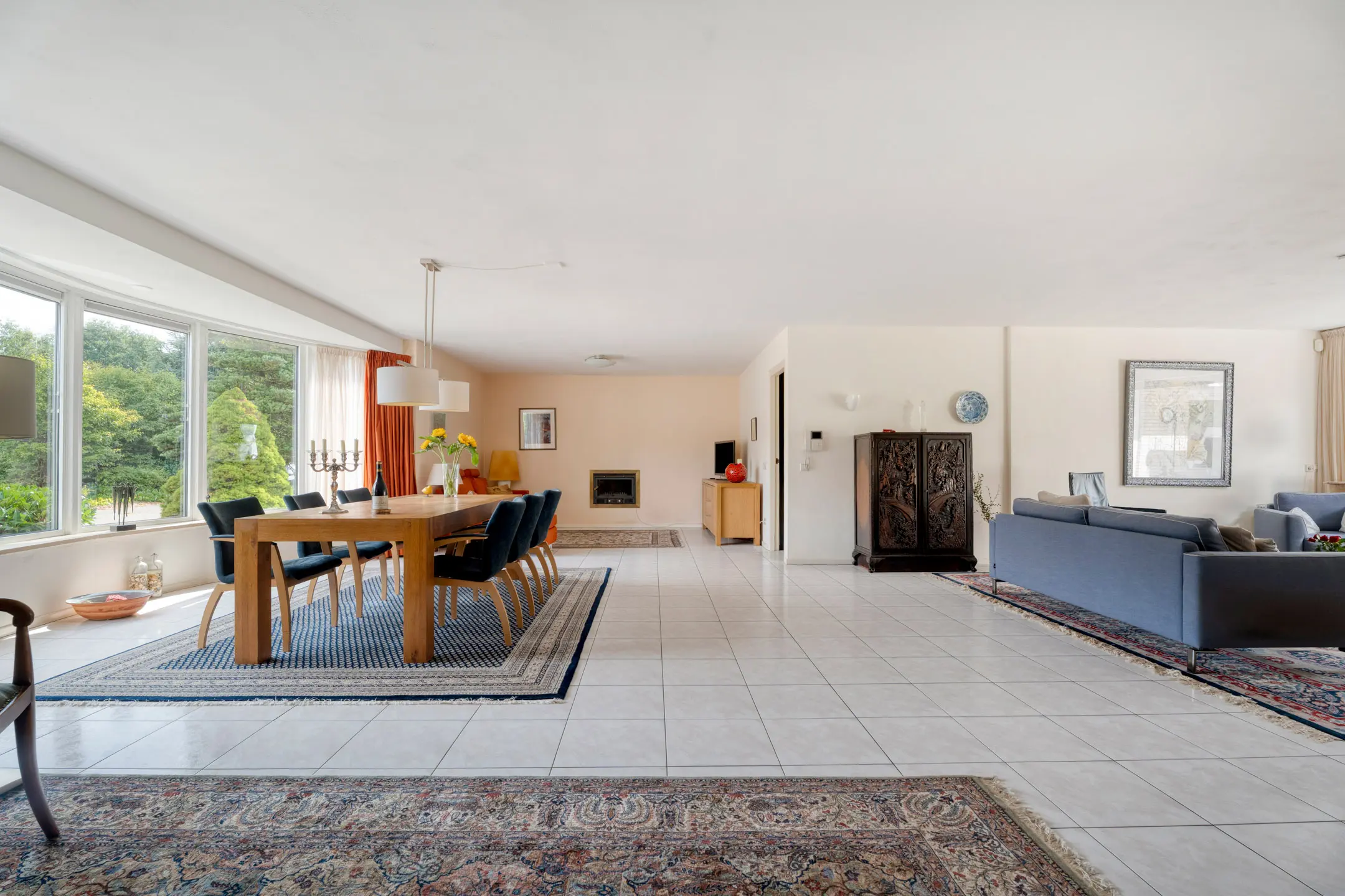 De woonkamer is werkelijk een blikvanger. Dankzij de erker aan de voorzijde van de woning is er nog meer lichtinval, wat zorgt voor een warme en lichte sfeer. De woonkamer is royaal en biedt verschillende mogelijkheden voor het creëren van diverse zithoeken. Door de schuifpui heeft u een directe verbinding met de tuin, wat het buitenleven naadloos met het interieur verbindt. In de woonkamer vindt u niet alleen een ingebouwde haard, maar ook een palletkachel voor extra sfeer en warmte. Het uitzicht op het groen rondom de woning maakt deze ruimte bijzonder aangenaam.