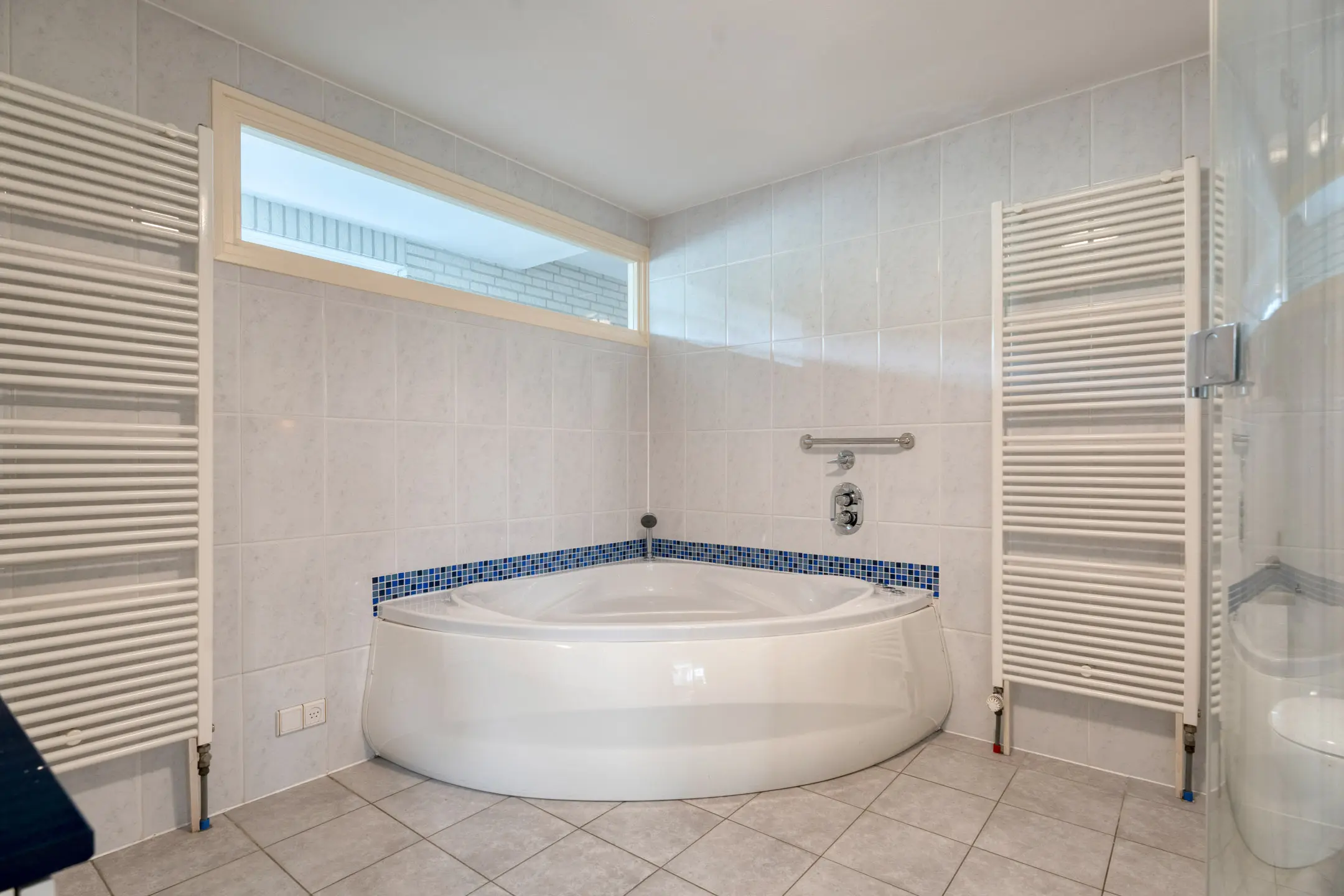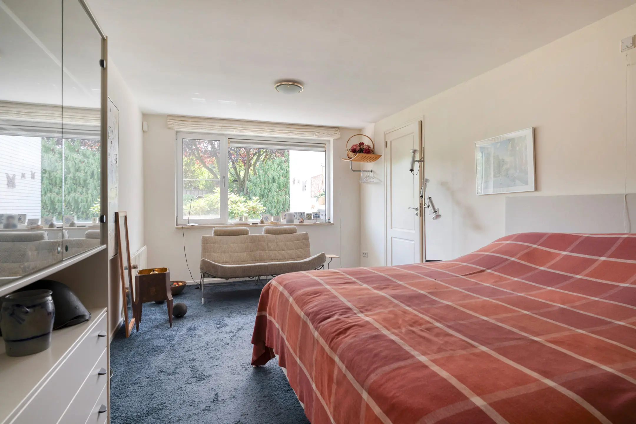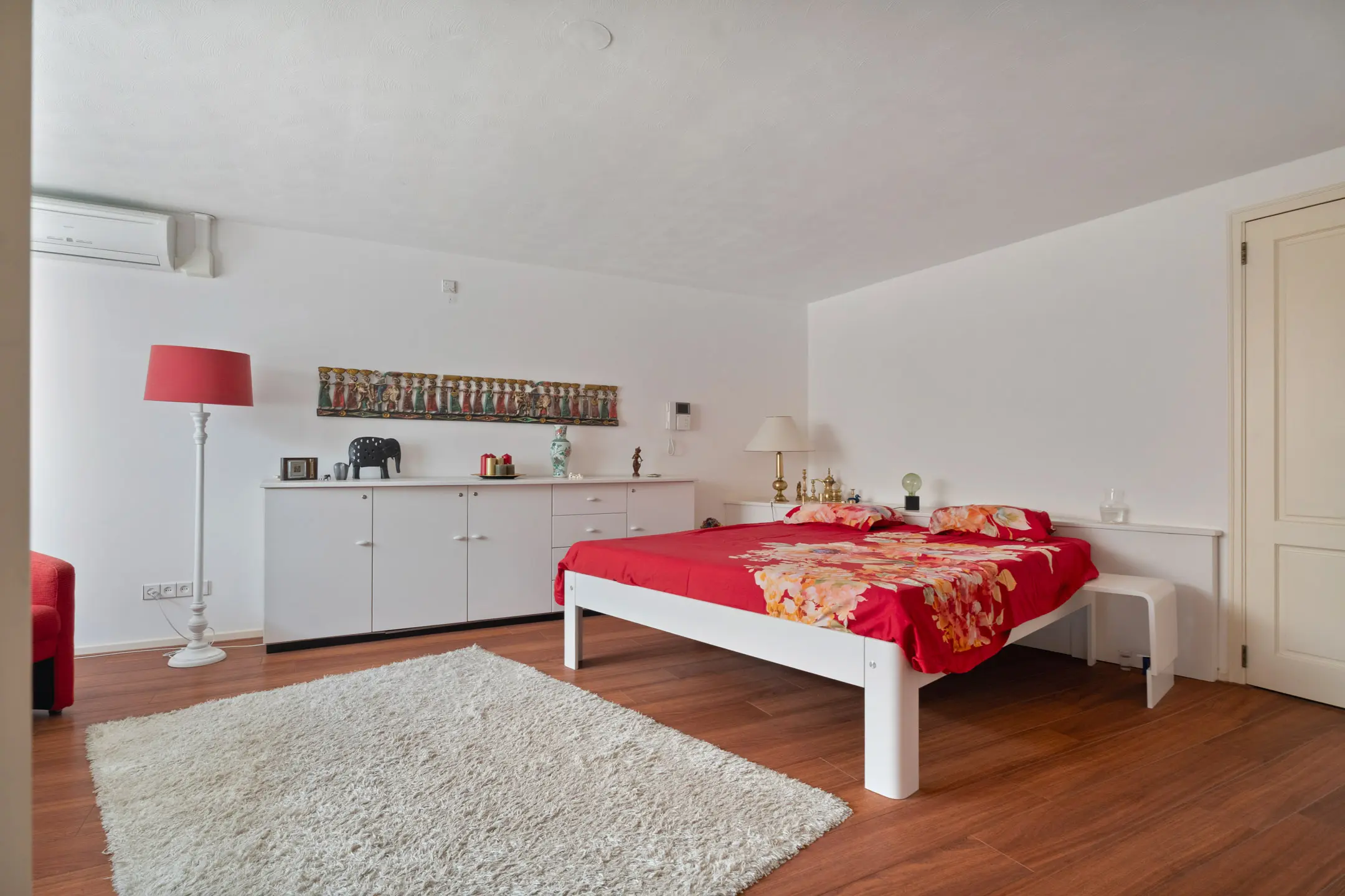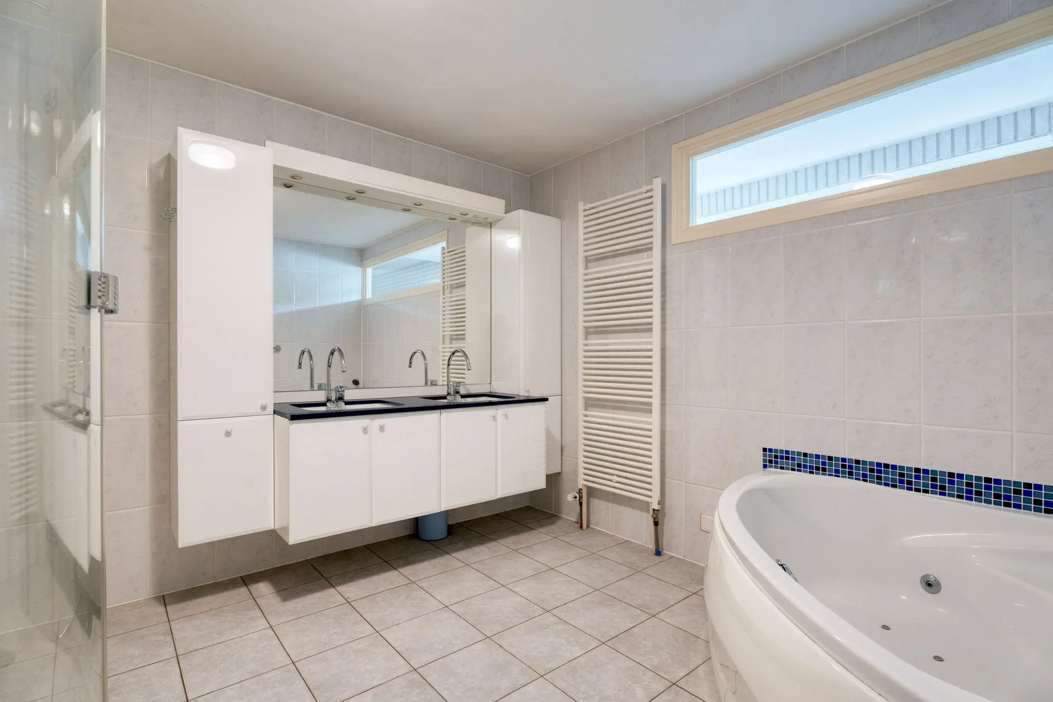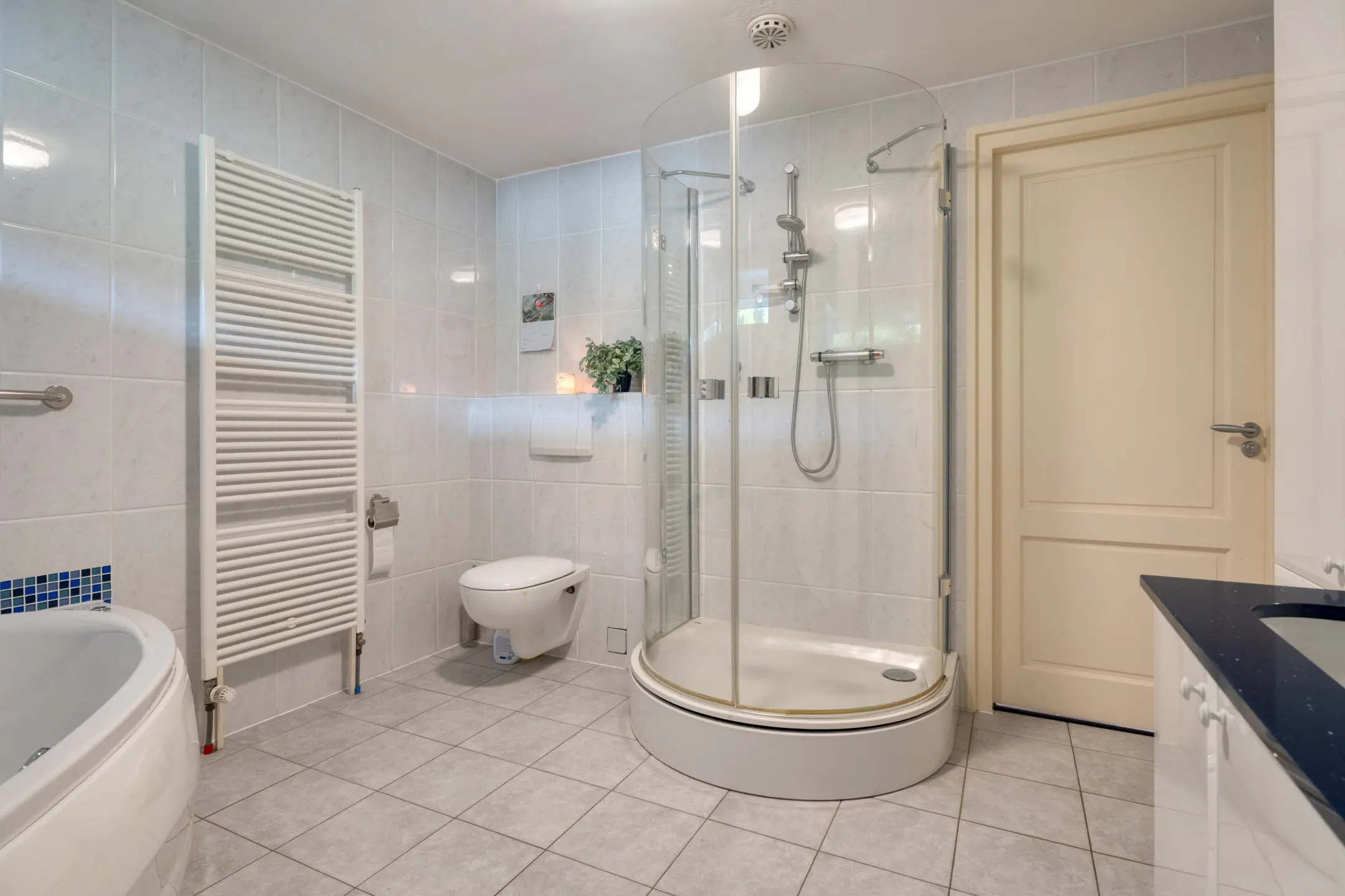 De woning beschikt over vier ruime slaapkamers, waarvan de masterbedroom een luxe en privé badkamer heeft. Deze badkamer is uitgerust met een hoekbad, een aparte douche, een dubbele wastafel met meubel, en een hangtoilet. Twee designradiatoren zorgen voor extra comfort. De masterbedroom zelf heeft een grote inloopkast, en de directe toegang tot de tuin maakt deze slaapkamer tot een oase van rust. De overige drie slaapkamers zijn eveneens ruim en voorzien van een eigen badkamer met douche, wastafel en toilet. Twee van deze slaapkamers beschikken bovendien over grote inbouwkasten met schuifdeuren.