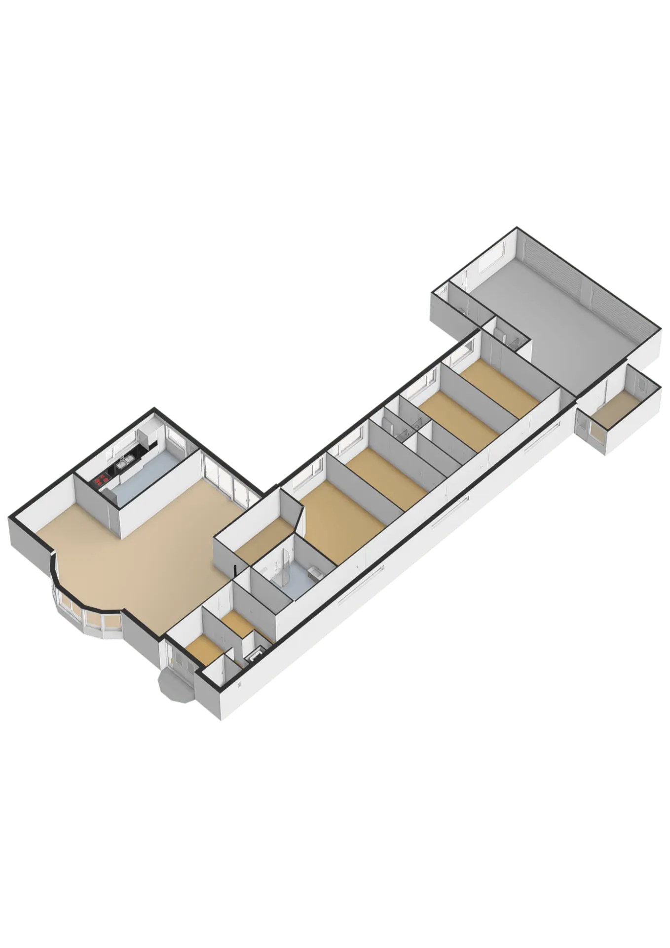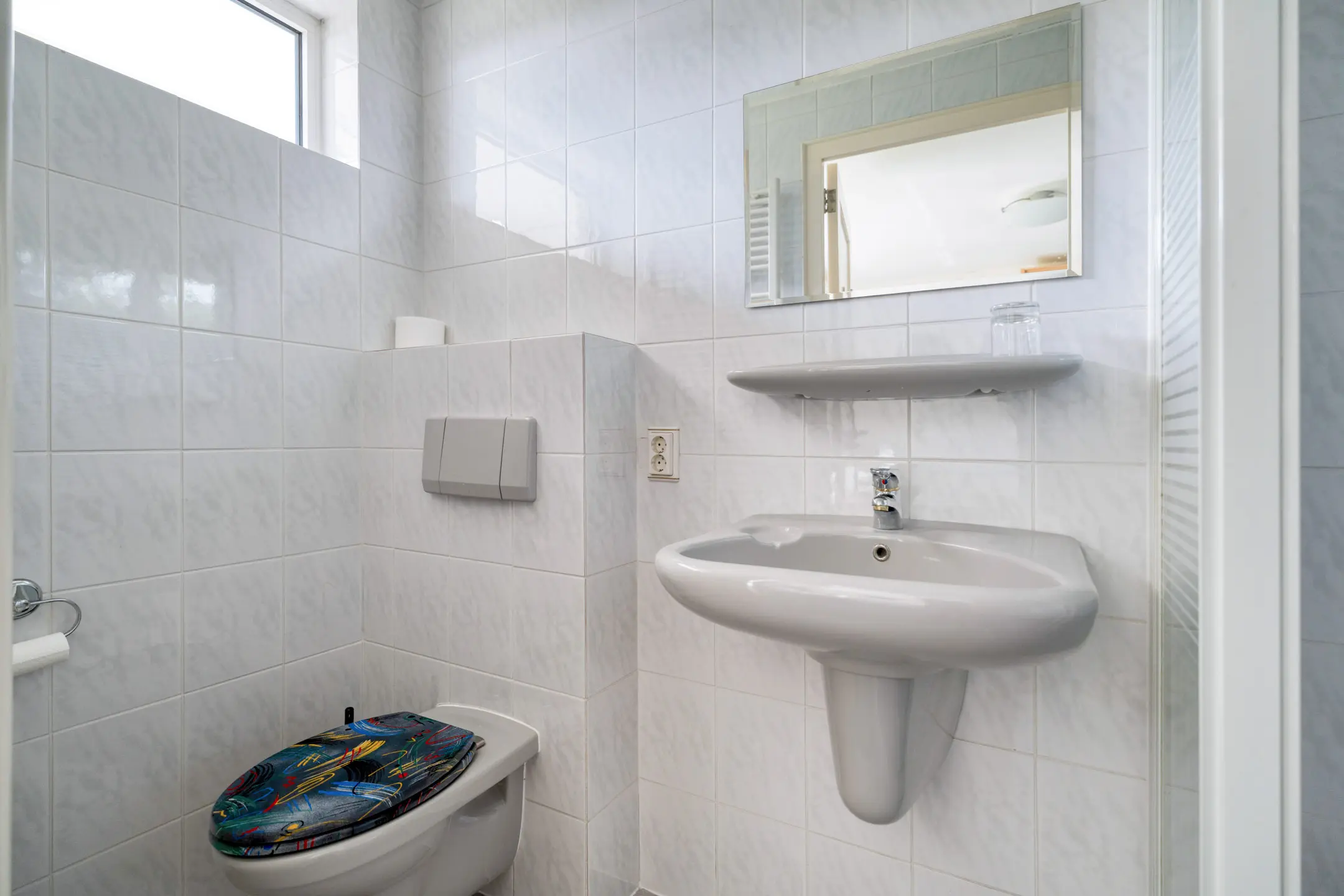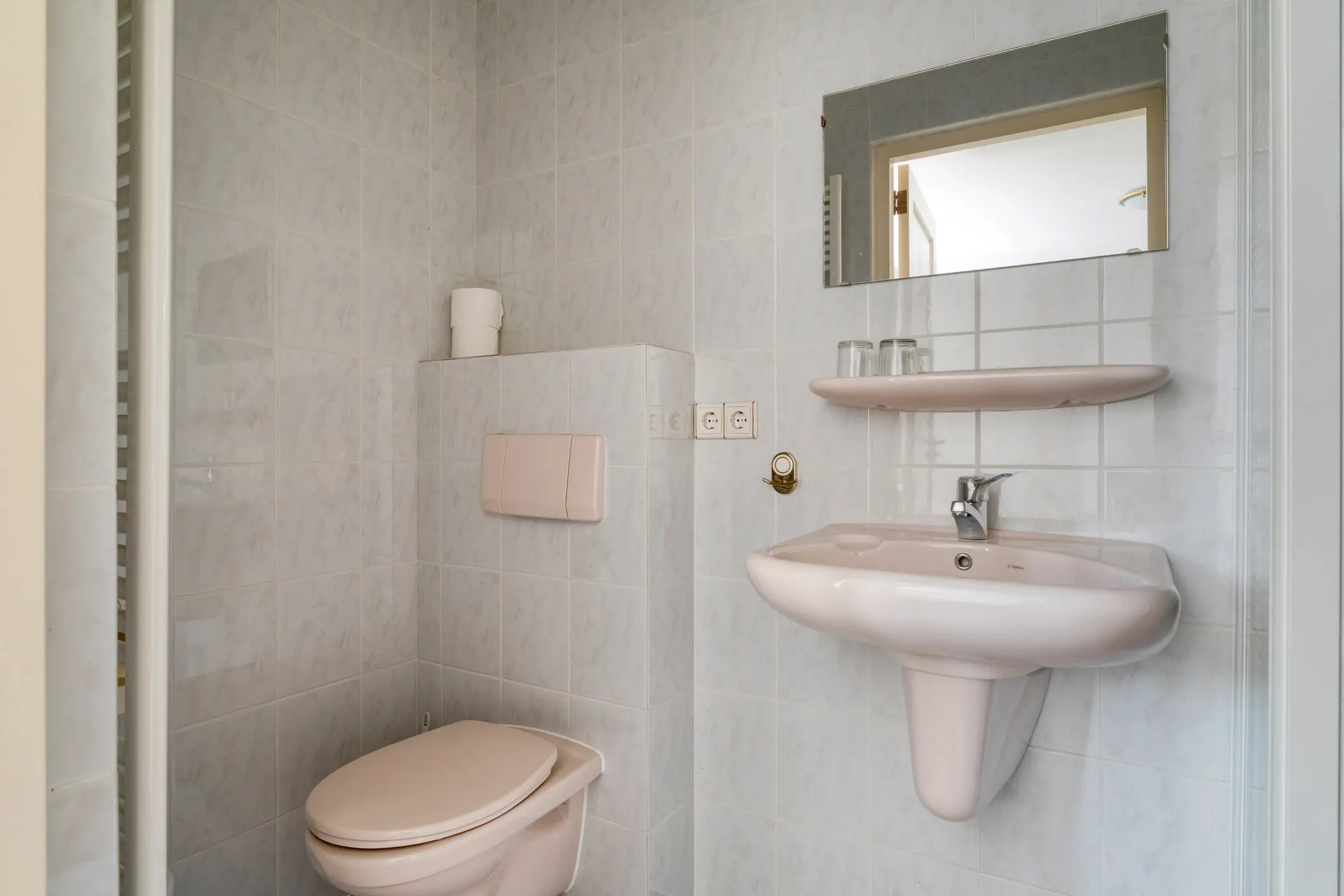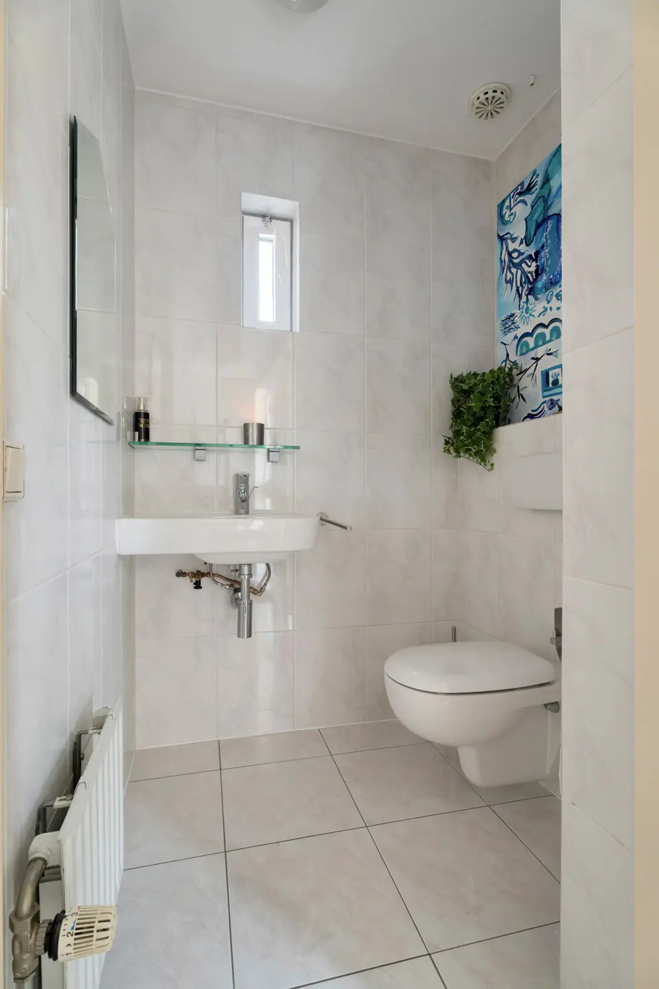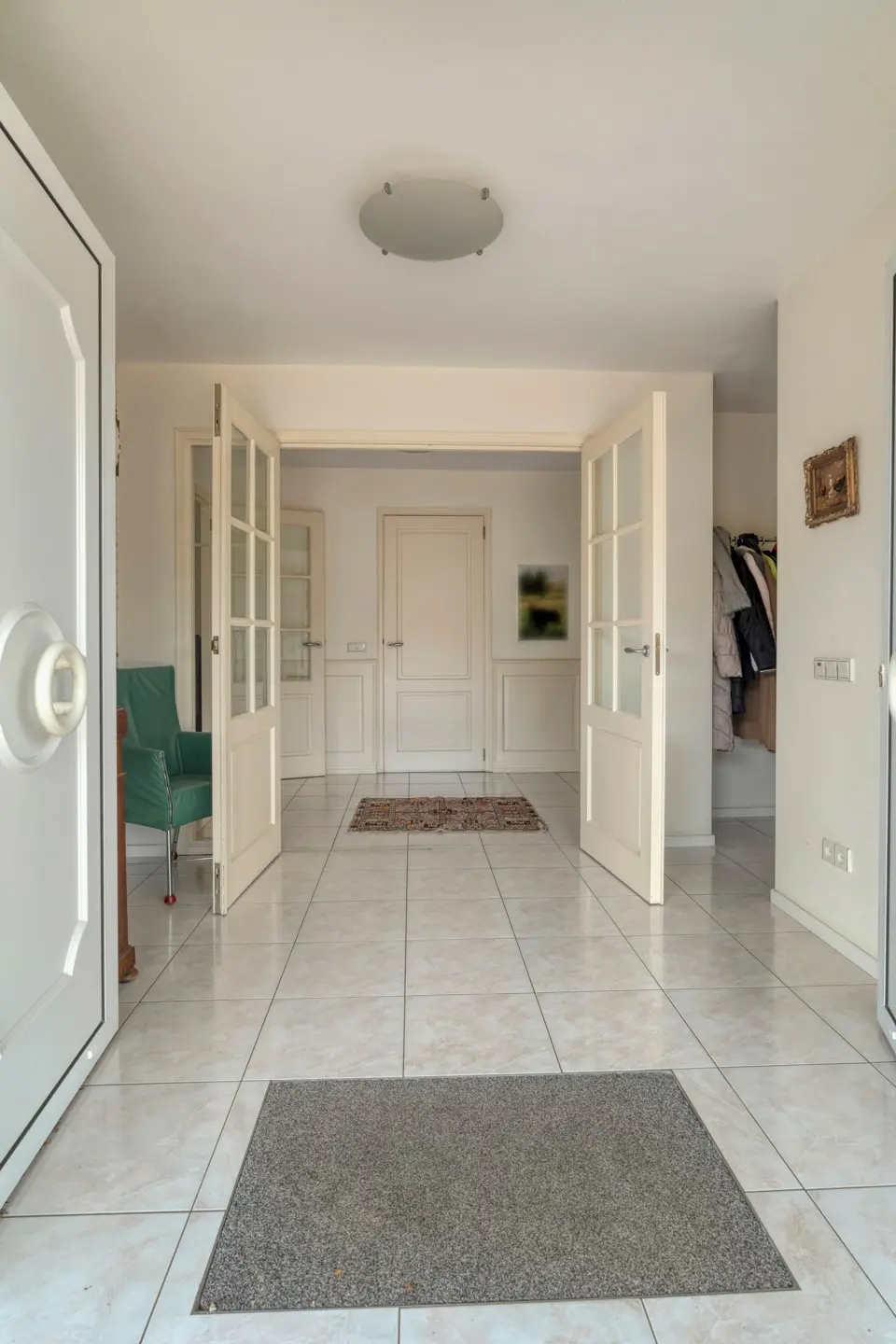 Bij binnenkomst wordt u verwelkomd in een ruime hal met toegang tot het toilet en de garderobe, die tevens de meterkast herbergt. Vanuit deze hal heeft u toegang tot een tweede hal, die op zijn beurt leidt naar de woonkamer, een ruime bergruimte en een gang naar de slaapvertrekken. Dankzij de speelse en open indeling en de vele grote ramen is de woning bijzonder licht. Alle vertrekken bevinden zich op de begane grond, wat bijdraagt aan de toegankelijkheid en het comfort van deze woning.
