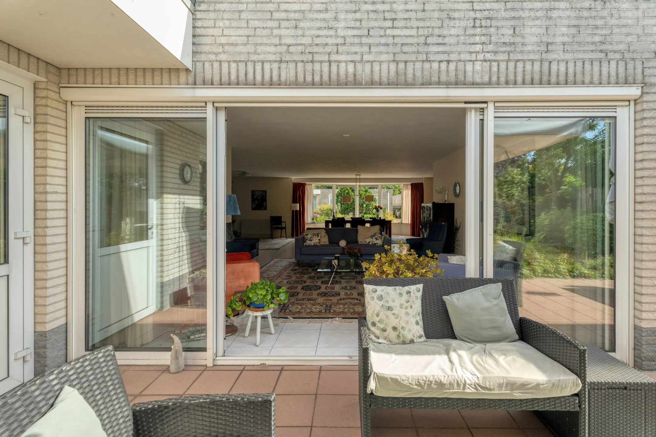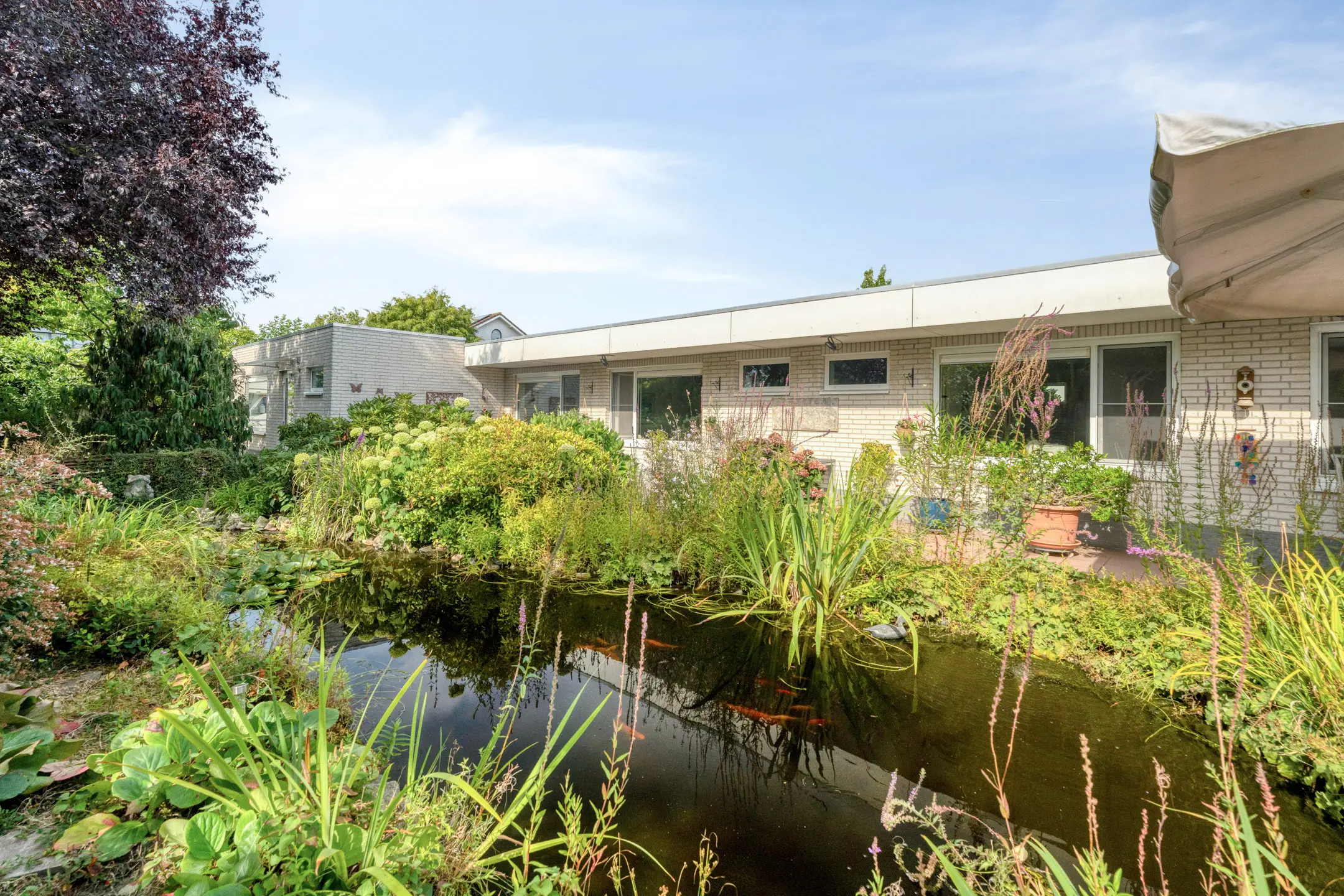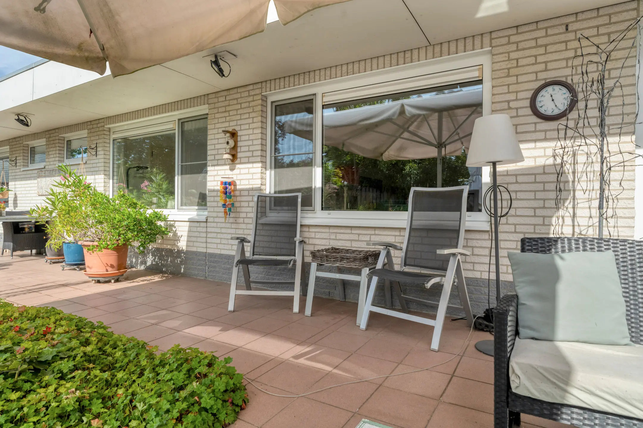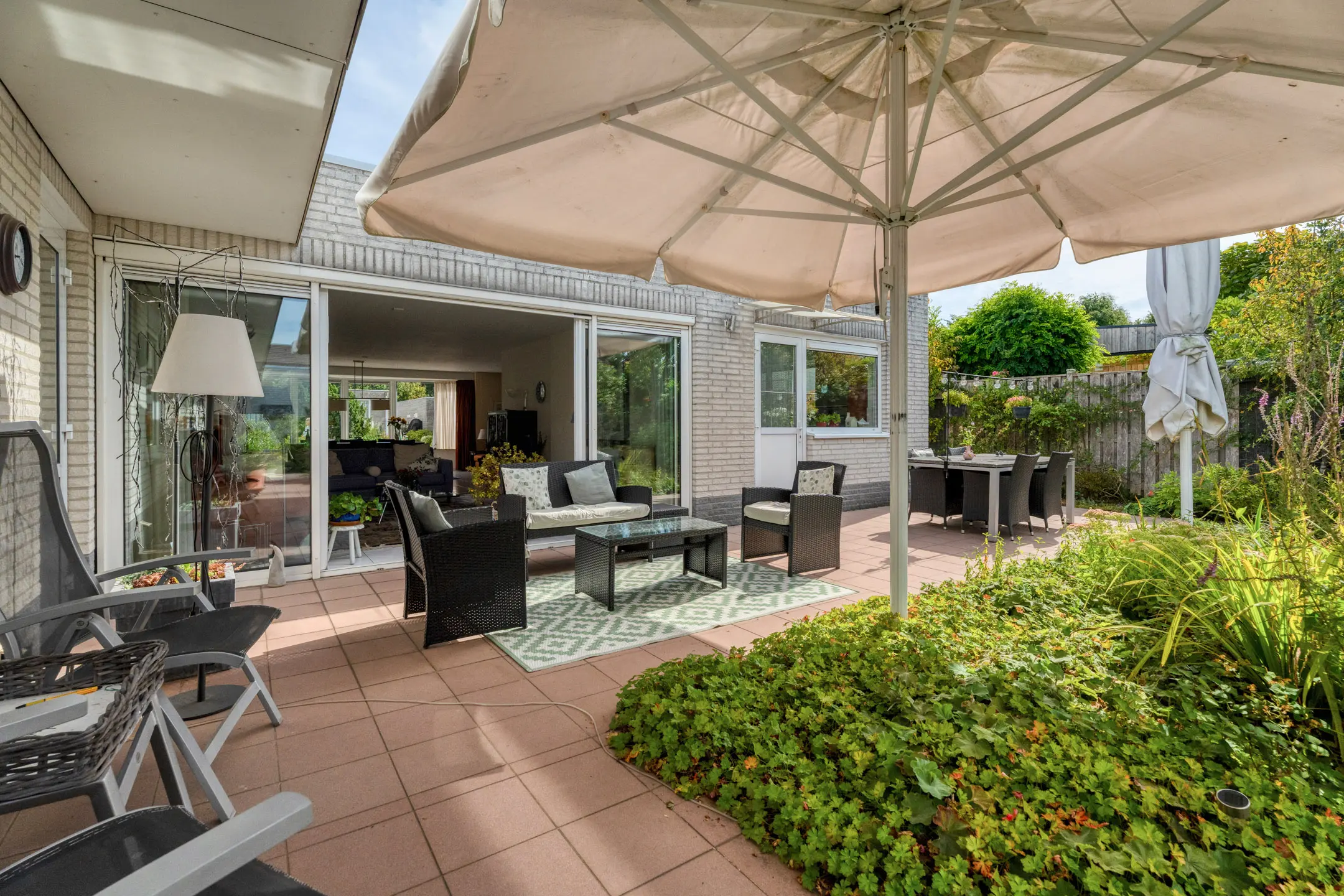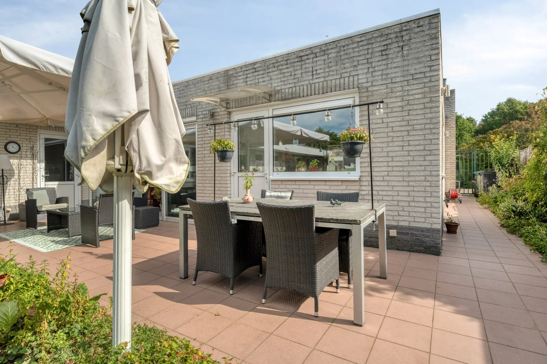 De buitenruimte is een ware oase van rust. De achtertuin is fraai aangelegd en biedt volop privacy. Het grote terras, voorzien van twee ingebouwde parasols van 4x4 meter, biedt aangename schaduw en is ideaal voor het buitenleven. De parasols zijn stevig in de grond verankerd en beschermen u tegen de zon. In het midden van de tuin vindt u een sierlijke vijver die zorgt voor een luxe uitstraling en een ontspannende sfeer. Dankzij de gunstige ligging kunt u hier vrijwel de hele dag genieten van de zon.