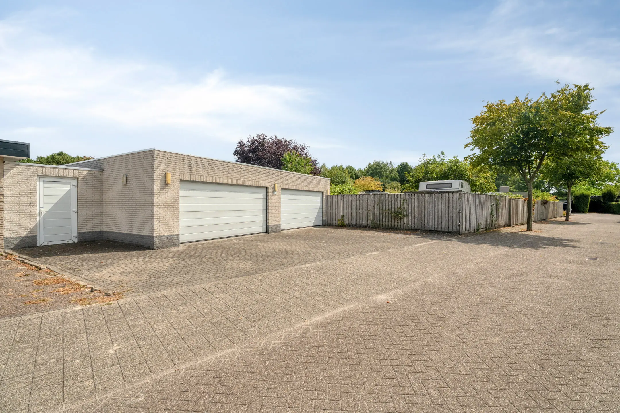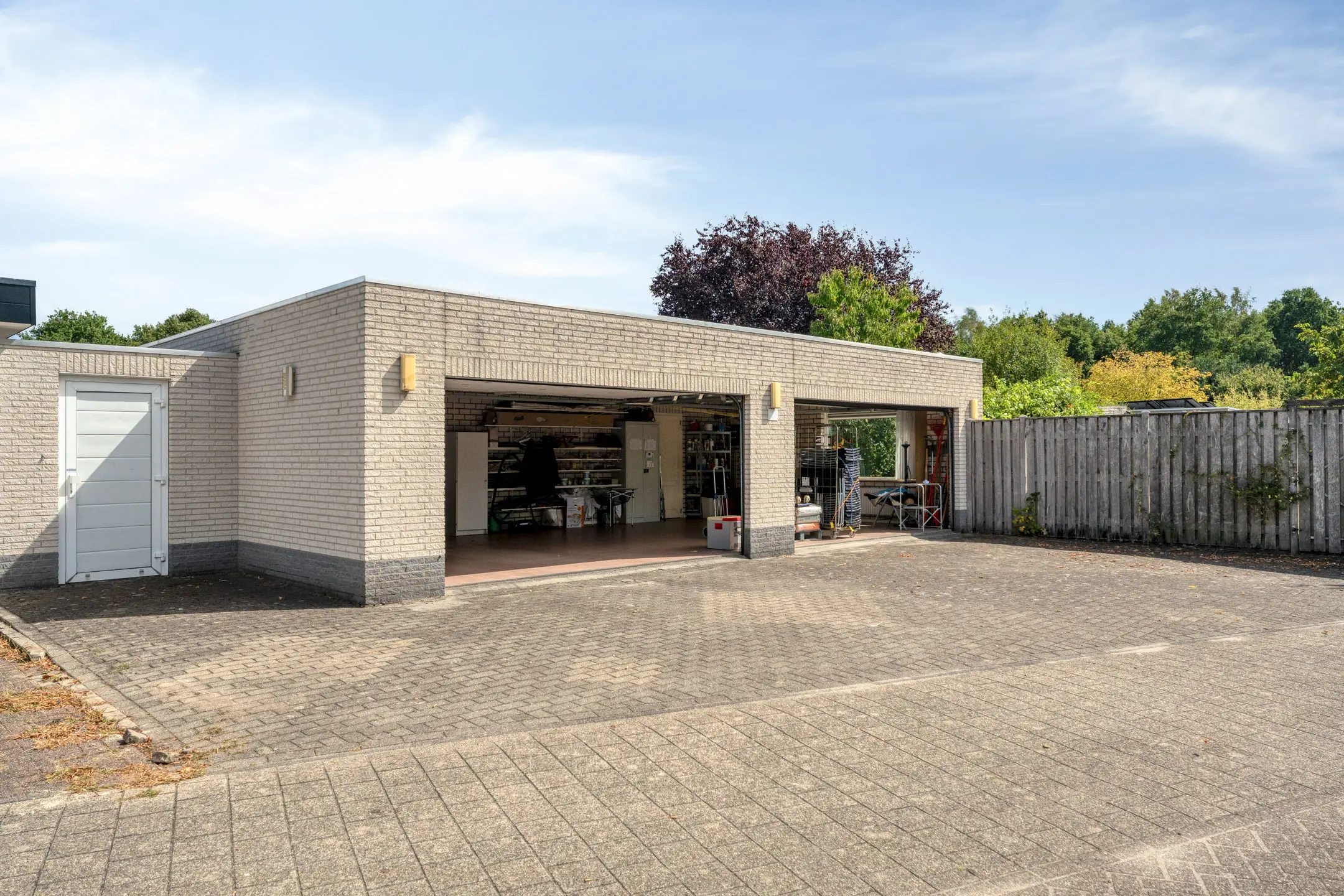 De inpandige garage is bijzonder royaal (83 m²) en biedt ruimte voor vier auto's. Daarnaast biedt de garage voldoende ruimte voor hobby- of werkactiviteiten. De garage is uitgerust met twee elektrische deuren die geopend kunnen worden met een afstandsbediening. De oprit voor de garage biedt ruimte voor extra auto's, wat ideaal is voor bezoek.