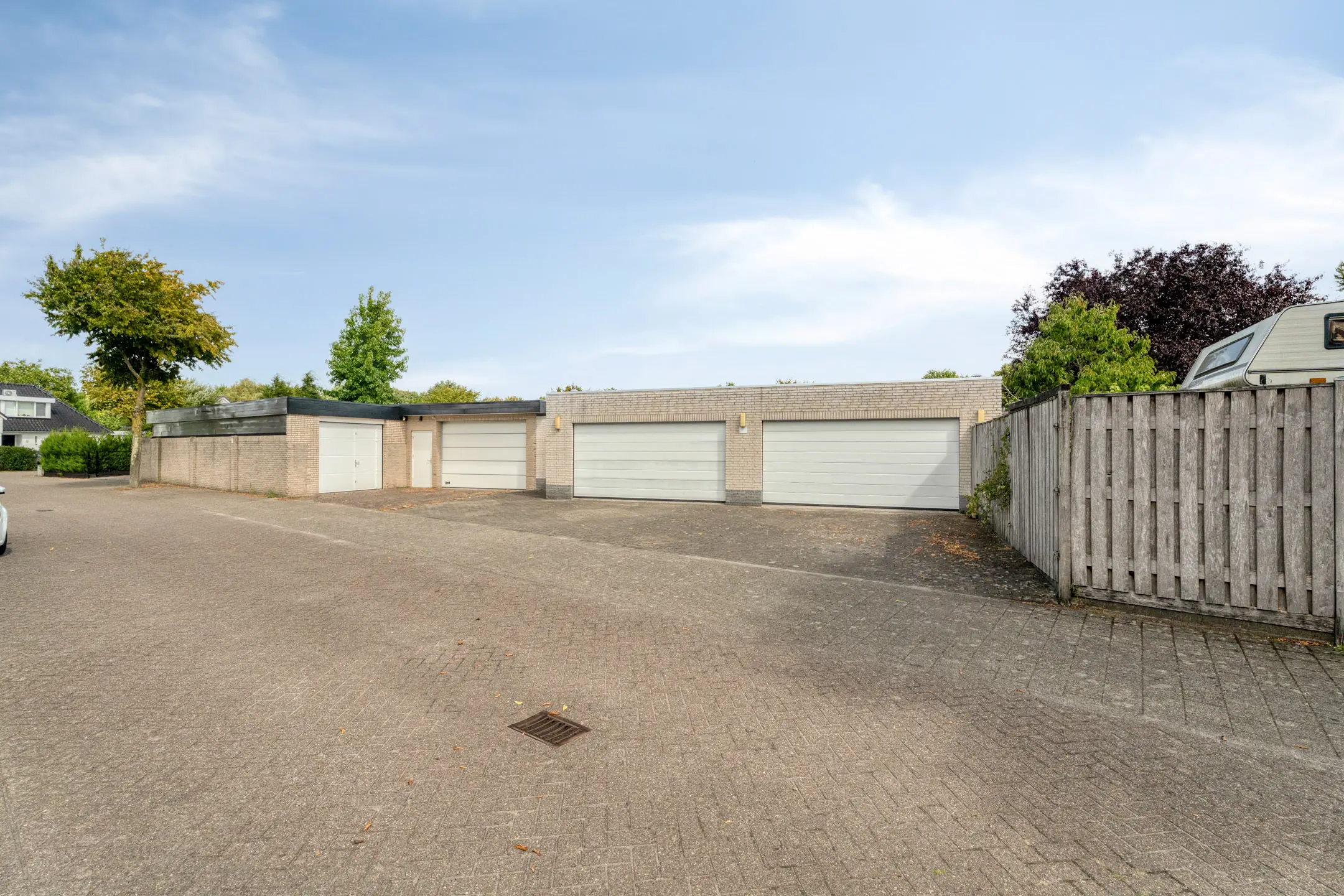 Aangrenzend aan de tuin bevindt zich een afgesloten ruimte, bereikbaar via twee ruime openslaande deuren (poort) in de schutting. Dit biedt de mogelijkheid om bijvoorbeeld een camper of caravan veilig en op eigen terrein te parkeren.