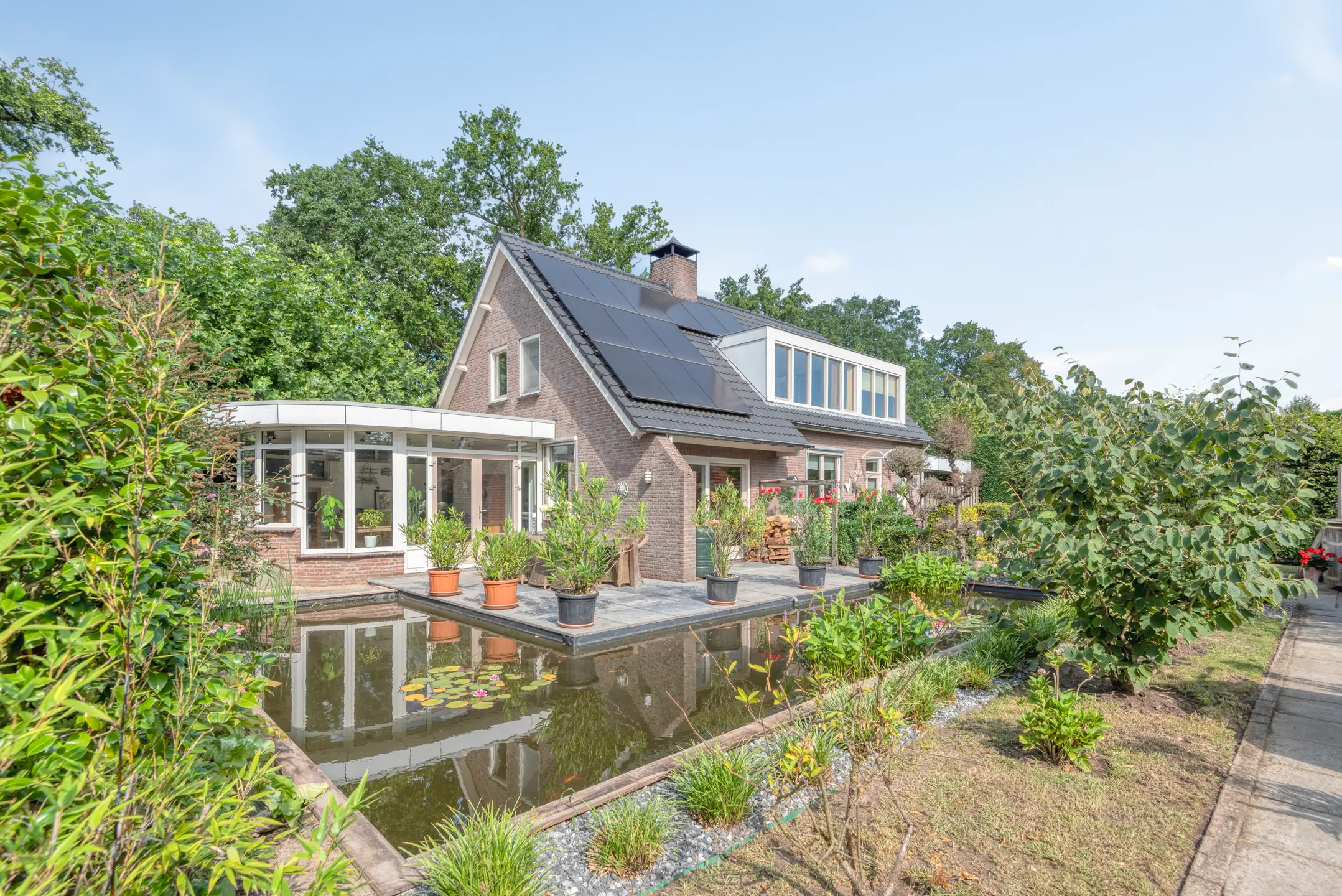Het perceel van 961 m² is met veel zorg en aandacht aangelegd. U vindt hier een ruim terras, een sfeervolle vijver en volop groen, waardoor u geniet van rust en privacy.