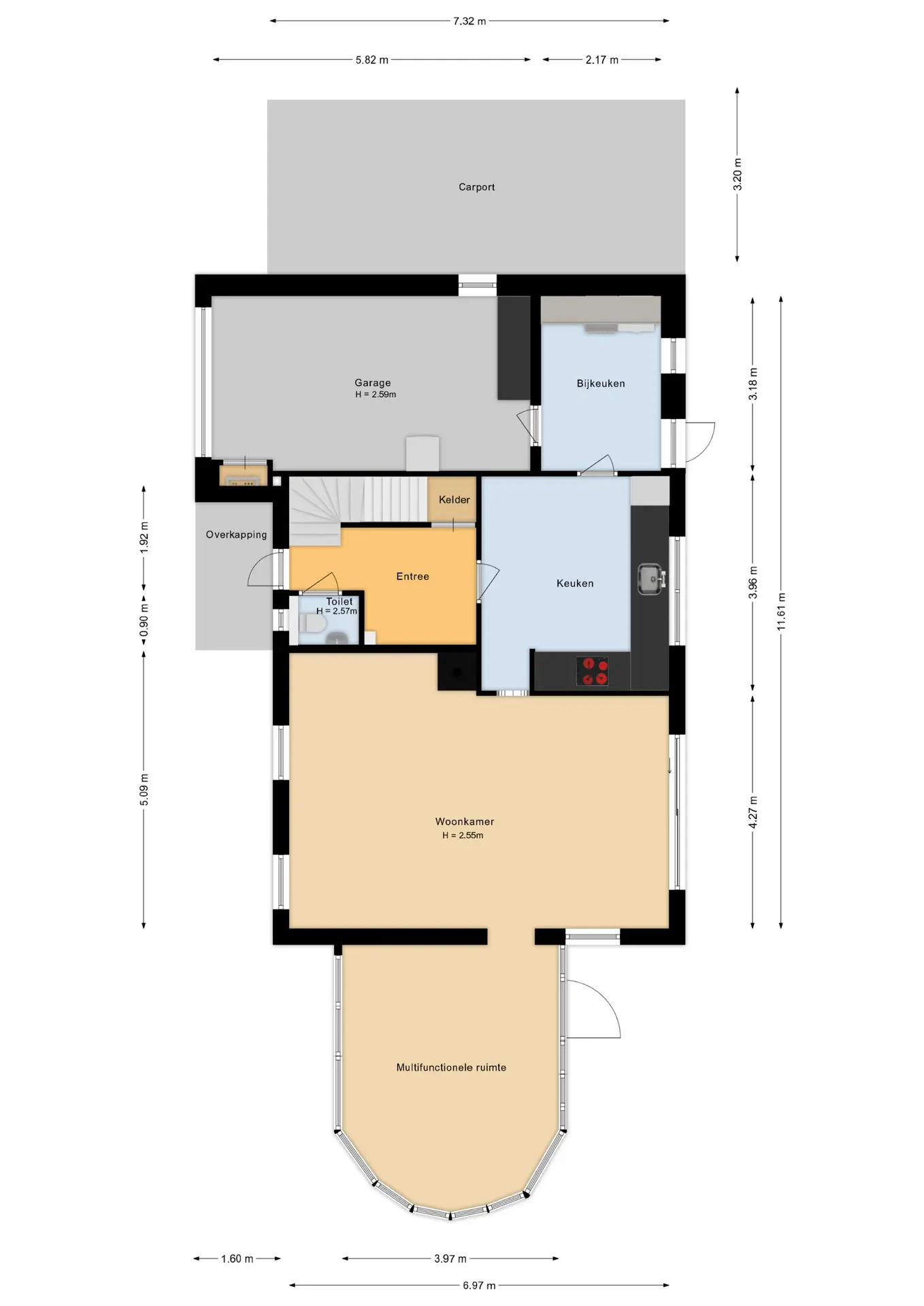 Onder de woning bevindt zich een praktische provisieruimte van ca. 10,6 m² – ideaal als wijnkelder of voor het bewaren van uw voorraad.