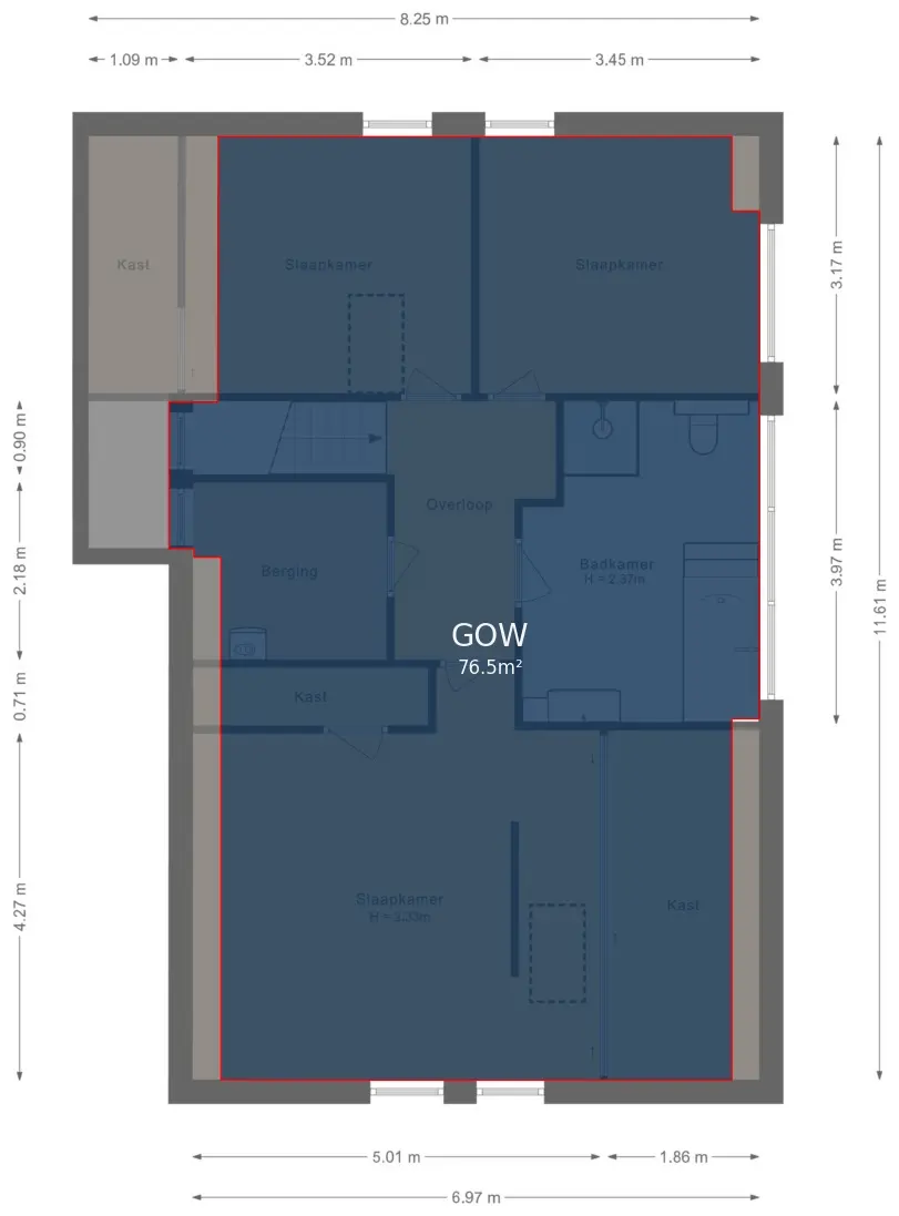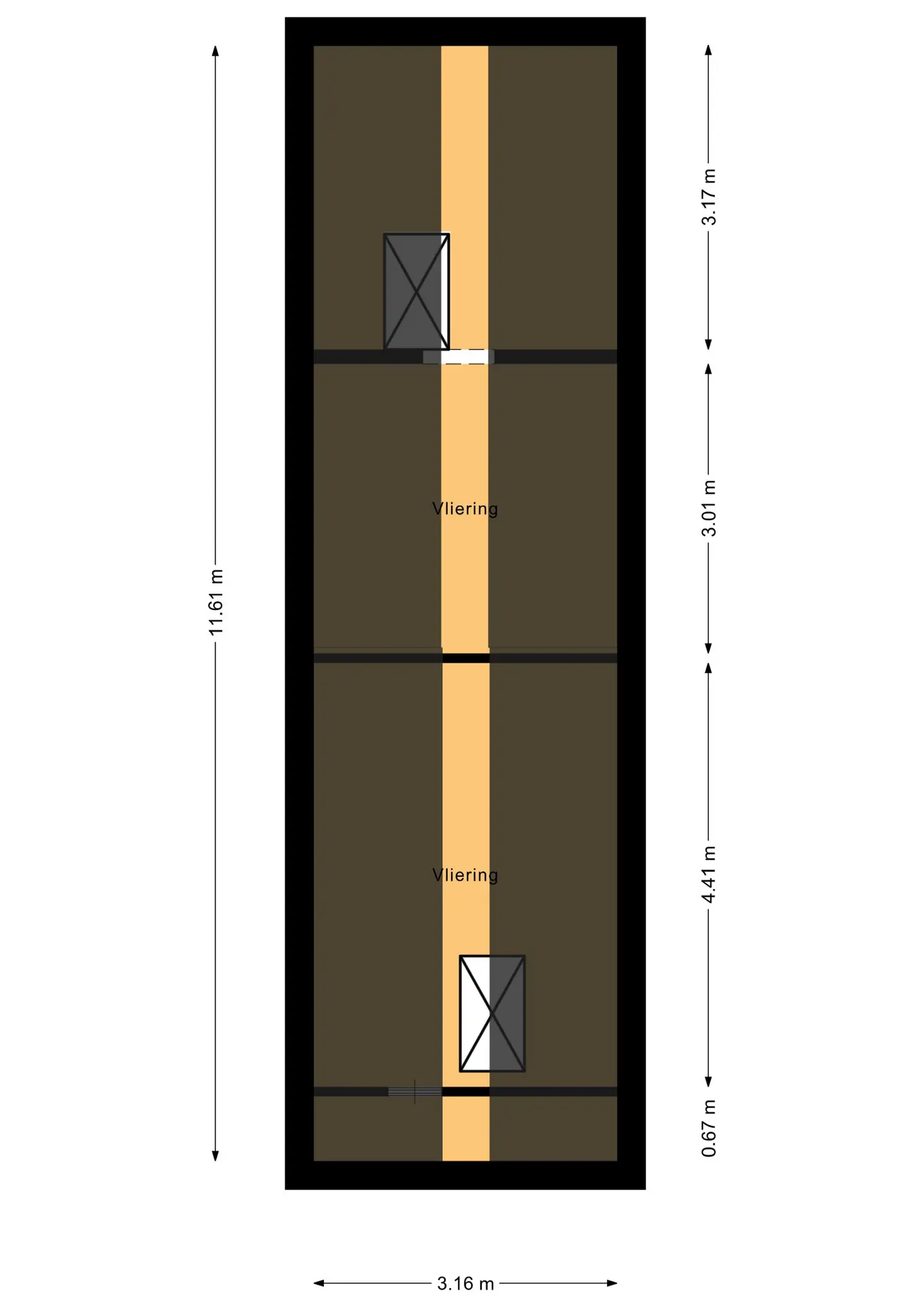 Boven de eerste verdieping bevindt zich een praktische vliering van circa 6 m², ideaal als extra bergruimte.
