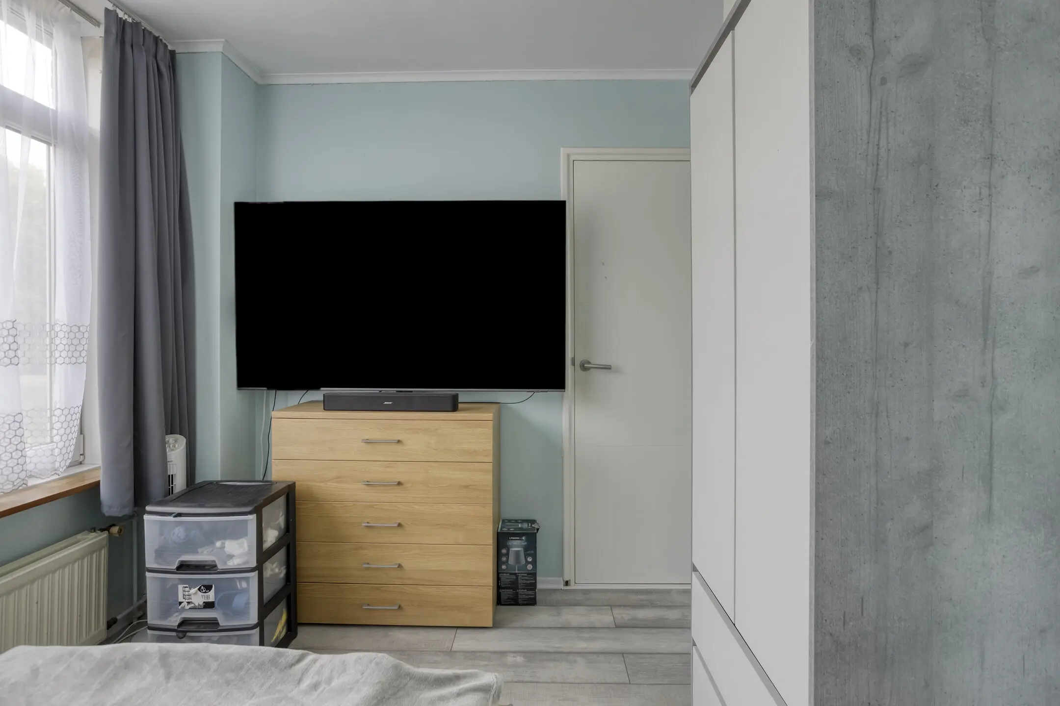 De tweede verdieping biedt een overloop met ketelopstelling en wasmachineaansluiting. De ruime slaapkamer met dakkapel over de volledige breedte zorgt voor veel lichtinval en een ruimtelijk gevoel. Perfect als tienerkamer, kantoor of hobbyruimte.
