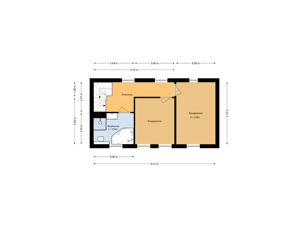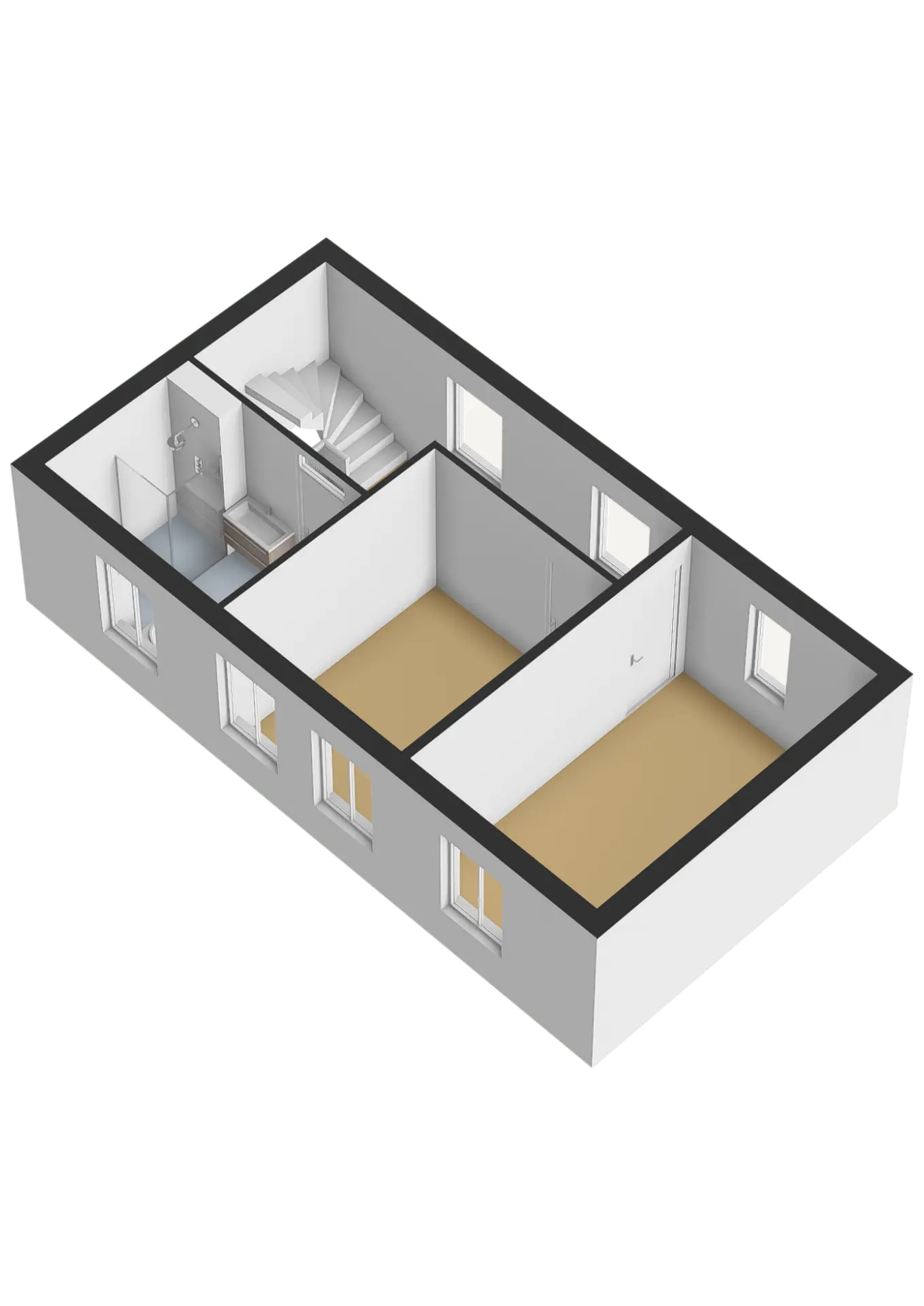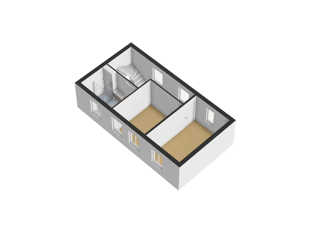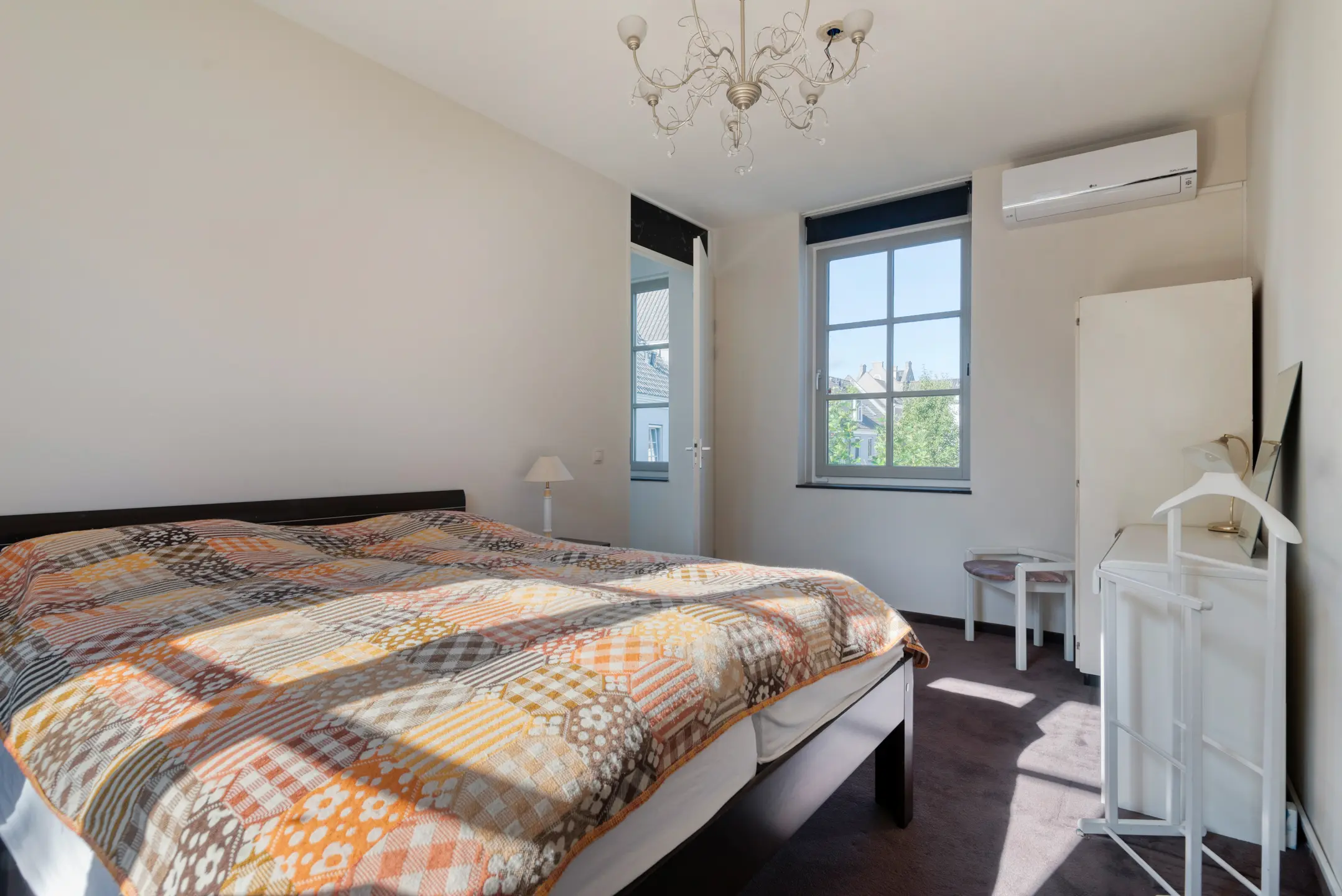 Via de trap komt u op de eerste verdieping hier bevinden zich twee slaapkamers. De slaapkamers hebben veel lichtinval door de grote raampartijen en bieden voldoende ruimte voor slapen, werken of studeren.