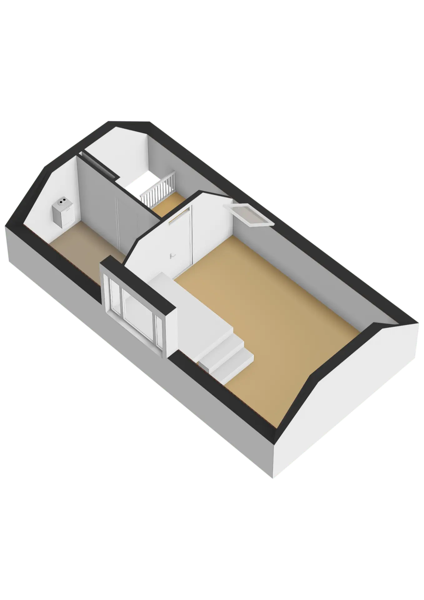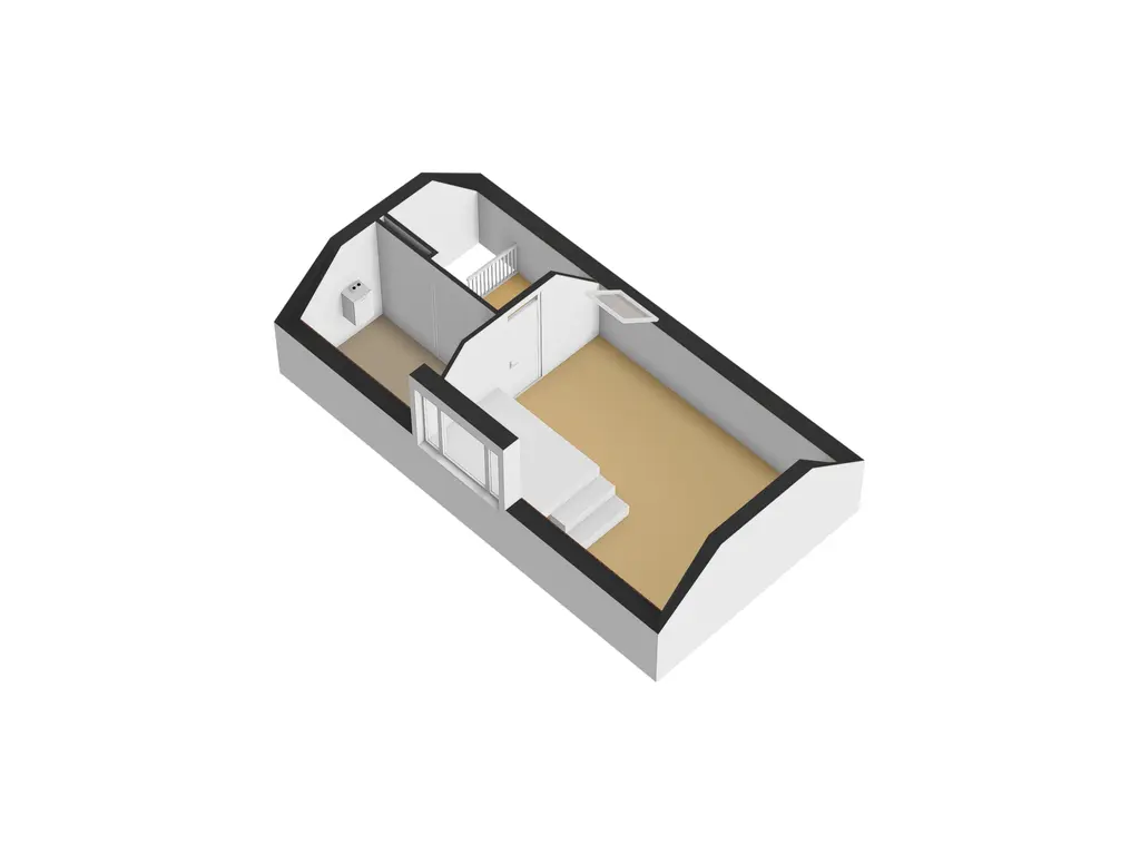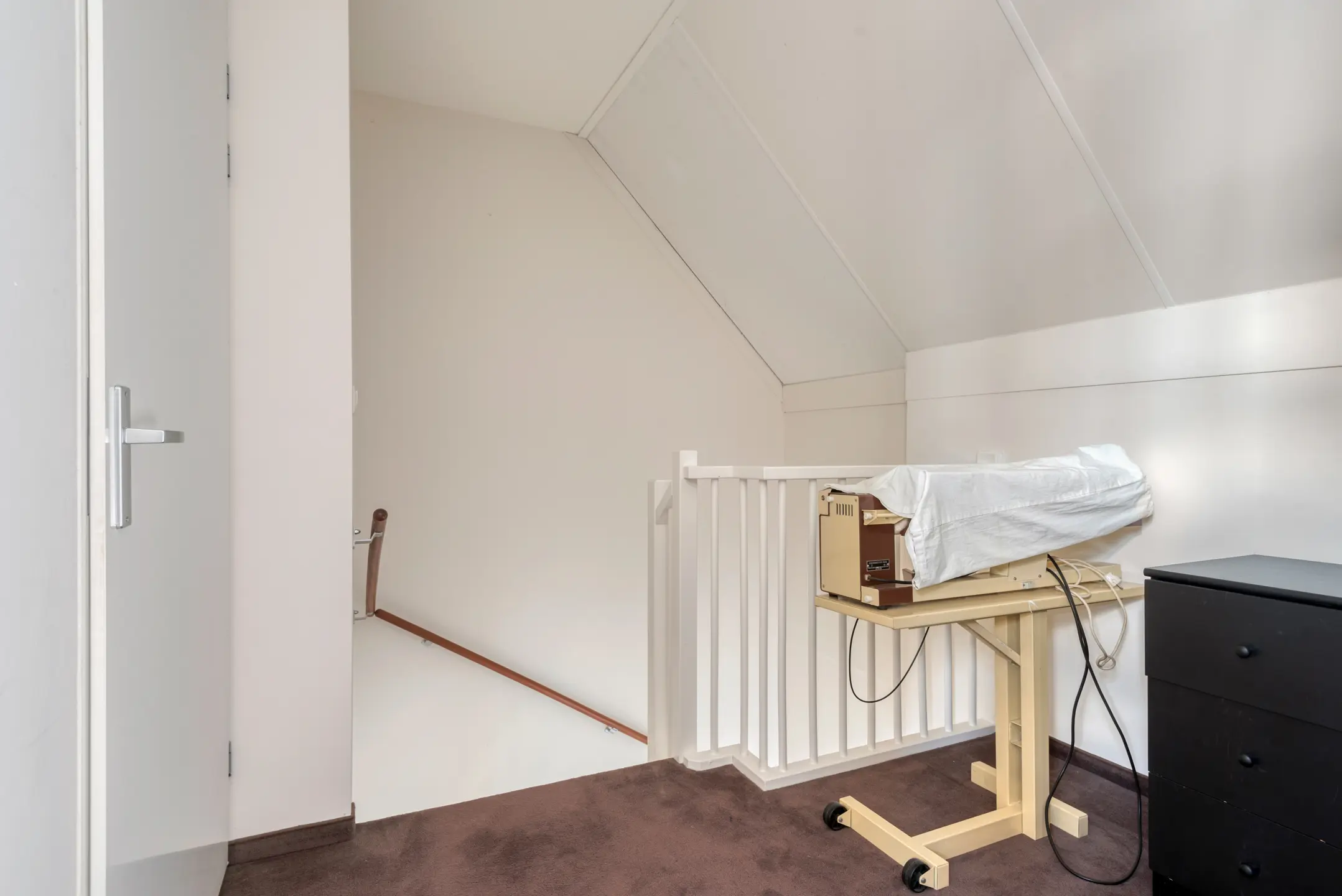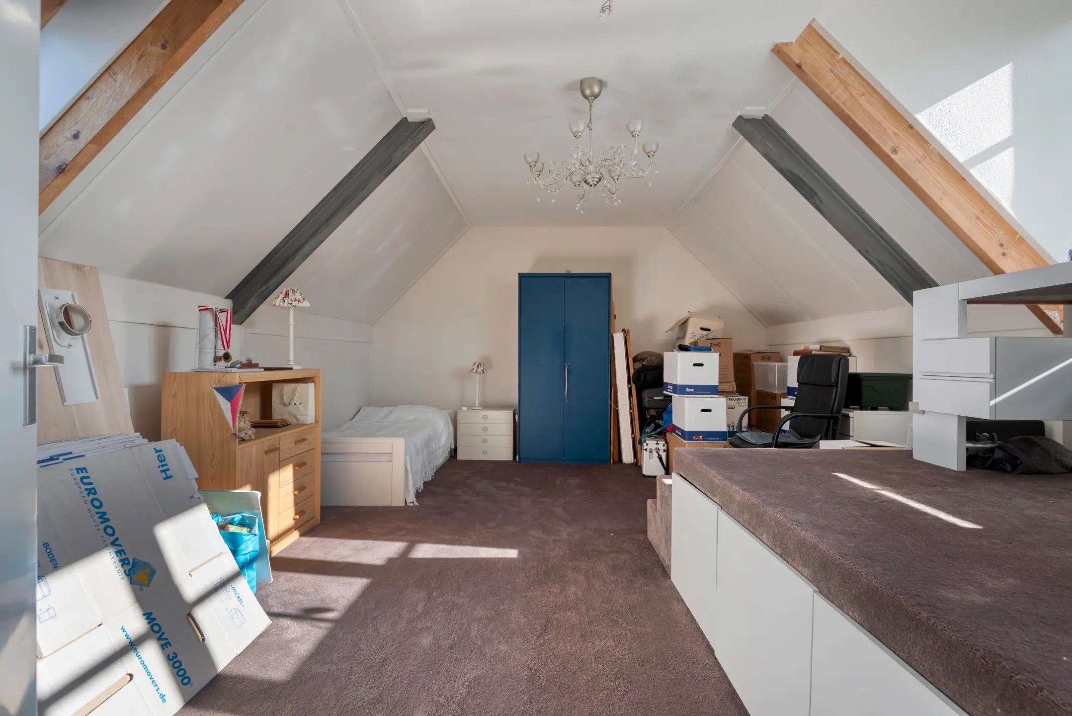 De zolder is verrassend ruim en biedt plaats voor nog een extra slaapkamer of hobbyruimte. Ook bevindt zich hier een extra berging met aansluiting voor de wasmachine. Dankzij het bouwjaar is deze verdieping goed geïsoleerd en multifunctioneel te gebruiken.