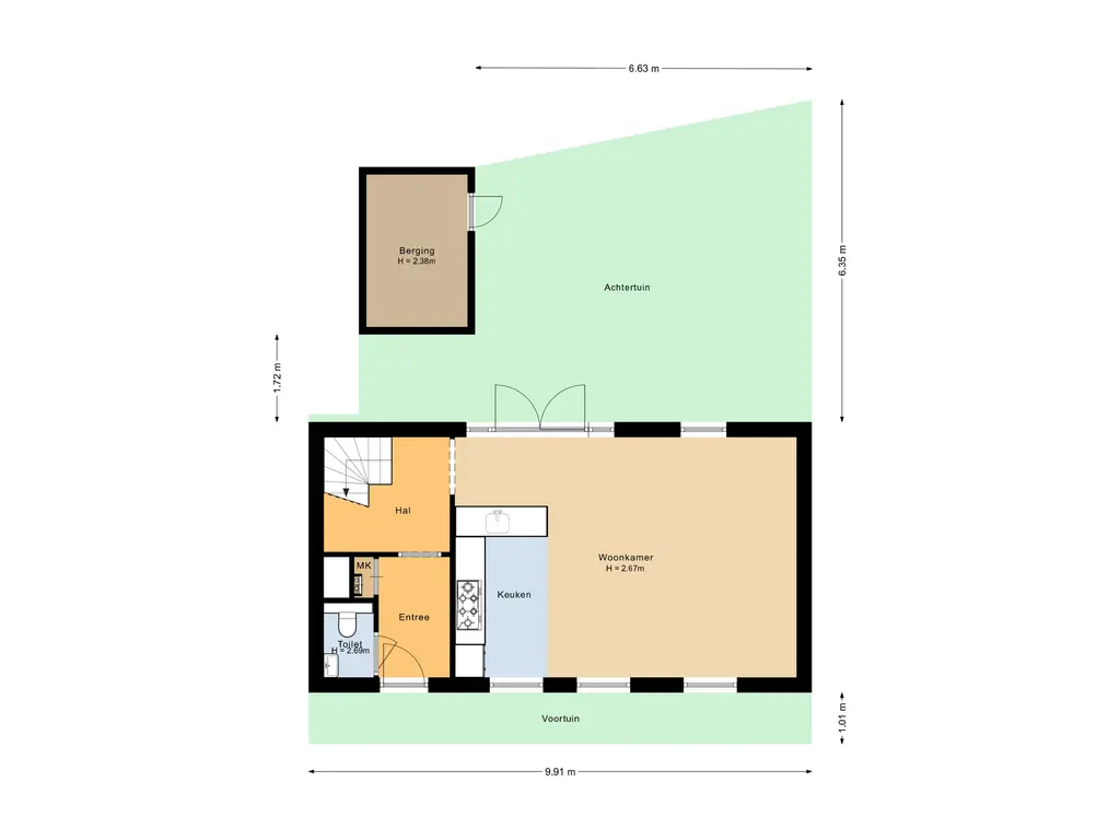 Bij binnenkomst treft u een hal met meterkast, een modern toilet en trapopgang . Vanuit de hal komt u in de royale woonkamer. Deze is tuingericht en voorzien van vloerverwarming wat zorgt voor extra wooncomfort. De grote raampartijen zorgen voor veel lichtinval.