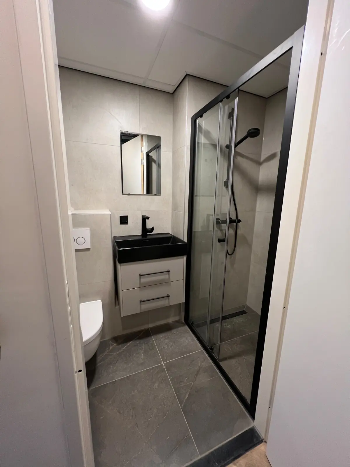 Het appartement is efficiënt ingedeeld met een open woon-slaapruimte die veel lichtinval biedt. Woning is voorzien van PVC-Vloer en gordijnen. De keuken is voorzien van een vaatwasser, was/droog combi, inductiekookplaat, afzuigkap, koelkast met vriesvak met een moderne afwerking. De badkamer is compleet afgewerkt met een inloopdouche, toilet en wastafel. Hoge kwaliteit materialen, dubbel glas en een goede isolatie dragen bij aan een aangenaam woonklimaat. In het complex is een gemeenschappelijke fietsenberging aanwezig en indien beschikbaar zijn parkeerplaatsen te huur in de directe omgeving.