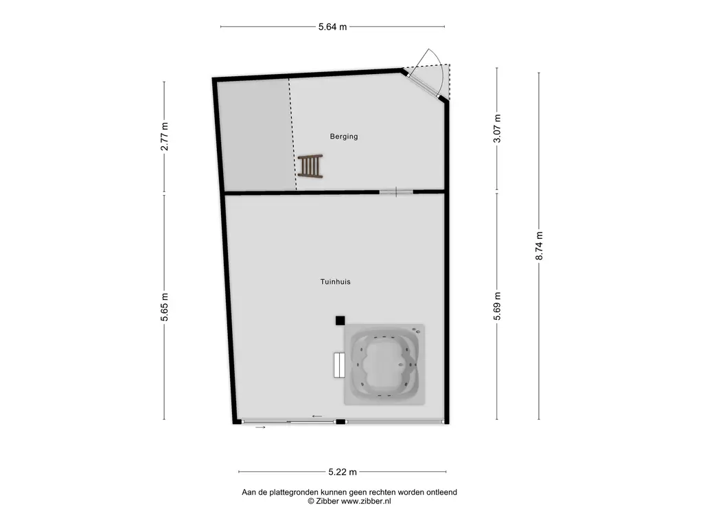 Achter de overkapping ligt een ruime berging met achterom, ideaal voor fietsen en extra opslag.