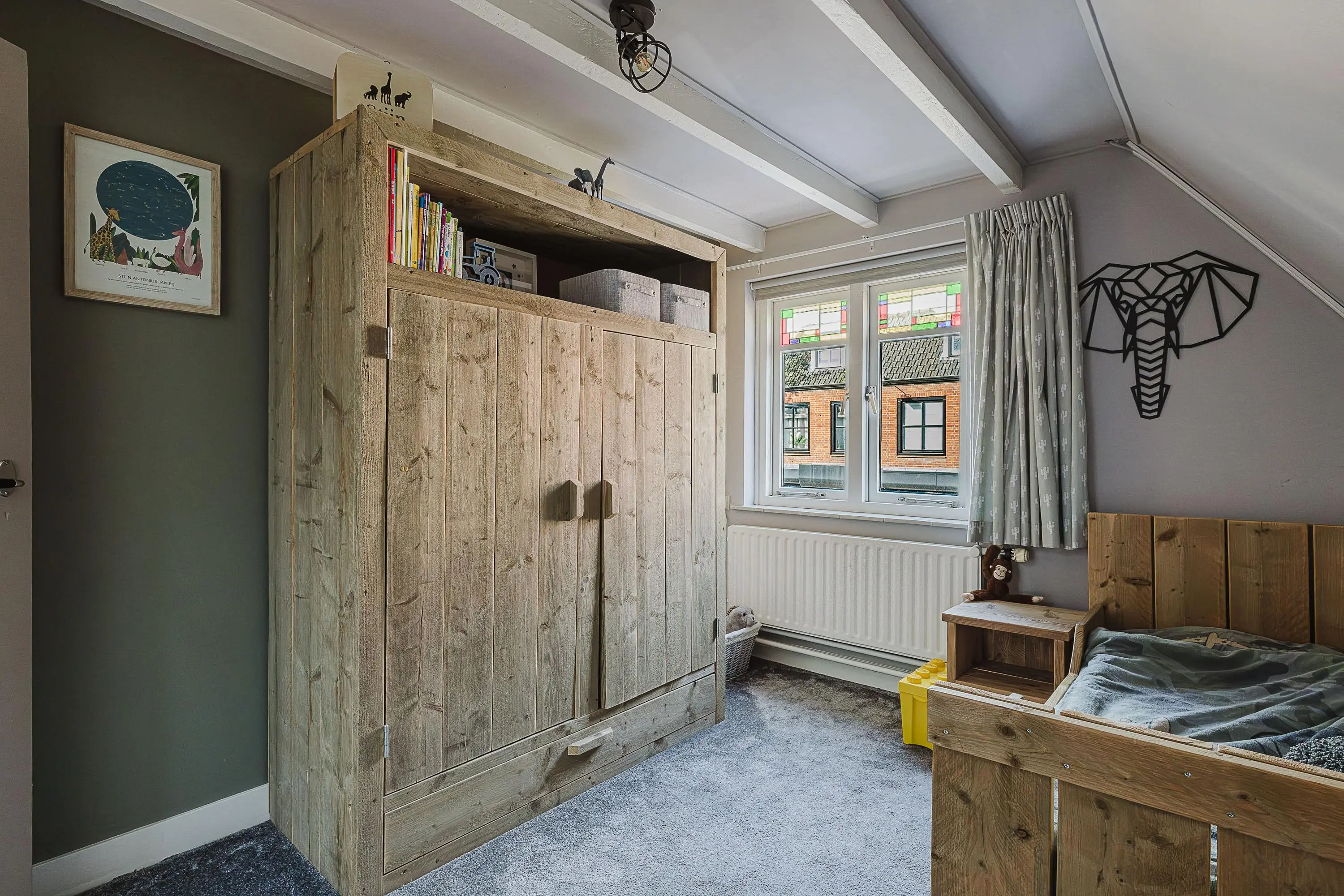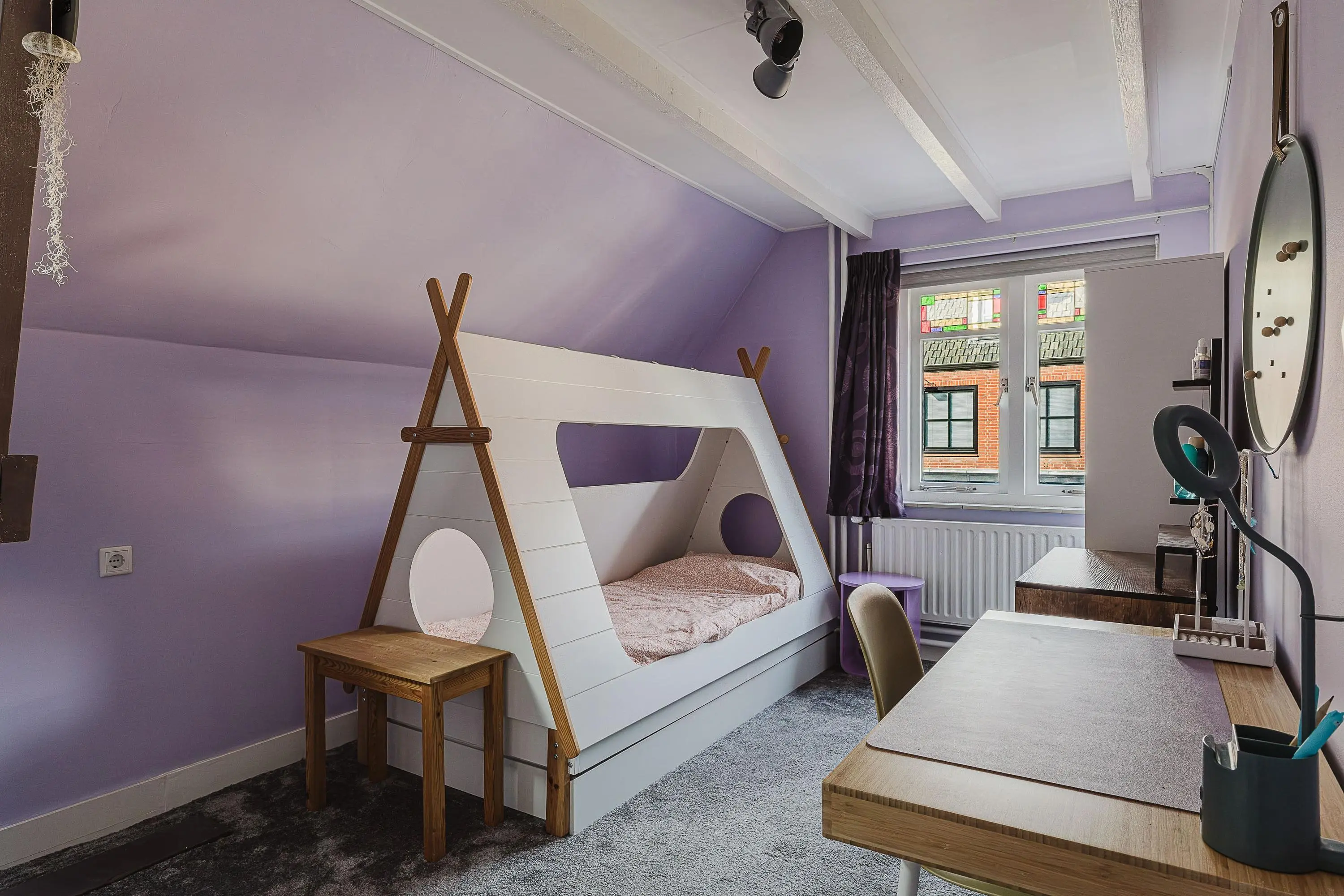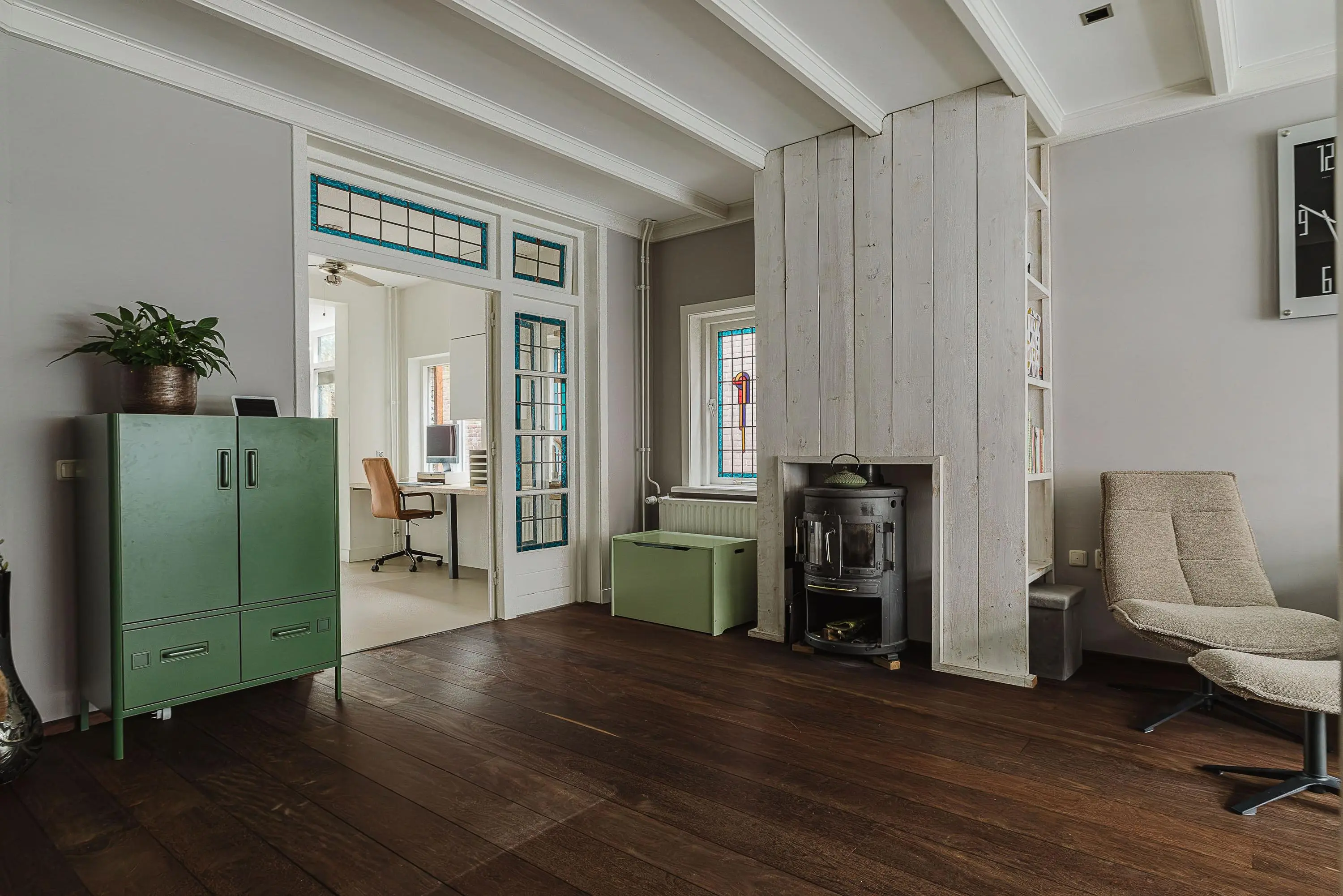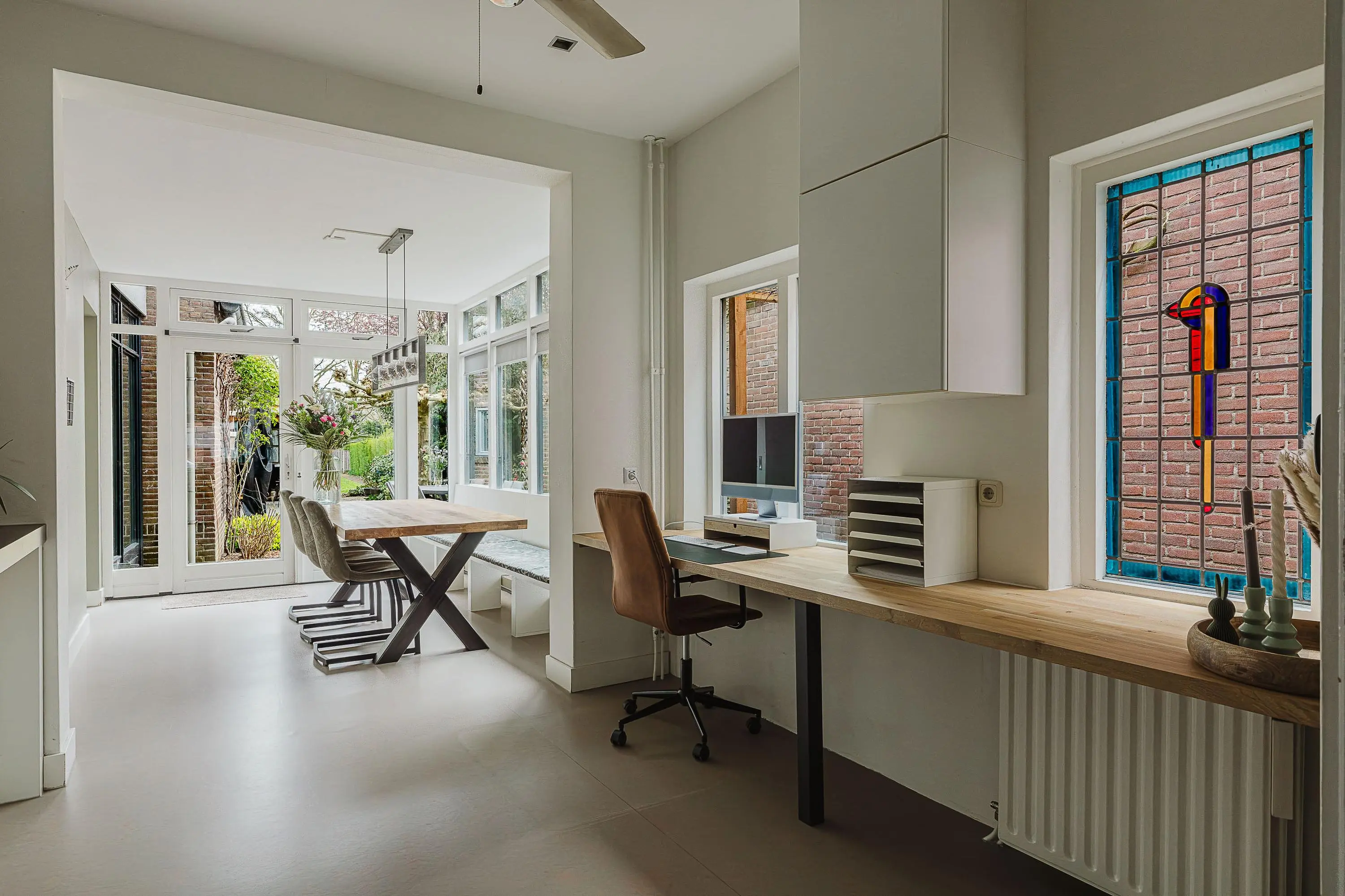 Binnen tref je een sfeervolle leefruimte met veel natuurlijk licht, glas-in-loodramen en een ruime woonkeuken die alle mogelijkheden biedt voor het bereiden van heerlijke maaltijden. Ook de tuin blijft niet onopgemerkt: een perfecte plek om te ontspannen en te genieten van de rust.