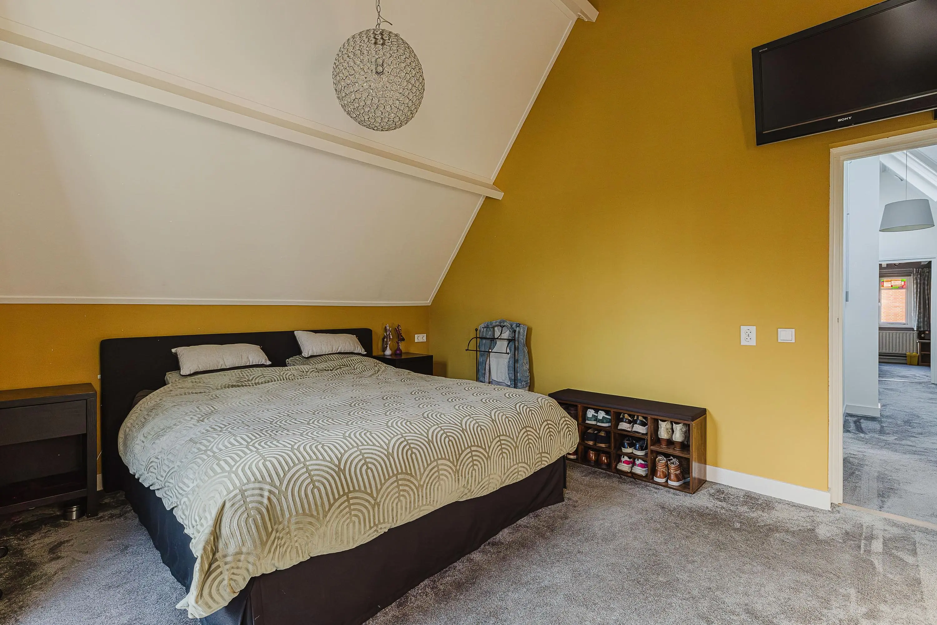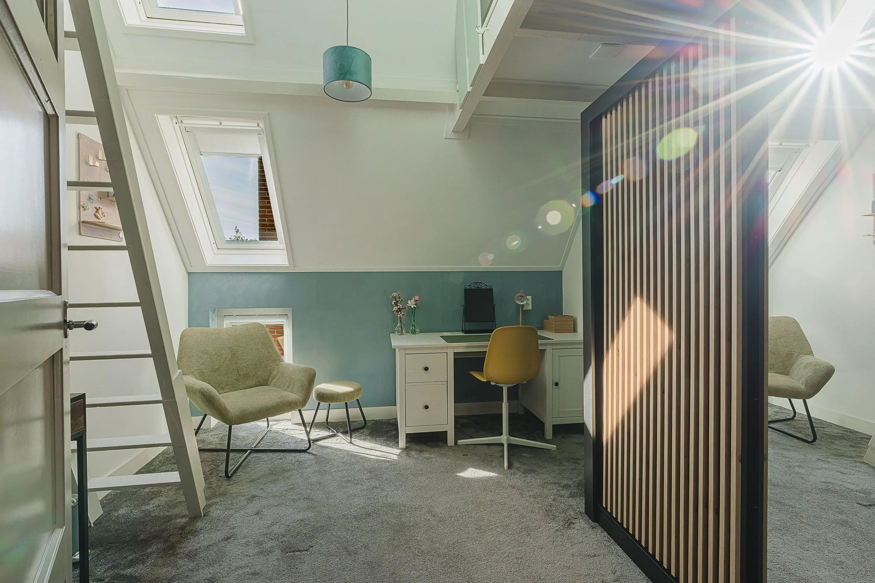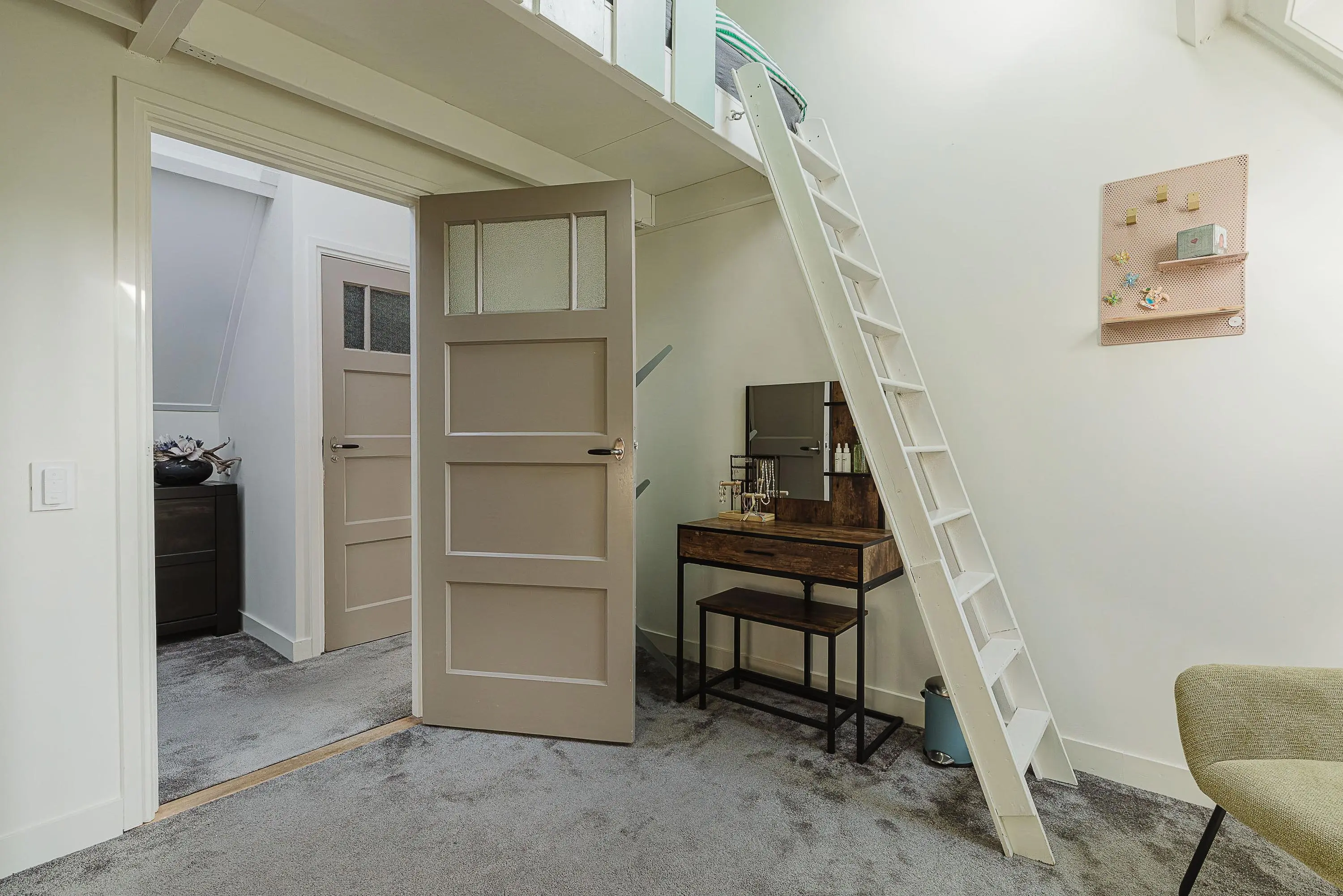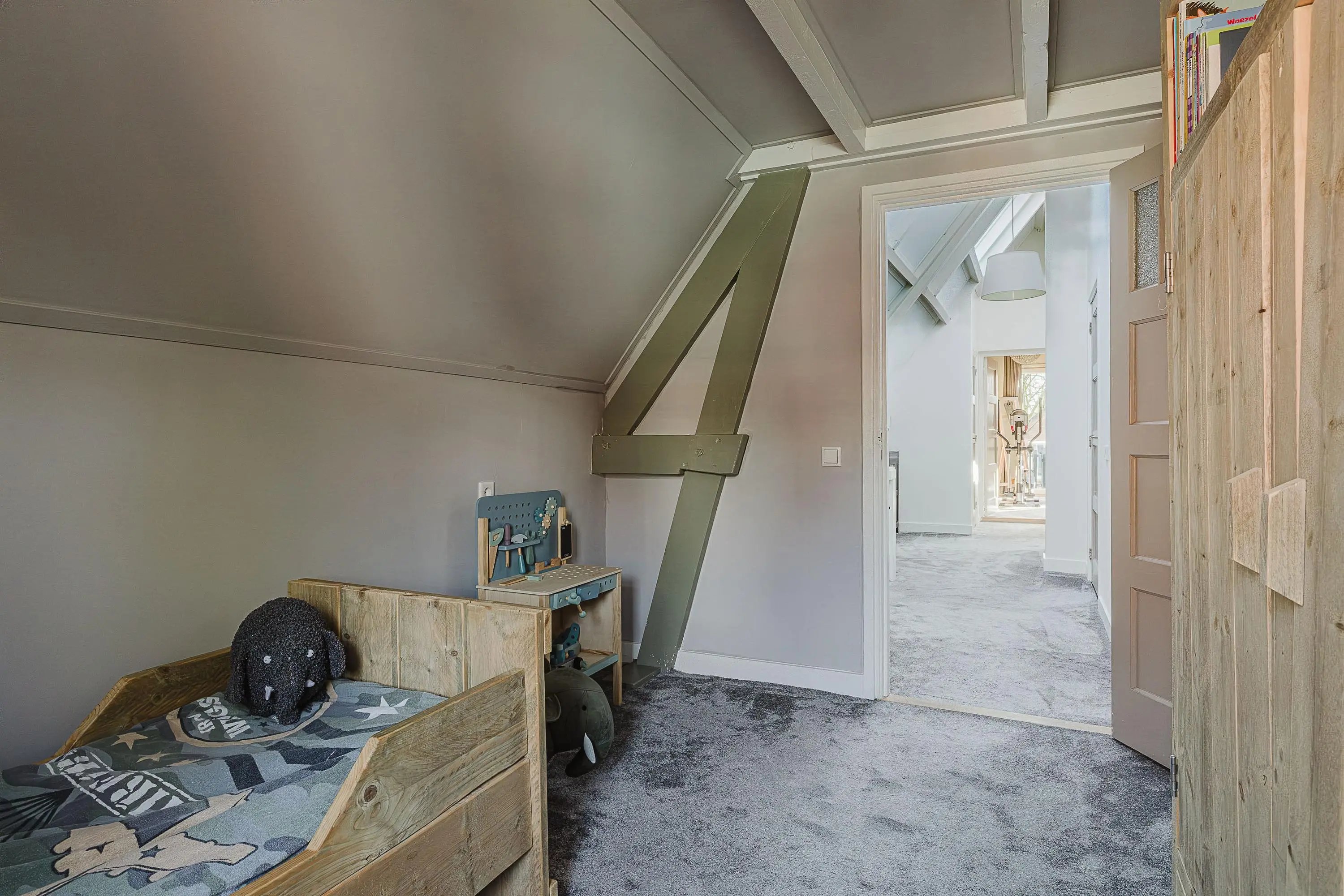 Via de trap naar de slaapzolder kom je middels een deur op de ruime bergzolder.