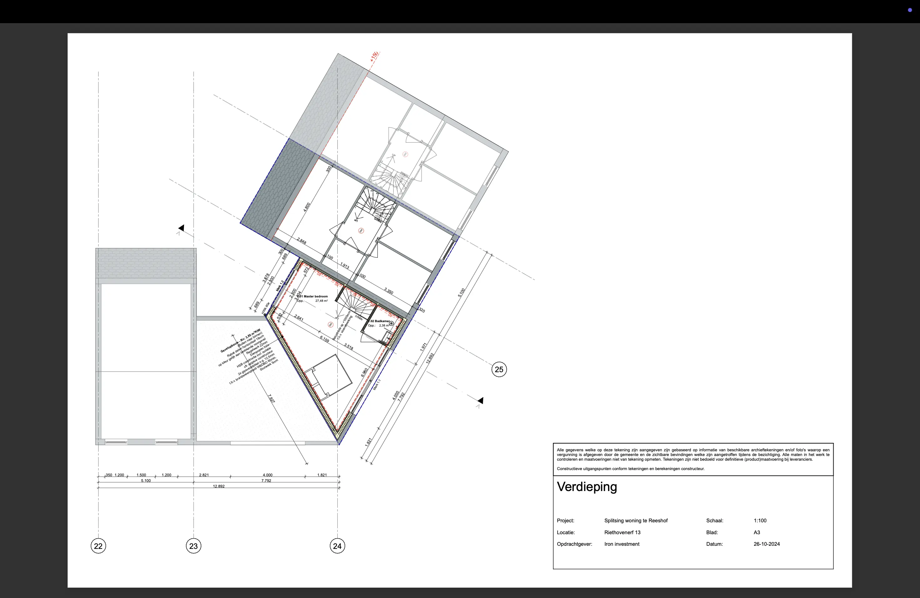 Volgens de vergunde tekeningen kan er op de woning een verdieping worden geplaatst, met o.a.: