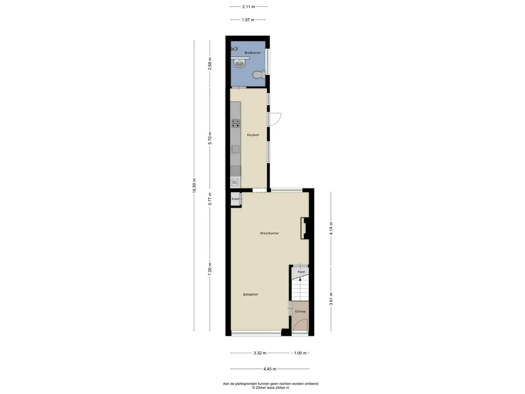 Via de voordeur kom je binnen in een nette hal met , trapopgang naar boven, toegang tot de woonkamer, keuken en de badkamer.