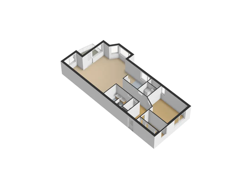 De royale woonkamer biedt veel lichtinval door de grote raampartijen voorzien van HR+ glas en geeft direct toegang tot het balkon. Hier heeft u alle ruimte voor zowel een zit- als eetgedeelte.